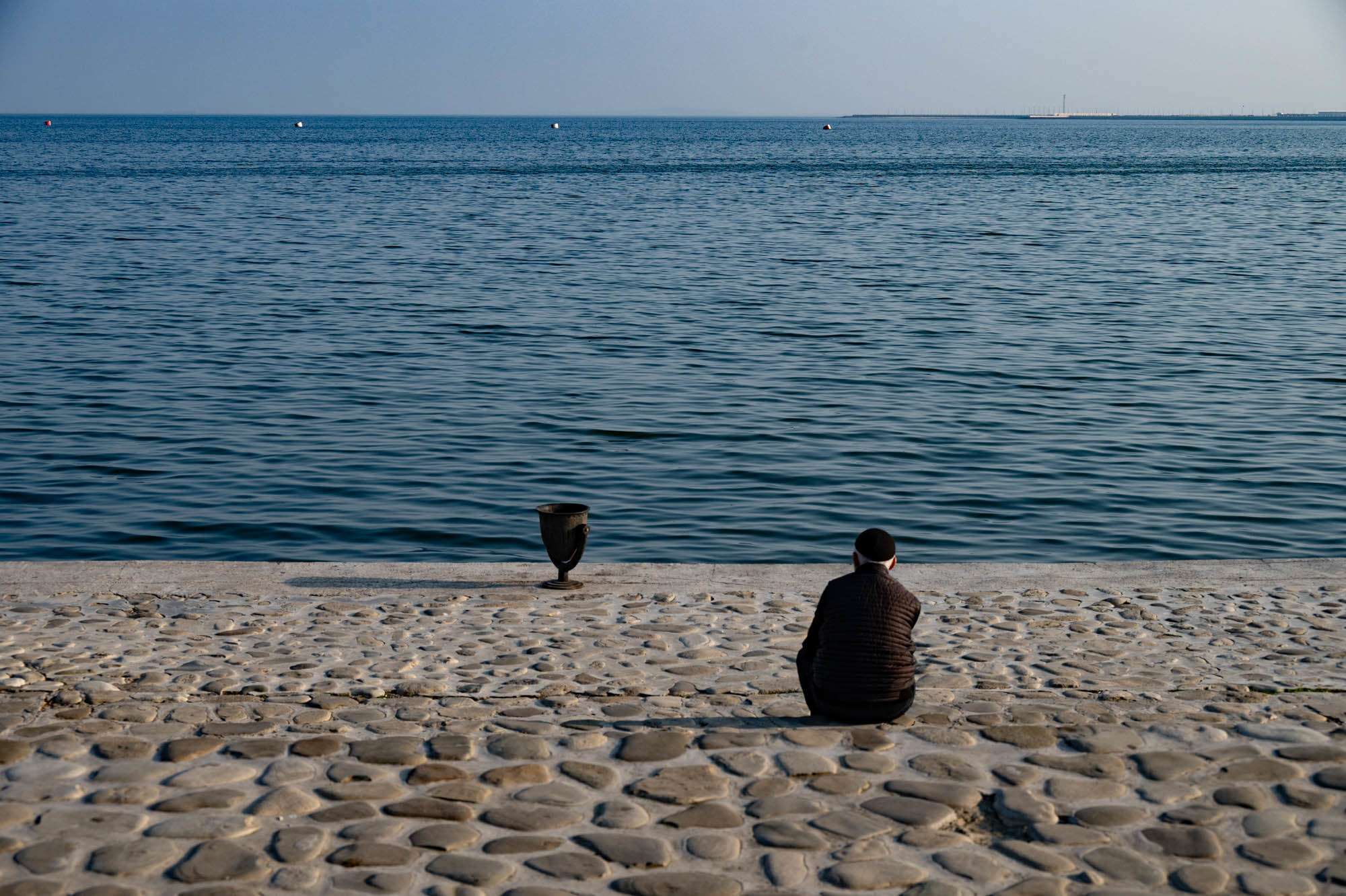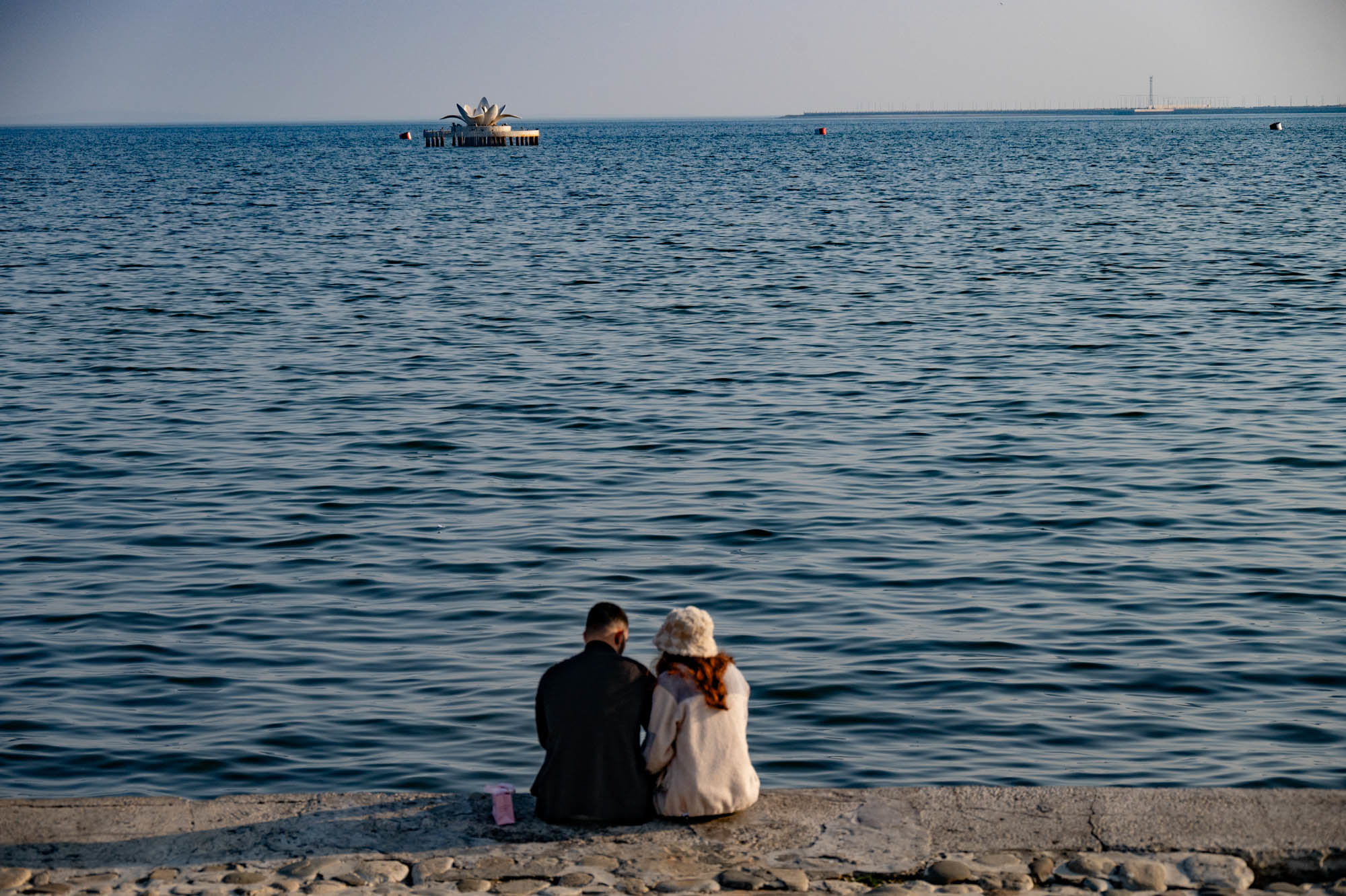 De Kaspische Zee lag voor me toen ik vanochtend mijn hotel uitstapte.