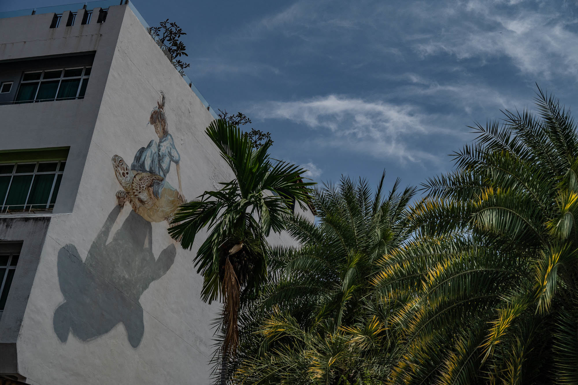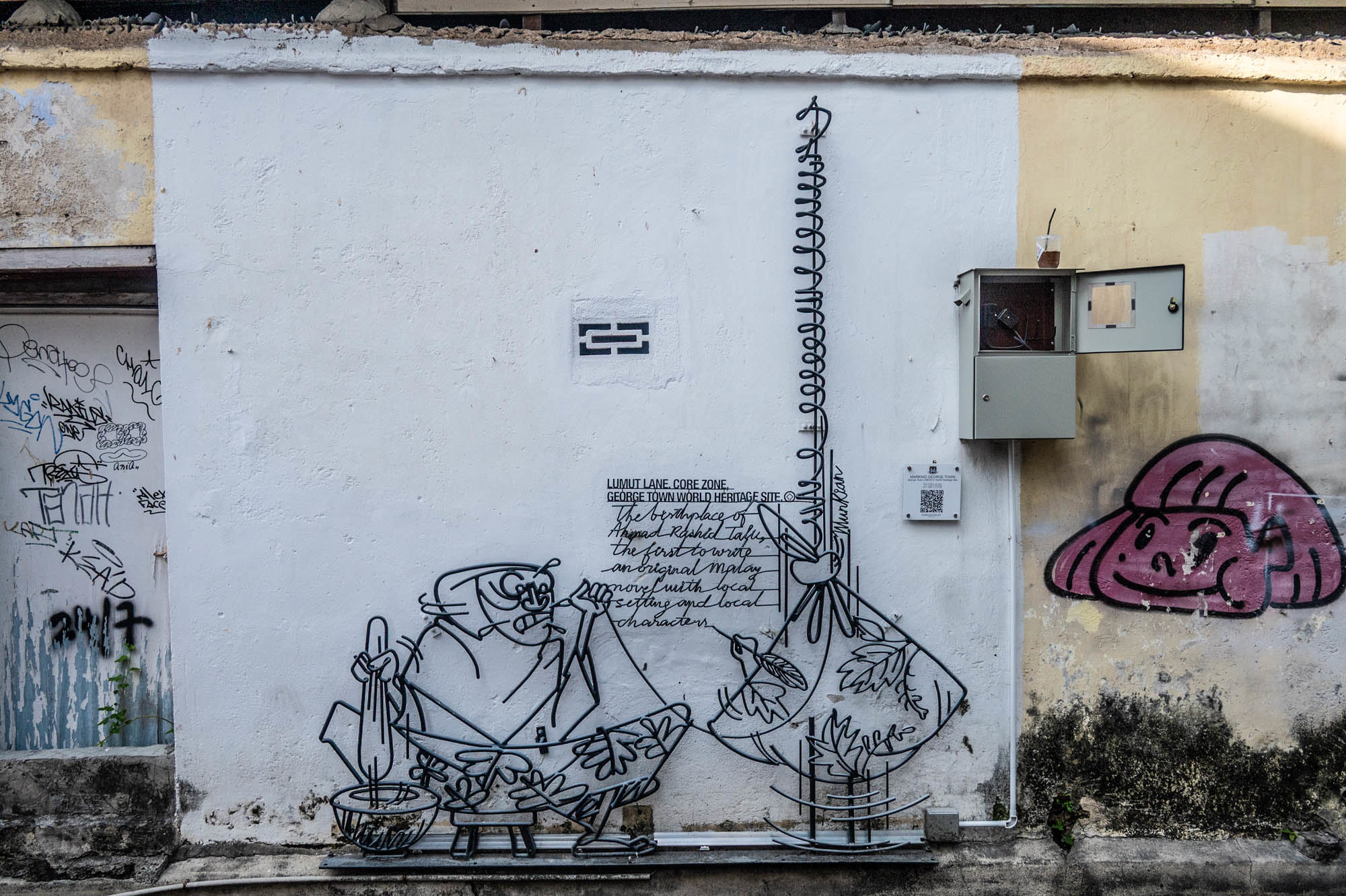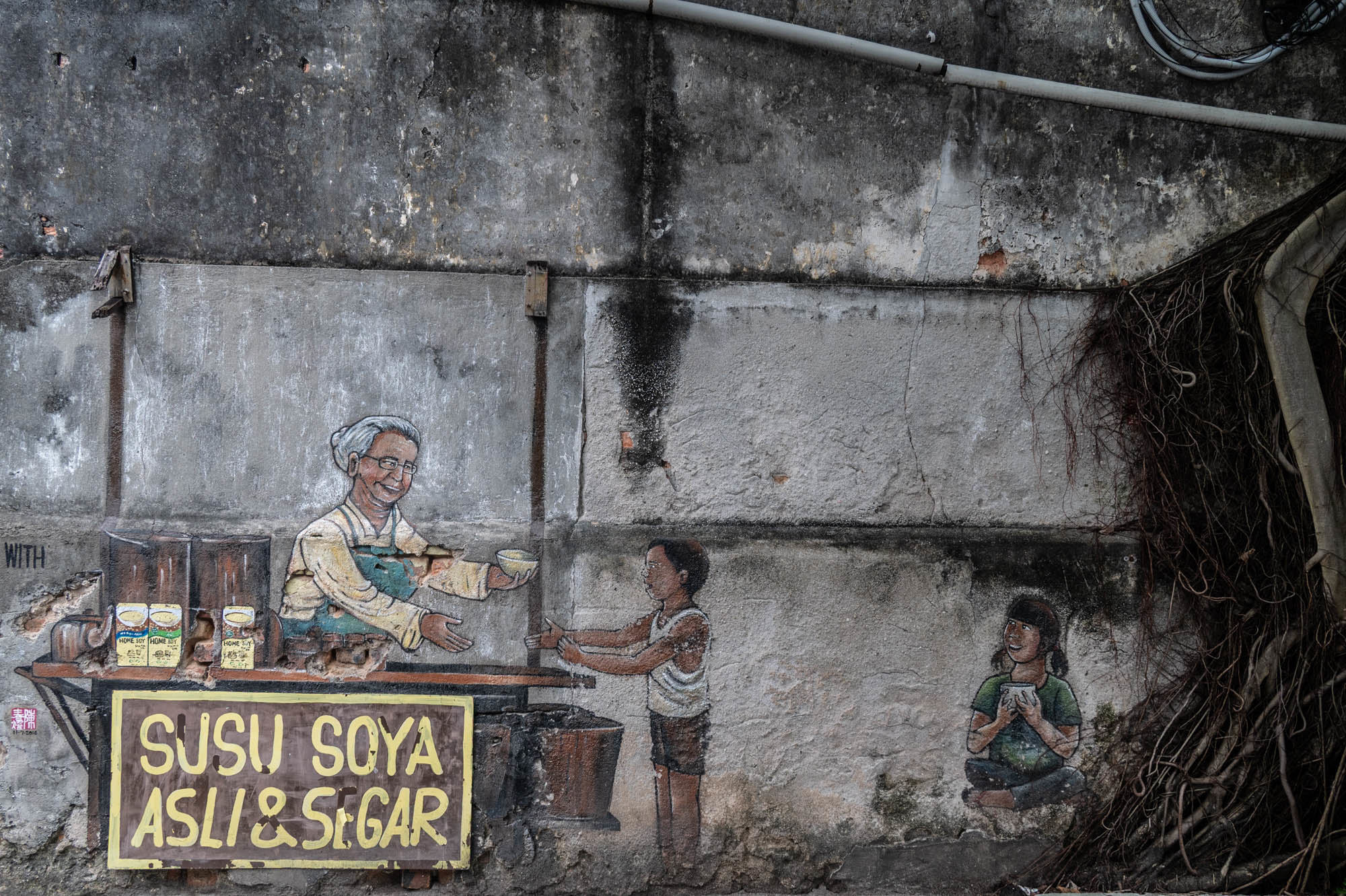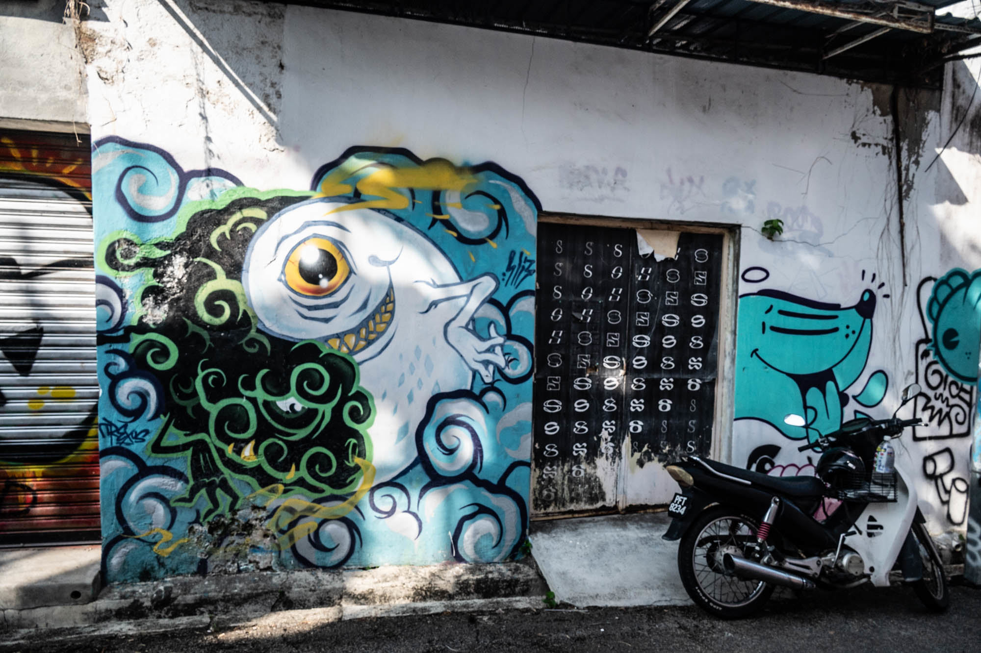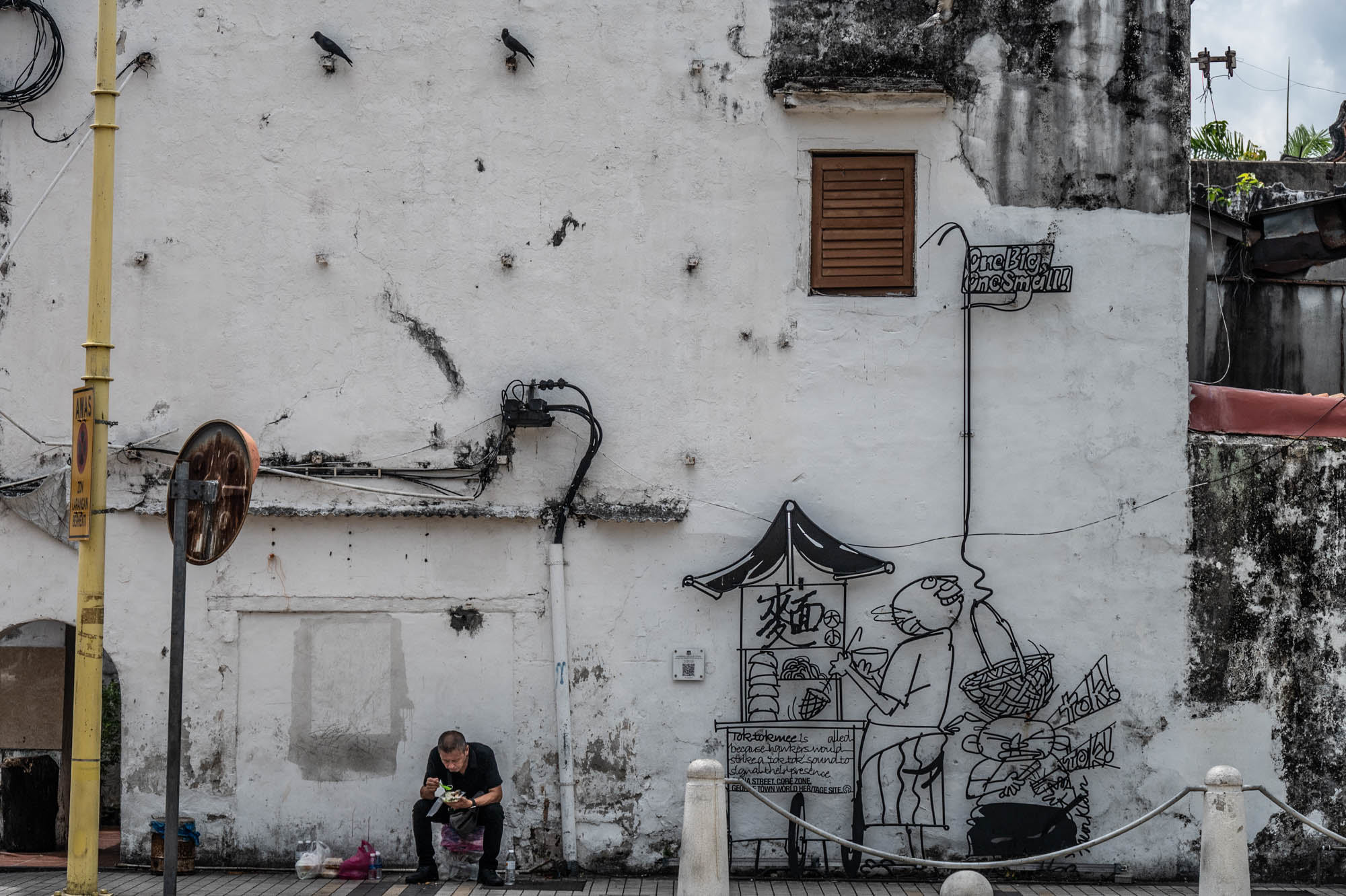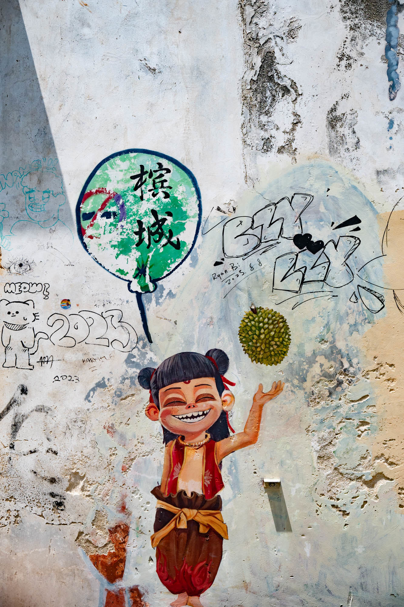 I have photographed countless murals, graffiti, and street art in my life, but nowhere was it created with as much humor and emotion as here in Penang. Not only have the artists poured their heart and soul into their work, but they have also brought out the soul of the city. An artwork awaits around every street corner; you have to walk a tremendous amount to find them, but in return, you collect a beautiful album of art. The rich mix of Malay, Chinese, Indian, and European influences that makes this city so amazing is reflected on the sometimes dilapidated walls. This art originated in the late sixties/early seventies in New York and Philadelphia, where young people began spraying names and images on walls and train cars as a form of protest or as a signature. Coincidentally, that is also the time I was at art school myself, where we mainly produced very tame work back then. Well, what do you expect? Working with sidewalk chalk had just been banned for the youth. Street art was not yet allowed and initially met with little appreciation. It wasn't until the eighties that the large murals appeared. Fortunately, there is no ban here in Penang, although there were probably a few raised eyebrows at the beginning as well, wondering whether all of that should simply be allowed. They have gained many tourists in return. I was certainly not the only one filling up my camera.
