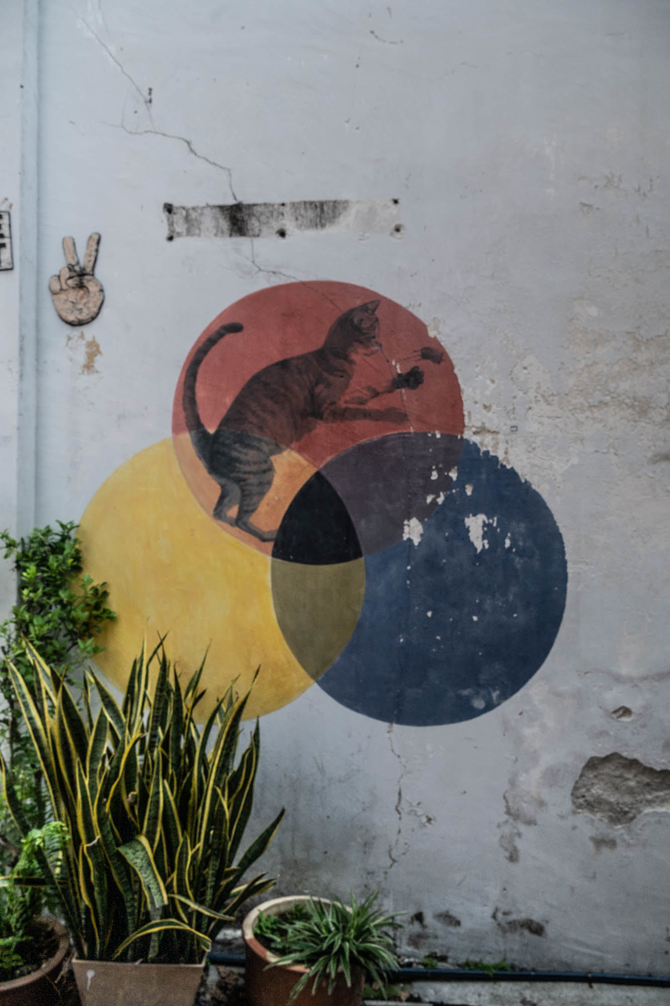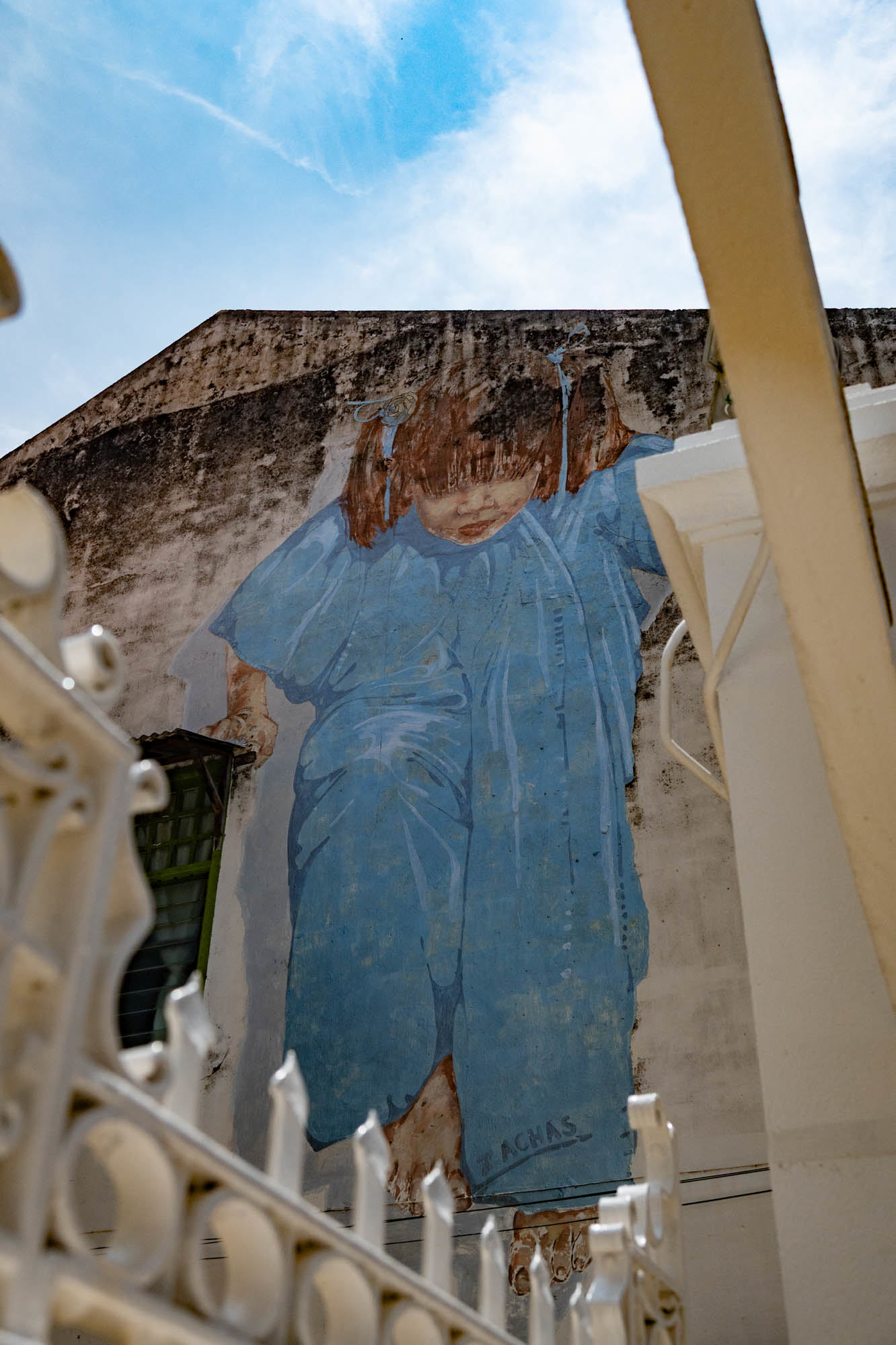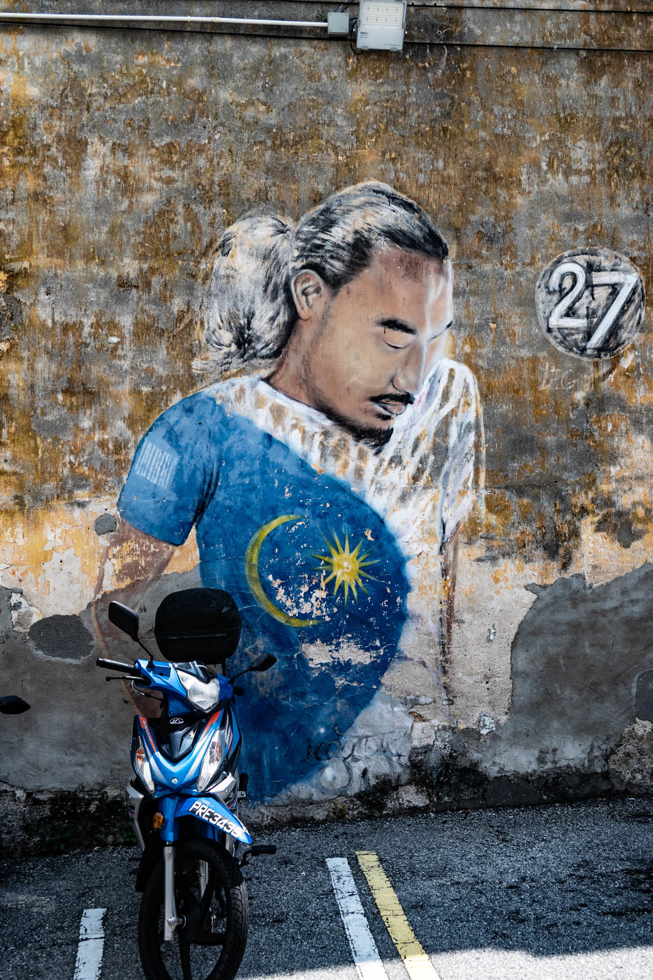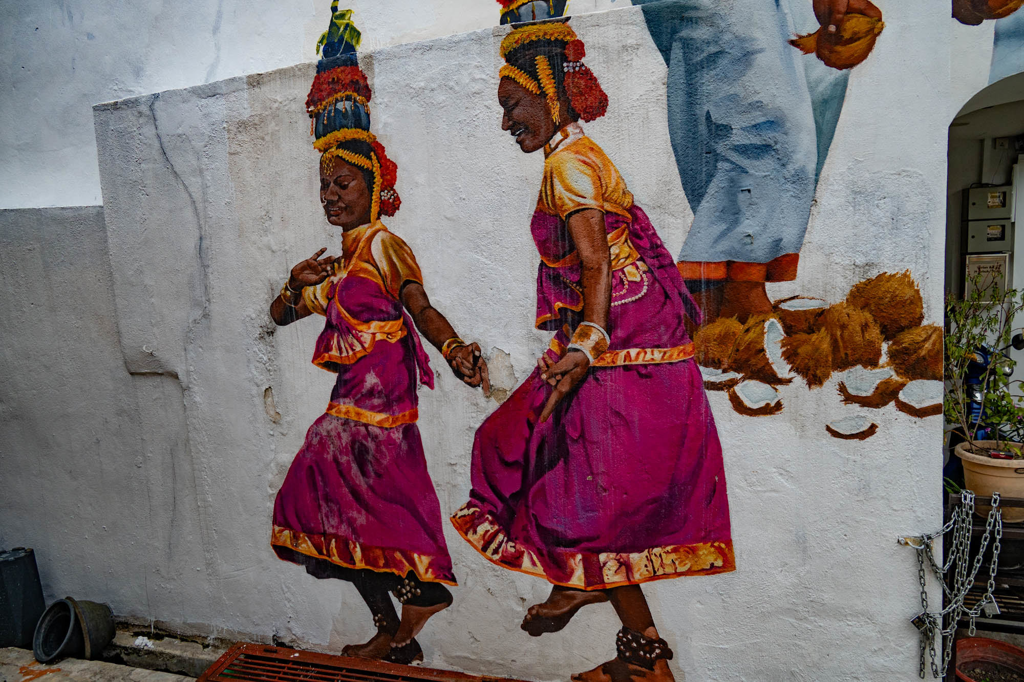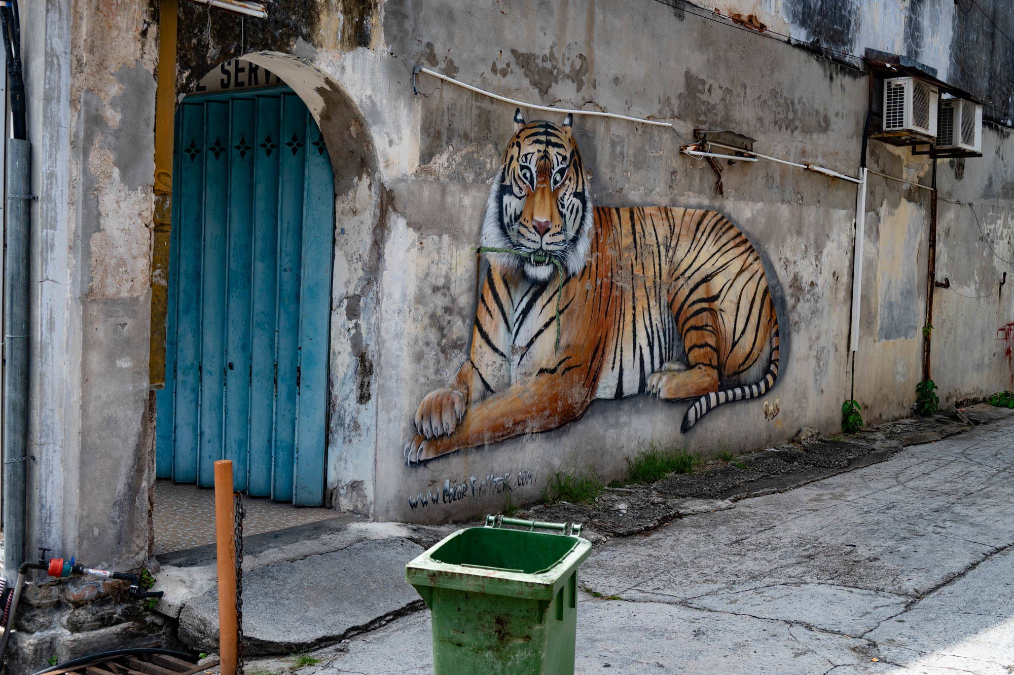 I have photographed countless murals, graffiti, and street art in my life, but nowhere was it created with as much humor and emotion as here in Penang. Not only have the artists poured their heart and soul into their work, but they have also brought out the soul of the city. An artwork awaits around every street corner; you have to walk a tremendous amount to find them, but in return, you collect a beautiful album of art. The rich mix of Malay, Chinese, Indian, and European influences that makes this city so amazing is reflected on the sometimes dilapidated walls. This art originated in the late sixties/early seventies in New York and Philadelphia, where young people began spraying names and images on walls and train cars as a form of protest or as a signature. Coincidentally, that is also the time I was at art school myself, where we mainly produced very tame work back then. Well, what do you expect? Working with sidewalk chalk had just been banned for the youth. Street art was not yet allowed and initially met with little appreciation. It wasn't until the eighties that the large murals appeared. Fortunately, there is no ban here in Penang, although there were probably a few raised eyebrows at the beginning as well, wondering whether all of that should simply be allowed. They have gained many tourists in return. I was certainly not the only one filling up my camera.