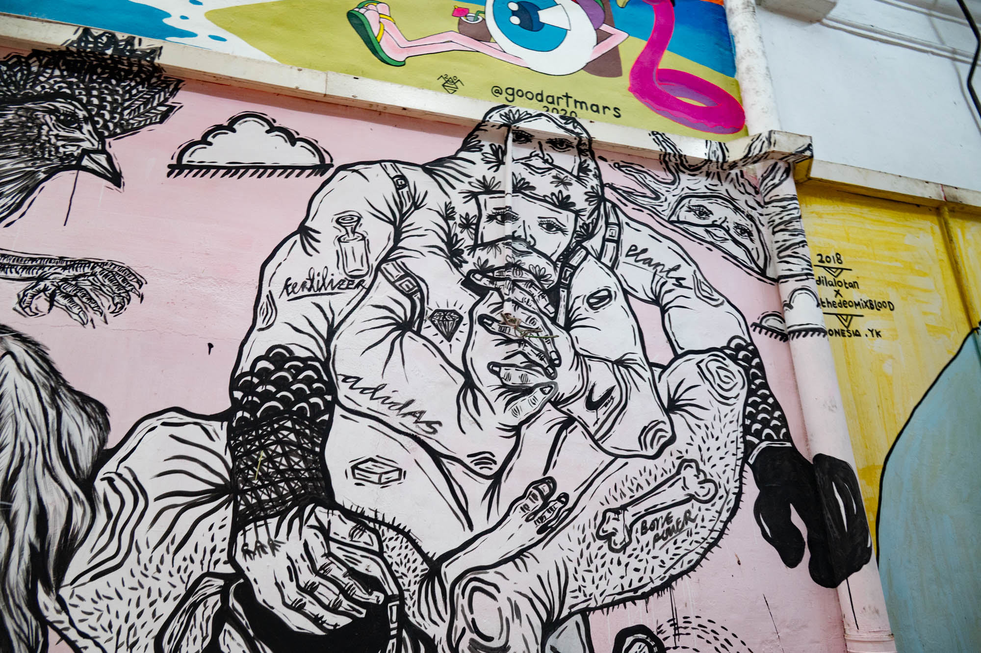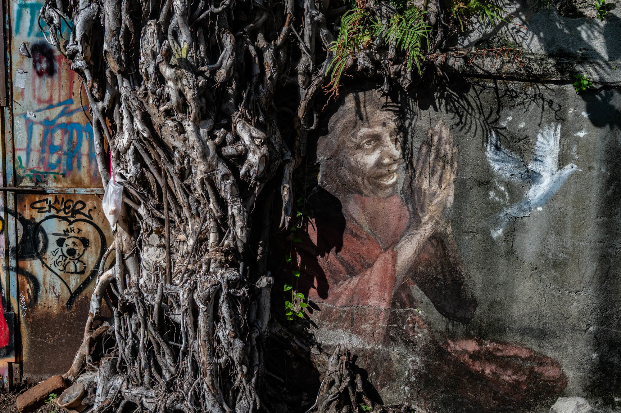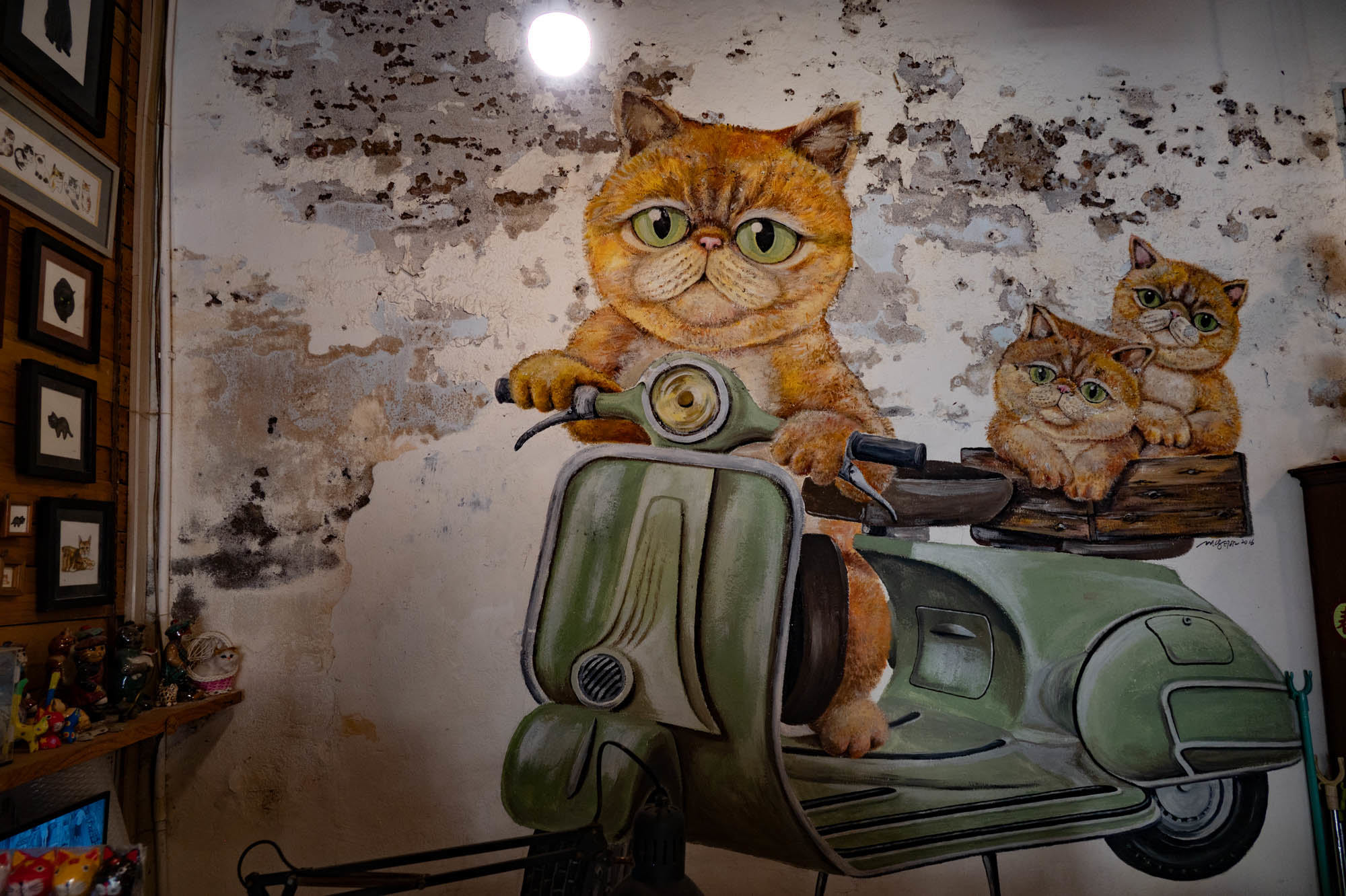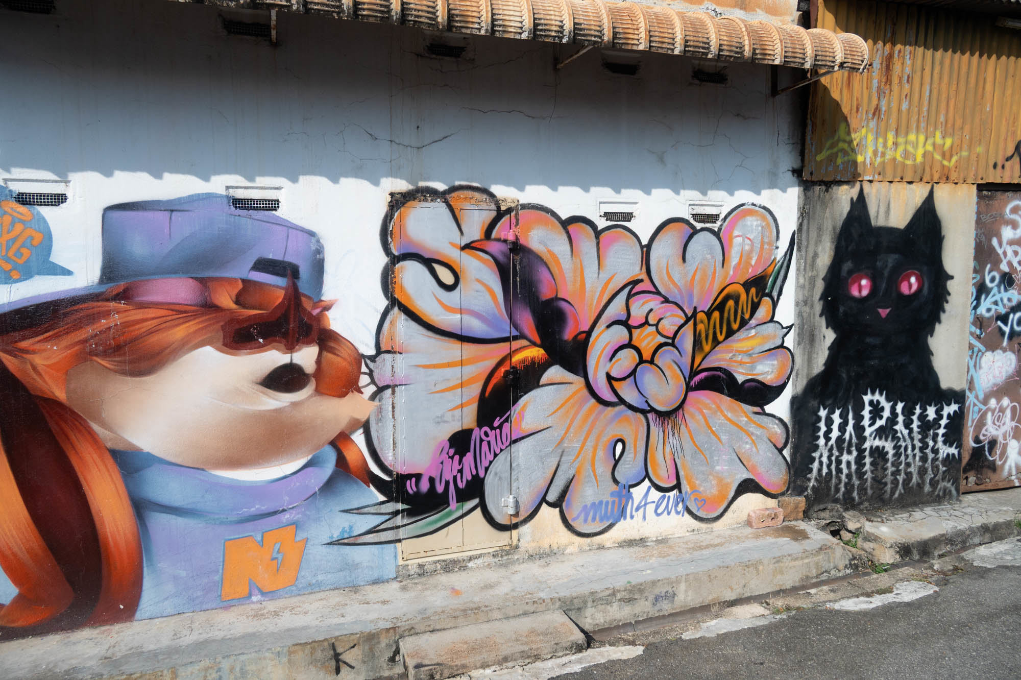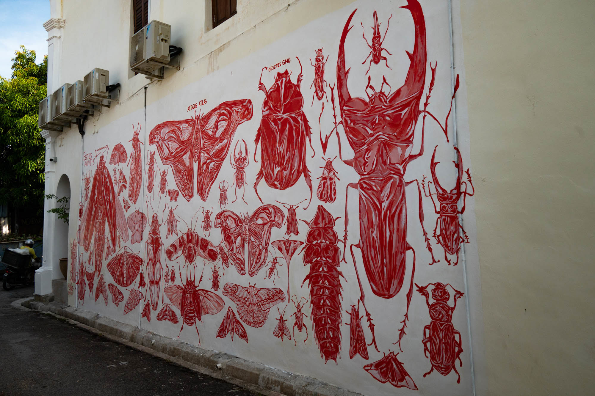 I have photographed countless murals, graffiti, and street art in my life, but nowhere was it created with as much humor and emotion as here in Penang. Not only have the artists poured their heart and soul into their work, but they have also brought out the soul of the city. An artwork awaits around every street corner; you have to walk a tremendous amount to find them, but in return, you collect a beautiful album of art. The rich mix of Malay, Chinese, Indian, and European influences that makes this city so amazing is reflected on the sometimes dilapidated walls. This art originated in the late sixties/early seventies in New York and Philadelphia, where young people began spraying names and images on walls and train cars as a form of protest or as a signature. Coincidentally, that is also the time I was at art school myself, where we mainly produced very tame work back then. Well, what do you expect? Working with sidewalk chalk had just been banned for the youth. Street art was not yet allowed and initially met with little appreciation. It wasn't until the eighties that the large murals appeared. Fortunately, there is no ban here in Penang, although there were probably a few raised eyebrows at the beginning as well, wondering whether all of that should simply be allowed. They have gained many tourists in return. I was certainly not the only one filling up my camera.