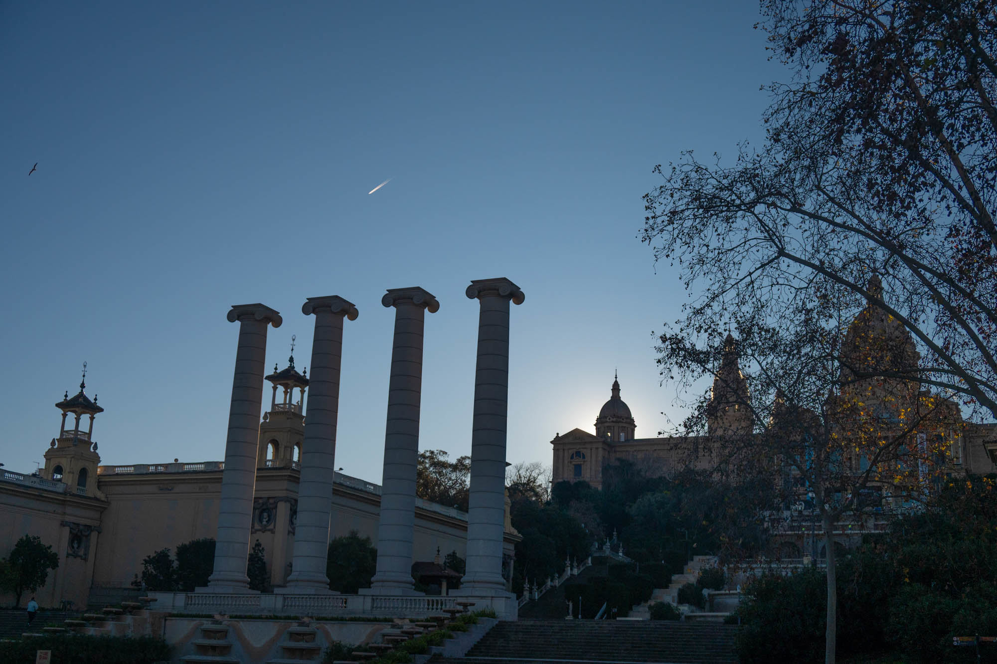 Terwijl er op de camera nog beelden stonden van ons bezoek aan Cordoba hadden we onze eerste en enige regenbui al gehad en zaten we aan de Papa’s Bravas in Carmona. Daar kwam het eerste en niet geheel onverwachte appje binnen van Easy Jet. Flight naar Amsterdam gecanceld. Shit, maar dan komt er wel een oplossing dachten we met nog een flinke portie optimisme voorradig. Die Papas waren nog te heet dus bleven achter, want wij reden linea recta naar Sevilla Airport. Easy Jet nam het ervan, volledig lege balie. Er kwamen meer berichten van wat te doen die allemaal niets voorstelden. Andere Nederlanders jammerden “we worden volledig aan ons lot overgelaten” wat een oplossing ook niet dichterbij bracht. De vele rituelen van paniek trokken voorbij. Om de volgende uren kort samen te vatten : we probeerden op andere vluchten te komen, niets mogelijk tot het weekend of later, via andere landen of steden idem dito, treinen reden niet of zaten vol. Uiteindelijk bleek er één vlucht mogelijk maar die was 2650 euro voor een enkeltje. Een paar uur later boekten we een British Airways vlucht van Barcelona naar Amsterdam via Londen op woensdag. Het was maandag. We huurden een auto om naar Barcelona te rijden. Buiten Sevilla namen we een hotel en vertrokken de volgende ochtend om 5 uur naar de andere kant van Spanje voor de rit van dik 10 uur. Met een spannend vooruitzicht of de geboekte vlucht ook werkelijk zou vertrekken. De opkomst van de zon onderweg was vol schoonheid en straalde optimisme uit. Nu is het woensdagmiddag en diep onder mij liggen de besneeuwde toppen van de Pyreneeën en lijkt een van de weinige vluchten van London Heathrow naar Amsterdam vanavond die niet gecanceld zijn ons vluchtnummer te hebben. Toch nog een mooie wandeling vanochtend in Barcelona meegepakt. Het was wel -2 graden. Sommige vakanties weten niet van ophouden.