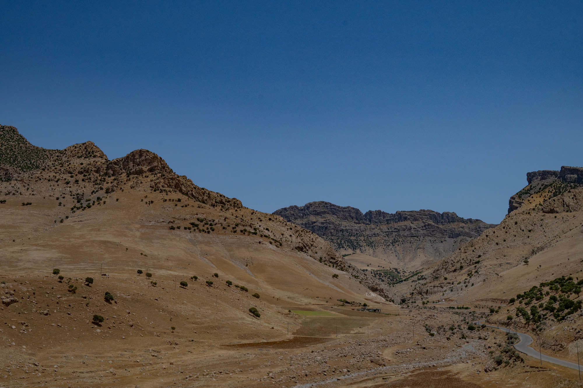 Vroeg op pad in Sulaymaniyah. Het Amna Suraka museum stond bovenaan mijn lijstje, het voormalige hoofdkwartier van de geheime dienst van Saddam Hoessein. Maar ook vandaag was het dicht. Geen gruwelen te zien dus, alleen een hek en een meisje dat zei “alleen Nescafe”. Dan maar naar de bazaar, kwam voorbij een park. En daar, tussen de bomen en banken: blijken zich de dichters op te houden. In beton gegoten, letterlijk. Standbeelden met strakke blikken en onleesbare namen. Harde koppen, deze poëten. Ze lijken eerder te waarschuwen dan te inspireren. Maar vooruit, ze stonden er. De bazaar zelf: druk. Maar ook een beetje saai, meeste gesloten vanwege dat offerfeest. Een wirwar van kleuren. De geur van kruiden, amandelen, glanzende plastic spullen, veel goud, roepende verkopers. Je ruikt tegelijk parfum en diesel, kardemom en zoet, kortom een bazaar. Ik draaide om en liet de stad achter. Terug naar de bergen. Eerste stop: Zewe. Een plek met groene hellingen, een kabbelende beek en picknicktafels onder walnotenbomen. Grote families met mooie vrouwen met heel lang haar. Daar zat hij. Een man met grijze snor, klein en een trots hoofd. Peshmerga, zei hij. Hij had hier gevochten in de jaren tachtig. "We kwamen van achter de bergkam," zei hij, en wees omhoog, "tegen de Baath-partij.” Dat ze over die bergkam gekomen waren was onvoorstelbaar. We spraken in het Engels, hij, en zijn vrouw, hadden jaren in Australië gewoond. Zijn ogen werden vochtig. De natuur was prachtig, maar zijn verhalen maakten de plek bijzonder. Verder gereden naar Dokan, aan het stuwmeer. Mooi uitzicht, zonsondergang op het water. De wegen naar het zuiden zaten potdicht vanwege het offerfeest, dus bleef ik hier. In het veel te dure Ashur Hotel, waar het uitzicht meer kostte dan de kamer waard was (ook nog aan de achterkant). Een plek waar ik eigenlijk niet wilde zijn, verwende kinderen en rond het zwembad grote airco kasten om het koel te houden. Maar de blik op het meer was wel een foto waard.