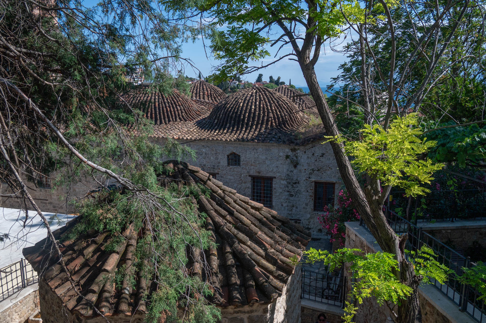 Soms moet je gewoon even kilometers maken. Van het marmer naar de zee, van Efeze naar Antalya. Geen Griekse of Romeinse steden, een snelweg, geen stops, alleen asfalt, tolpoortjes en een dashboard met kilometers die langzaam oplopen. Antalya dus. Groot, warm en toeristisch. Een stad met lagen: Romeins, Byzantijns, Ottomaans, zo te horen ook Russisch met veel zonnebrandolie. Ik dook de oude stad in, Kaleiçi. Slingerende steegjes. Plaveisel dat je enkels test. Minaretten tussen de bougainville. En katten. Overal katten. Je kijkt omhoog: een klokkentoren. Je kijkt omlaag: Romeinse fundamenten. Je drinkt iets: waarschijnlijk limoensap of iets wat daarvoor moet doorgaan. Ik dwaalde. Geen route, geen plan. Alleen wandelen, kijken, even zitten, weer verder. Er is hier een poort van Hadrianus, drie bogen op rij. Marmer. Klassiek. Mooi. Grappig was de pruimenwinkel waar je ook baarden kon laten aanmeten. En het is zondag , daarom vooral Turken die flaneren. Toch gaat half Nederland hier naar toe voor een zonvakantie. In die vliegtuigen van Cor en Don. Maar voor het eerst hoor ik weinig Nederlands. De grote stranden met de resorts zijn oostelijk van de oude stad. Die sla ik maar over, morgen weer verder.