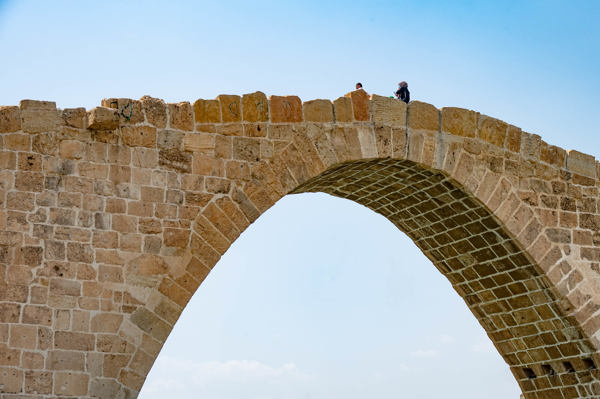 Vroeg in de ochtend verliet ik Dokan, de zon net op boven het meer, de lucht zwoel, nog helder maar al op weg naar de veertig graden. Het hotel sliep nog. De weg kronkelde langs het water, heuvel op, heuvel af, terwijl de dag langzaam ontwaakte. Rondom de bergen, statig en stil, als bewakers van het landschap. Na een paar uur omzeilde ik Arbil opnieuw, weer zonder te stoppen. De stad lag nog loom onder de hitte, het verkeer raasde, maar ik reed door. Op weg naar het noorden. Richting Zakho. De weg werd rechter, slechter en weer beter, de wind topte ook de veertig graden aan. Onderweg velden met graan, afgewisseld met zinderende dorpjes en het onvermijdelijke uitzicht op bergen aan de horizon. Een paar keer werd ik staande gehouden. Checkpoints, vriendelijk en informeel. Altijd dezelfde vragen. "Where are you from? Where are you going? Pasport please" Bij het antwoord Holland of Nederland beginnen ze te zingen. Blijkbaar was er ooit een liedje. Altijd gevolgd door een glimlach en een hand op het hart. Waarom er overigens Holland Stores en Holland Markets zijn is mij niet duidelijk geworden. Je ziet ze veel hier. En toen was daar Zakho. Een stad in het uiterste noorden van Koerdistan, bijna op de grens met Turkije. Maar ik kwam voor de brug. De beroemde Delal Bridge, een eeuwenoude stenen boog over helder water. Niemand weet precies wanneer hij gebouwd is. Ottomaans, misschien ouder. Hij ligt daar als een overblijfsel uit een stiller tijdperk. Kinderen sprongen in het water, families staan in de schaduw te kijken. En de brug in de trillende hitte, onverstoorbaar. Ik liep eroverheen. Voelde de stenen onder mijn voeten. Dacht aan de verhalen die hij had meegemaakt. Handel, oorlog, vrede, liefde. Alles was hier overheen gegaan. Zakho zelf is niet bijzonder. Maar die brug? Dat was voor mij het afscheid alweer van Koerdistan. Te kort maar dat offerfeest gooide roet in het water.