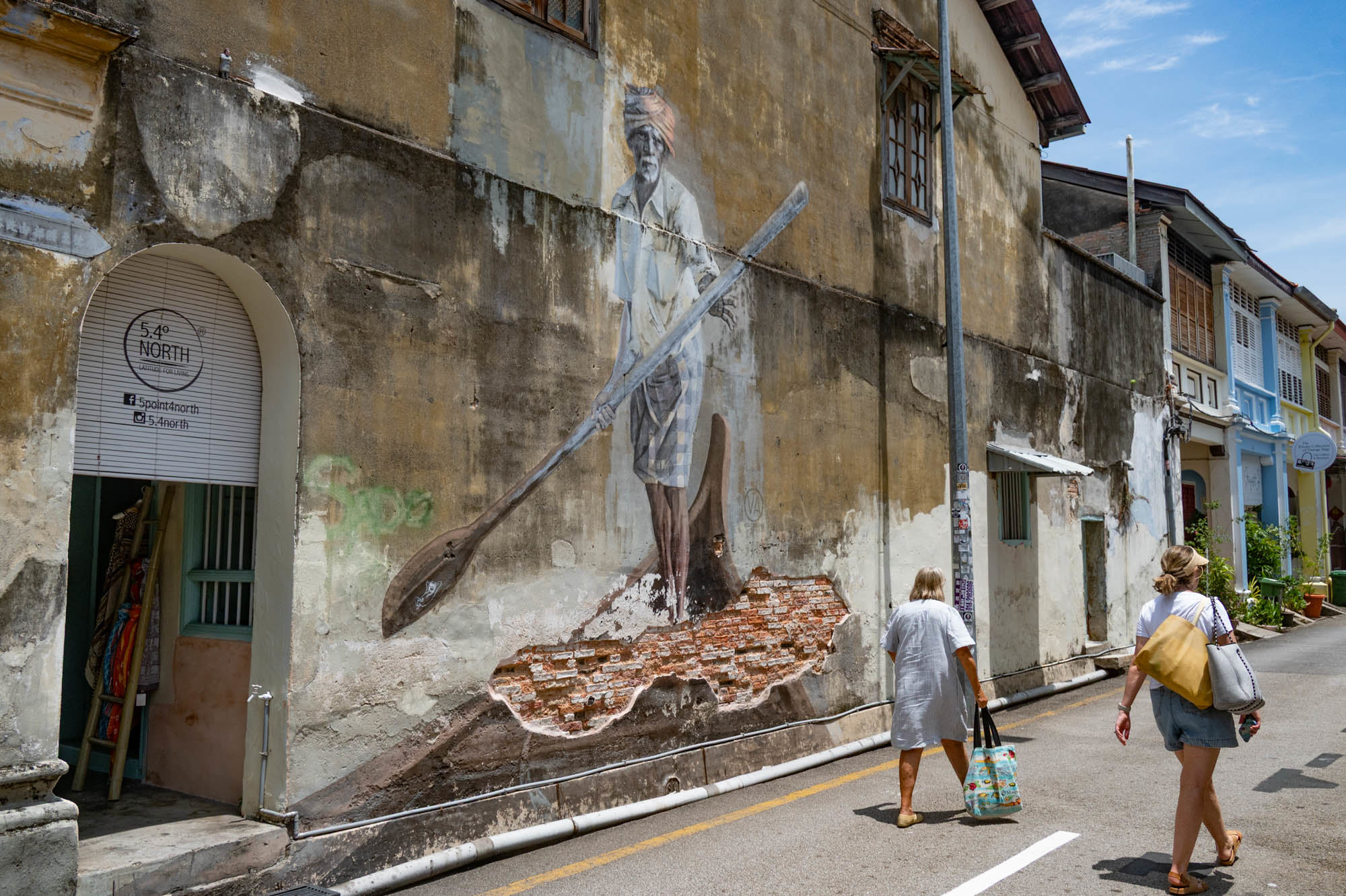 Een laatste dag Penang en het blijft een genot hier rond te lopen. Voor de derde keer hier en nog nooit Penang Hill op geweest. Een schande. Heel vroeg met het treintje naar boven om de massa voor te zijn. Ik was niet alleen zo vroeg, wel ‘by far’ de oudste. Altijd leuk, een berg. Al 200 jaar een attractie en alle godsdiensten hebben hier hun plekje gevonden. Het uitzicht was precies wat je ervan kon verwachten: een uitzicht. Daarna weer beneden moest de Kek Lok Si tempel er ook maar aan geloven. Een enorm complex van de Boeddhisten. Ook hier een uitzicht. En veel goud. Je wordt er vrij snel Boeddha-moe. De stad lokte weer en ik probeerde na vele jaren weer eens Ice-Kacang. Ook wel Ais Kacang. Een schaafijs drankje met gecondenseerde melk, jelly’s en rode bonen. In mijn herinnering was het vroeger veel lekkerder. Ging destijds zelfs zover om zo’n ouderwetse schaafijs machine hier te kopen en te laten verschepen naar Nederland. Om ermee op de markt te gaan staan. Nooit iets van gekomen. Gelukkig.