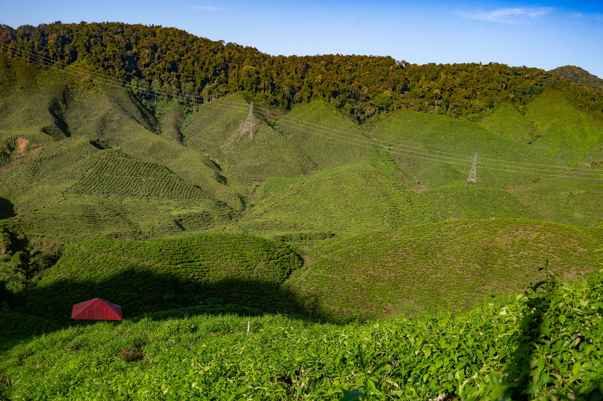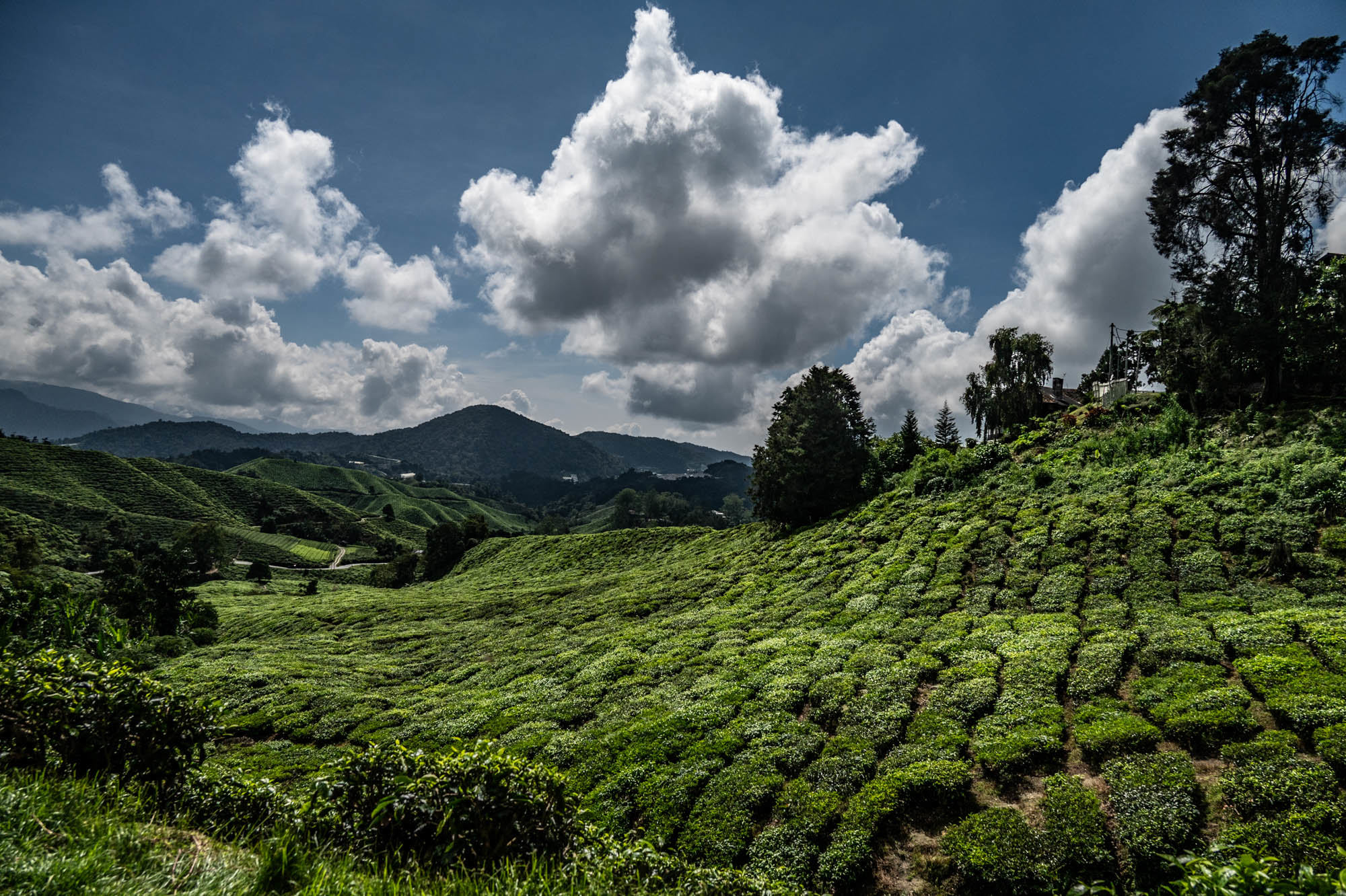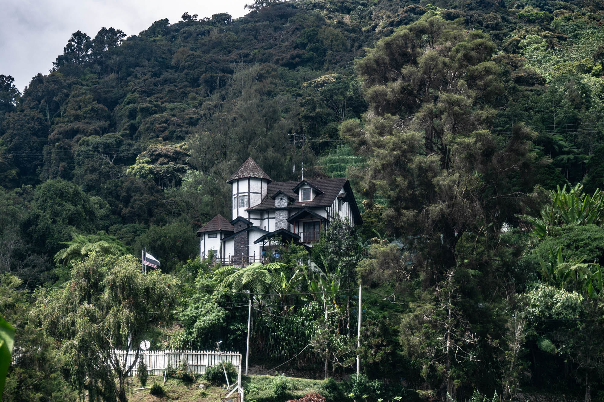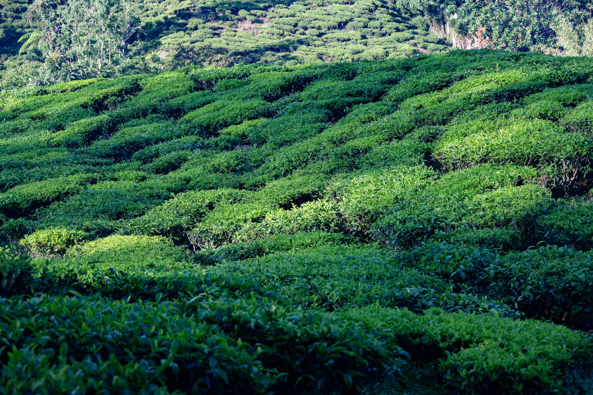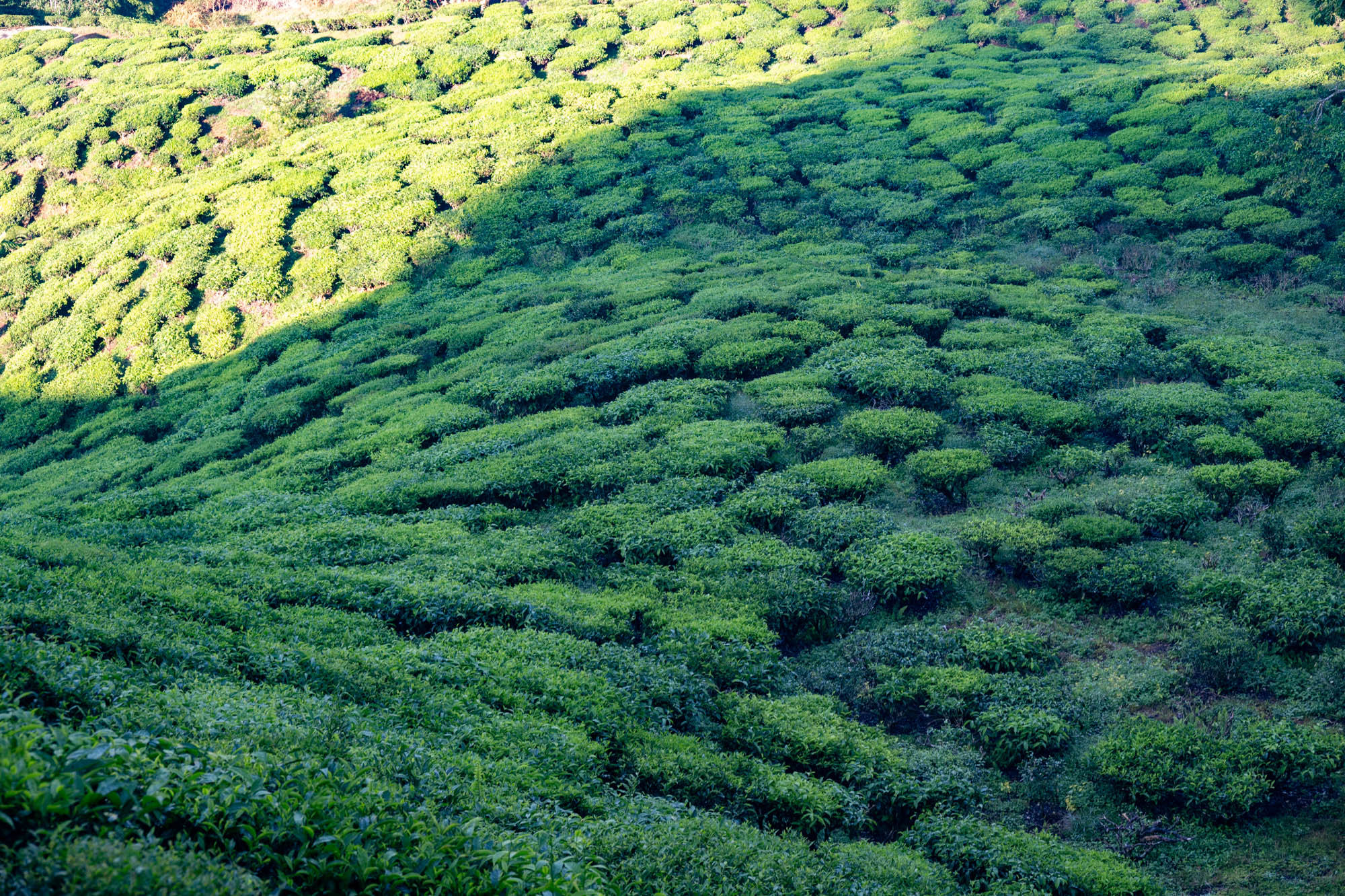 And there I was at last in the Cameron Highlands. It had been on the itinerary for a while, but now I was actually walking through the tea plantations. It was much more touristy than Google and all the others would have you believe; it was even bombastic. The crowds, the high-rises, the fast-food joints, and especially the overdose of attention focused on the strawberry. I didn't know you could build so much entertainment around the strawberry. The entire landscape is being ruined by greenhouses on virtually every mountain slope. The old English country houses and their structures designed to project power are completely hidden from view just to attract tourists. There are still some hotels from earlier times, but you have to search for them. Fortunately, you don't need greenhouses for tea, and that is where the beauty can still be found, although bouncy castles and amusement halls are starting to pop up there too. And of course, the love arches to stand under. And buses to guide the lazy person past those bushes. Walking is unhealthy, as is evident once again. Yes, it goes up and down, because that tea needs to catch as much sun as possible. Later, after hours of walking, I rewarded myself with a cup of real tea. They don't make it like that at home anymore. My granny used to make them like that. She was very meticulous about it. With milk.