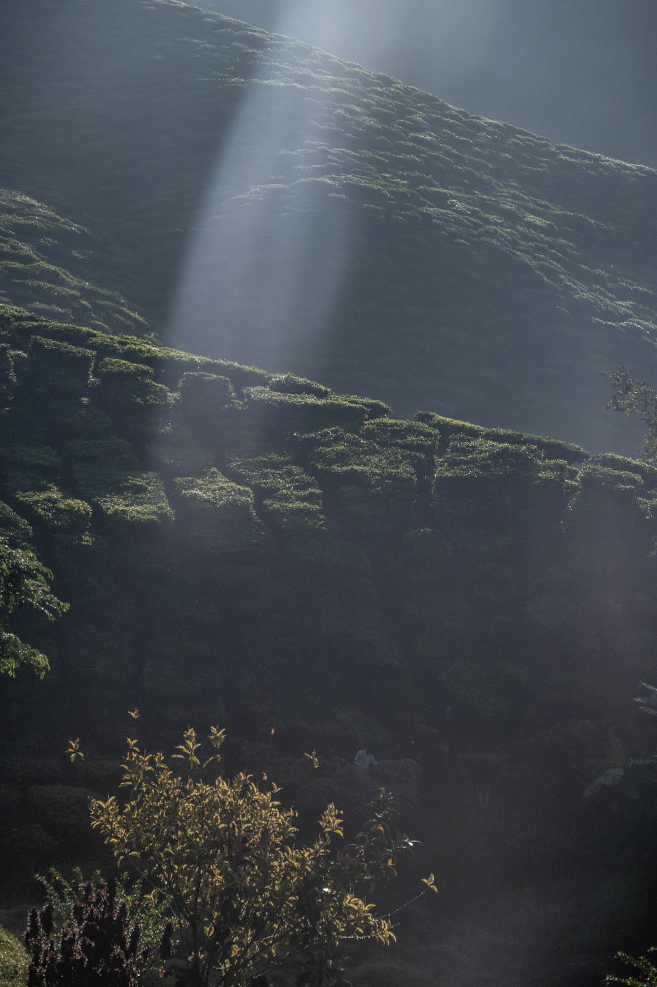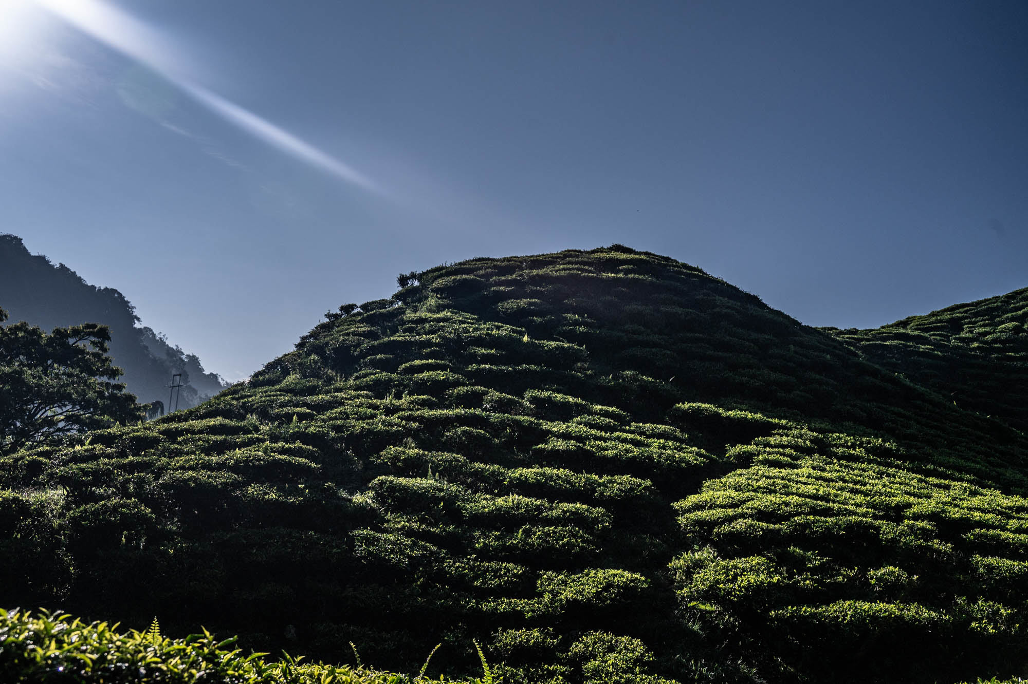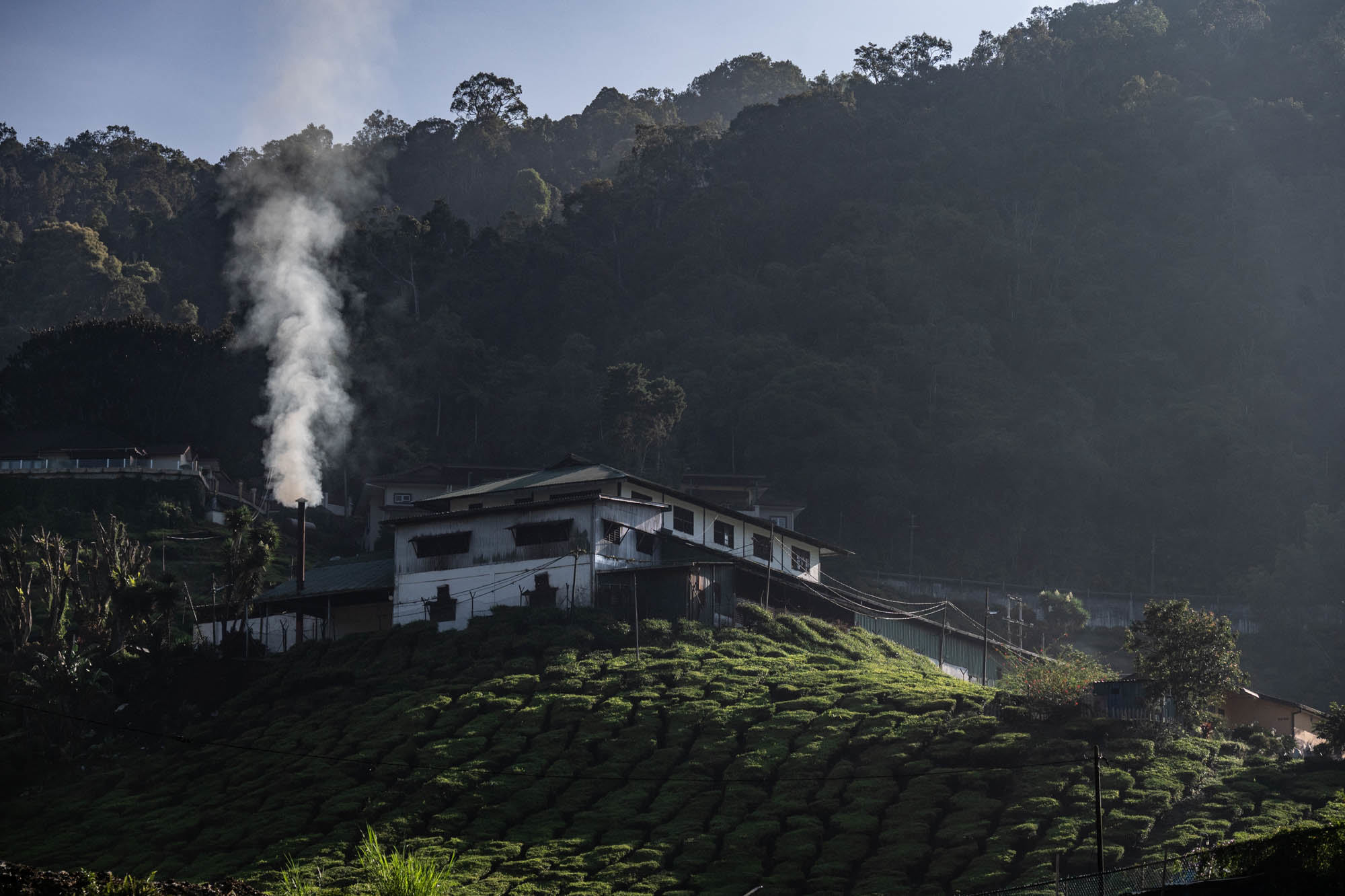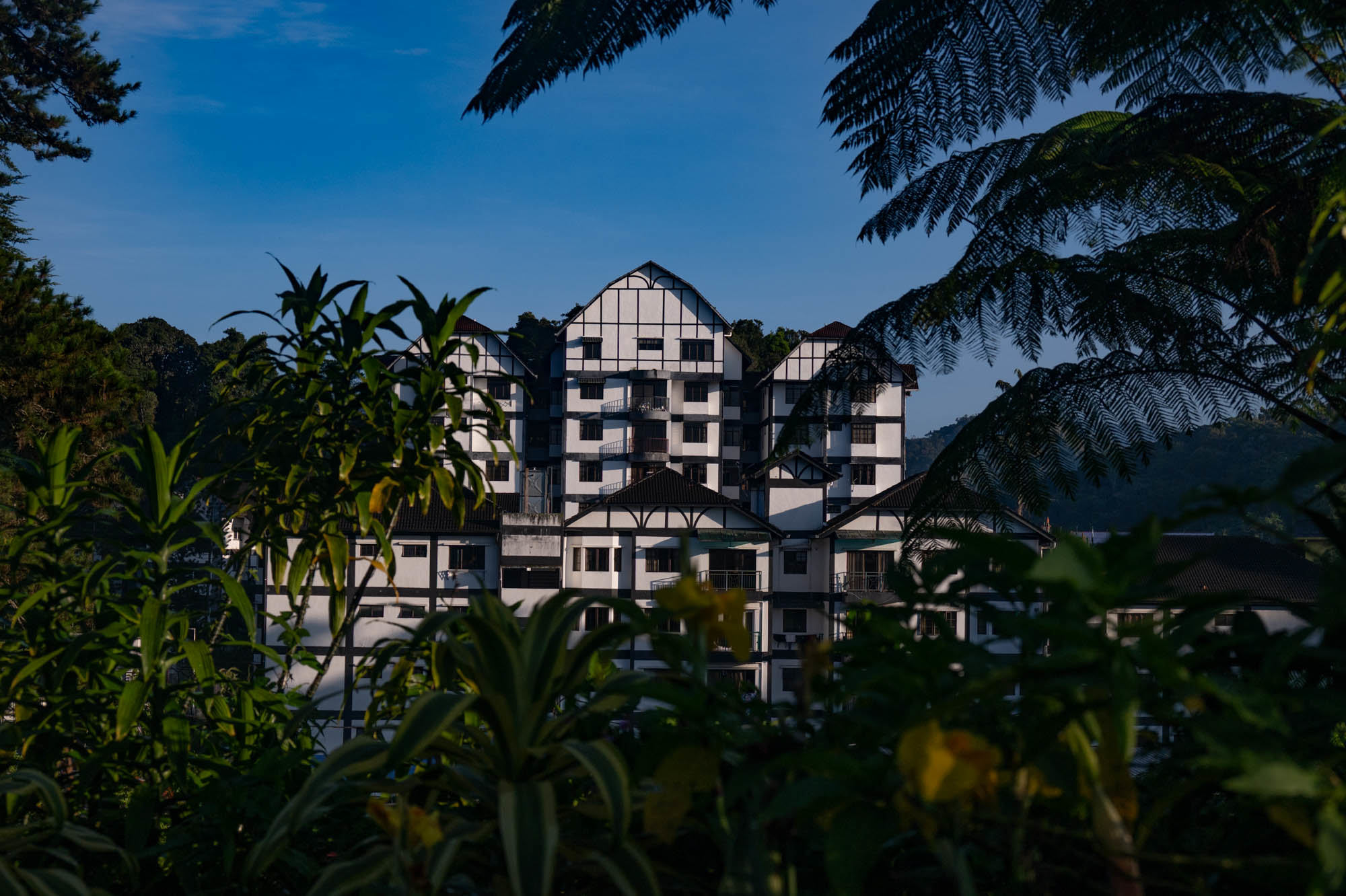 And there I was at last in the Cameron Highlands. It had been on the itinerary for a while, but now I was actually walking through the tea plantations. It was much more touristy than Google and all the others would have you believe; it was even bombastic. The crowds, the high-rises, the fast-food joints, and especially the overdose of attention focused on the strawberry. I didn't know you could build so much entertainment around the strawberry. The entire landscape is being ruined by greenhouses on virtually every mountain slope. The old English country houses and their structures designed to project power are completely hidden from view just to attract tourists. There are still some hotels from earlier times, but you have to search for them. Fortunately, you don't need greenhouses for tea, and that is where the beauty can still be found, although bouncy castles and amusement halls are starting to pop up there too. And of course, the love arches to stand under. And buses to guide the lazy person past those bushes. Walking is unhealthy, as is evident once again. Yes, it goes up and down, because that tea needs to catch as much sun as possible. Later, after hours of walking, I rewarded myself with a cup of real tea. They don't make it like that at home anymore. My granny used to make them like that. She was very meticulous about it. With milk.