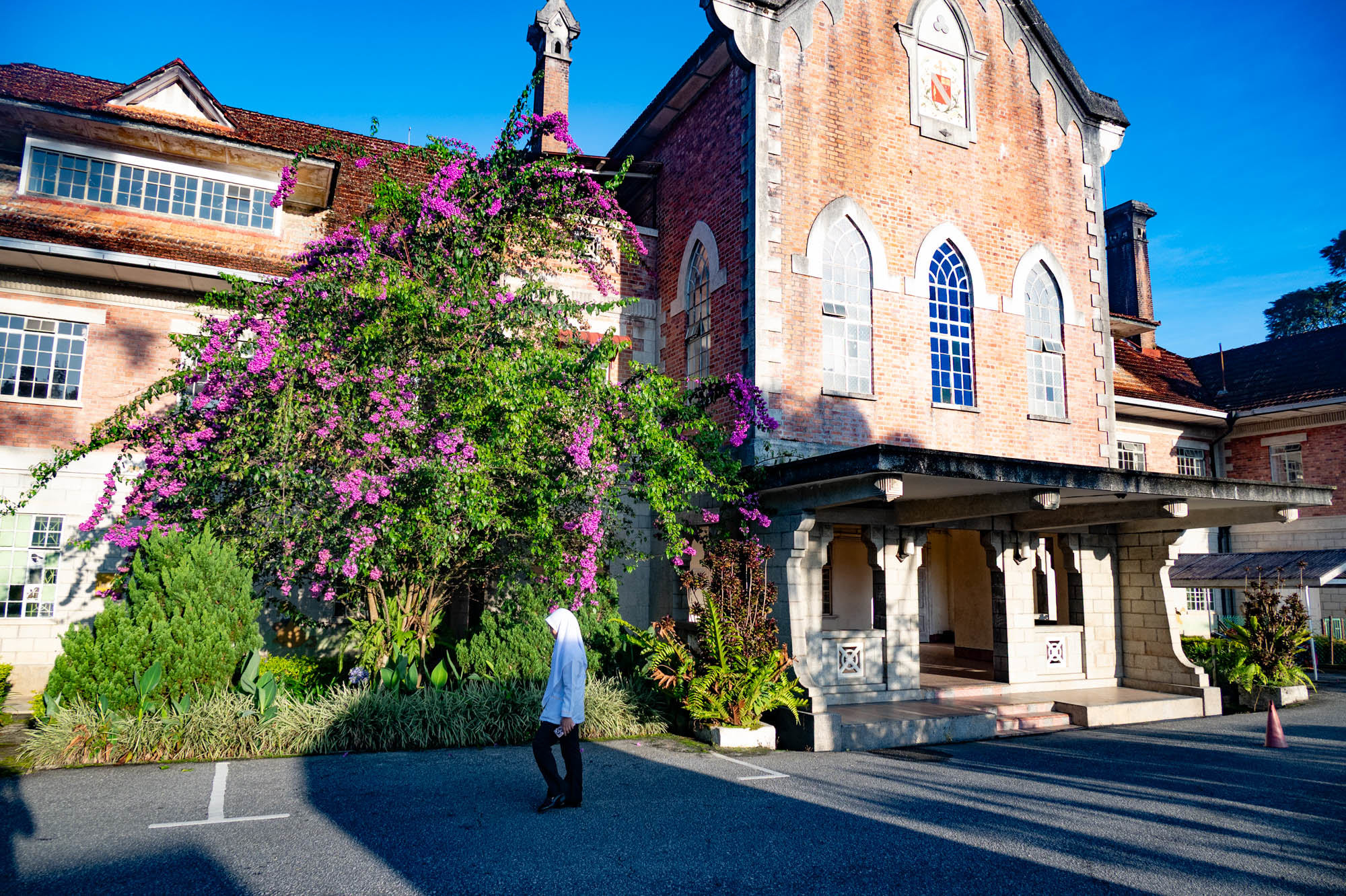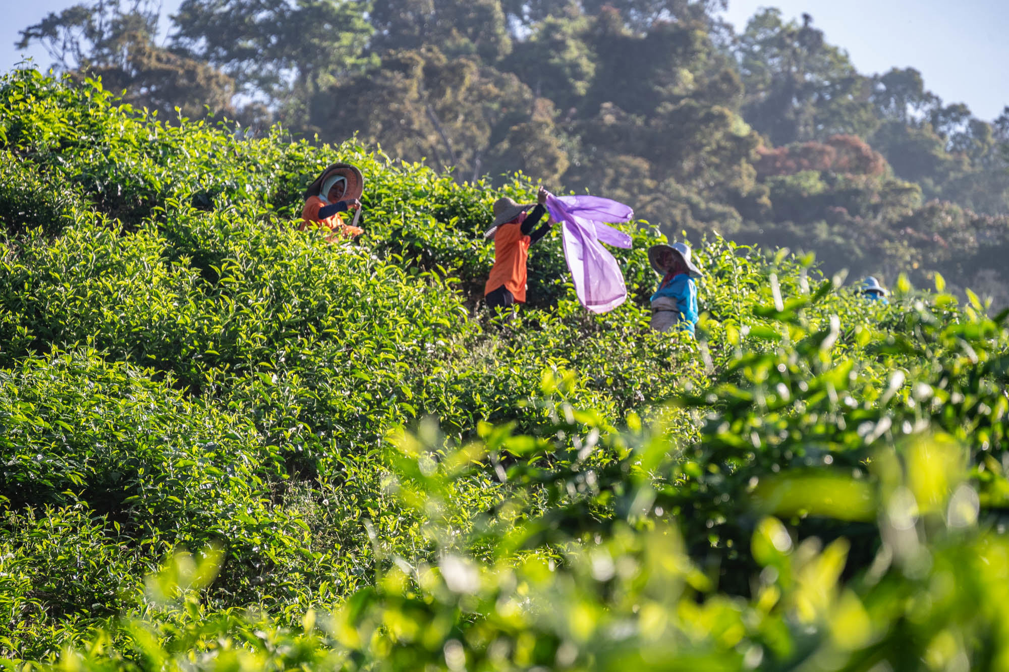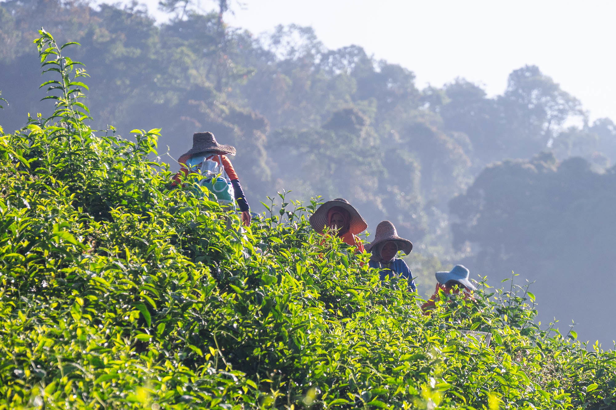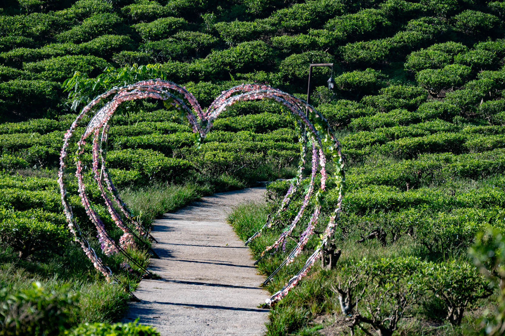 And there I was at last in the Cameron Highlands. It had been on the itinerary for a while, but now I was actually walking through the tea plantations. It was much more touristy than Google and all the others would have you believe; it was even bombastic. The crowds, the high-rises, the fast-food joints, and especially the overdose of attention focused on the strawberry. I didn't know you could build so much entertainment around the strawberry. The entire landscape is being ruined by greenhouses on virtually every mountain slope. The old English country houses and their structures designed to project power are completely hidden from view just to attract tourists. There are still some hotels from earlier times, but you have to search for them. Fortunately, you don't need greenhouses for tea, and that is where the beauty can still be found, although bouncy castles and amusement halls are starting to pop up there too. And of course, the love arches to stand under. And buses to guide the lazy person past those bushes. Walking is unhealthy, as is evident once again. Yes, it goes up and down, because that tea needs to catch as much sun as possible. Later, after hours of walking, I rewarded myself with a cup of real tea. They don't make it like that at home anymore. My granny used to make them like that. She was very meticulous about it. With milk.