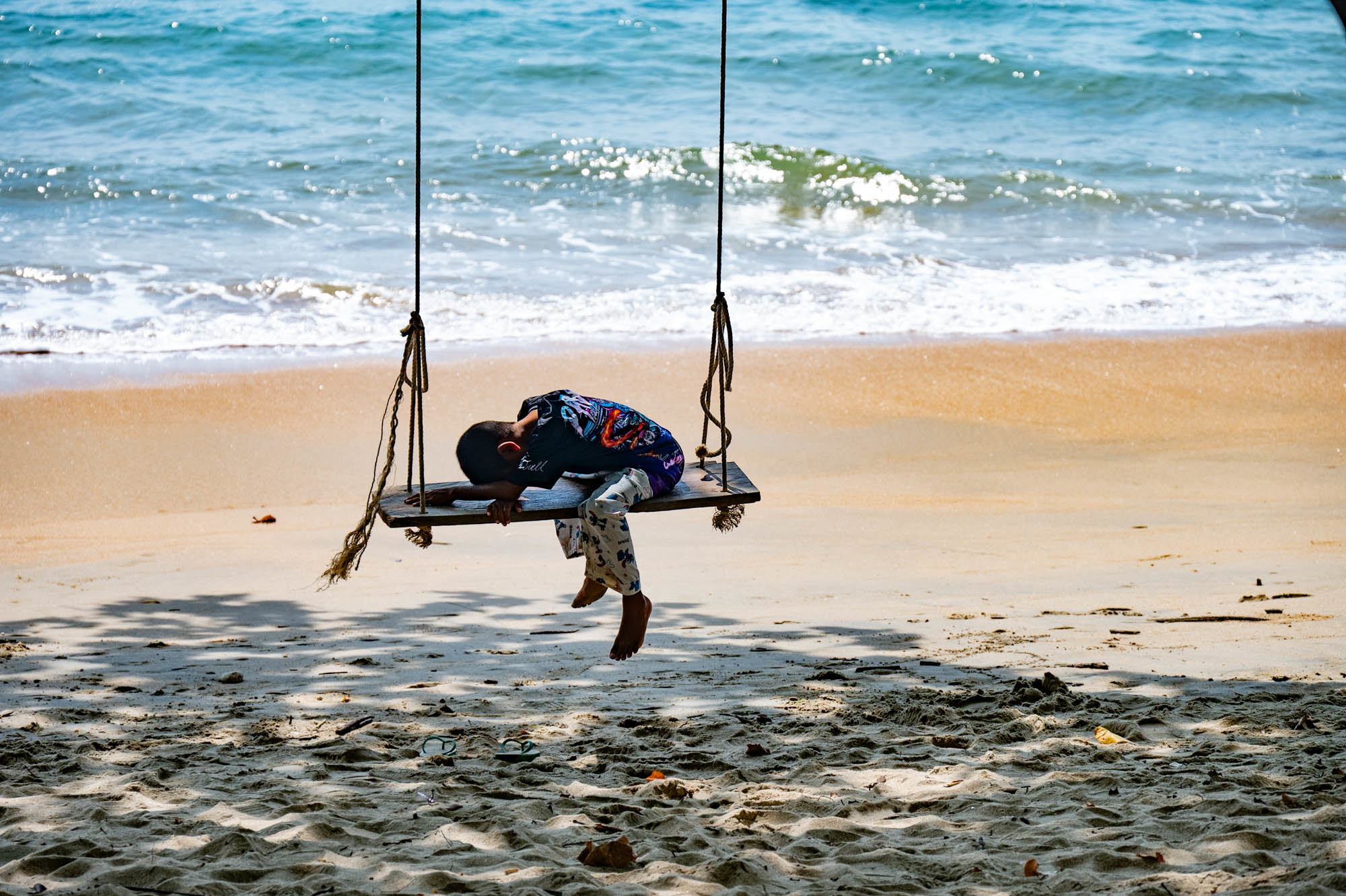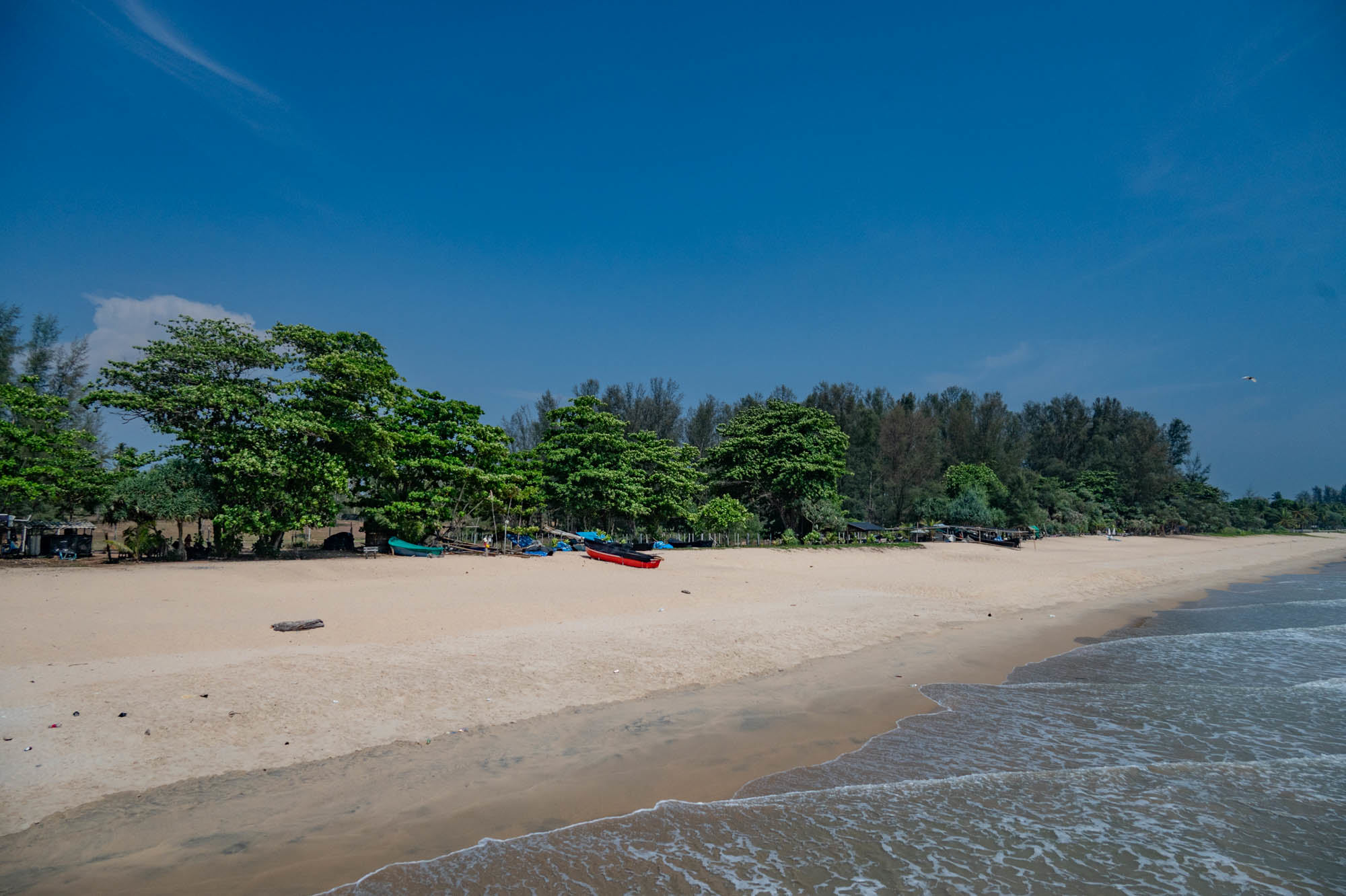 Op Ko Kho Khao, mijn per ongeluk eilandje, werd ik een paar dagen geleden wakker en verbaasde mij over de lege stranden. Ik heb er van Khura Buri to ver onder Kao Lak heel wat bekeken maar je kunt je hier nog heel goed Robinson Crusoe wanen. Als er al mensen waren, waren het locals. In een hangmat of rondom een paar eettentjes. Natuurlijk zijn er volop resorts waarvan je vooral de achterkanten van ziet maar er blijft nog genoeg paradijs over. En als je zo’n resort binnengaat word je ook niet overlopen. Al moet je op het strand soms een yoga klasje ontwijken. Voor een tijdelijk eenzame oude man als ik zijn die luxe hotel complexen ook geen optie. Ik drink liever mijn koffie bij een klein tentje op het strand. Nee, Thailand en haar stranden zijn nog niet verloren. Ik reed overigens hier wel door het gebied waar de tsunami van kerst 2004 hevig toesloeg. Veel monumenten en grote begraafplaatsen herinneren hier nog aan. En de overal aanwezige borden met de vluchtroutes die aangegeven worden. Ik kende toen al veel van die plekken goed en de ramp maakte grote indruk op mij. Toen en nu hier op deze goddelijke plekken waan je je nietig als mens en weet je de natuur met haar schoonheid en kracht ver boven je.