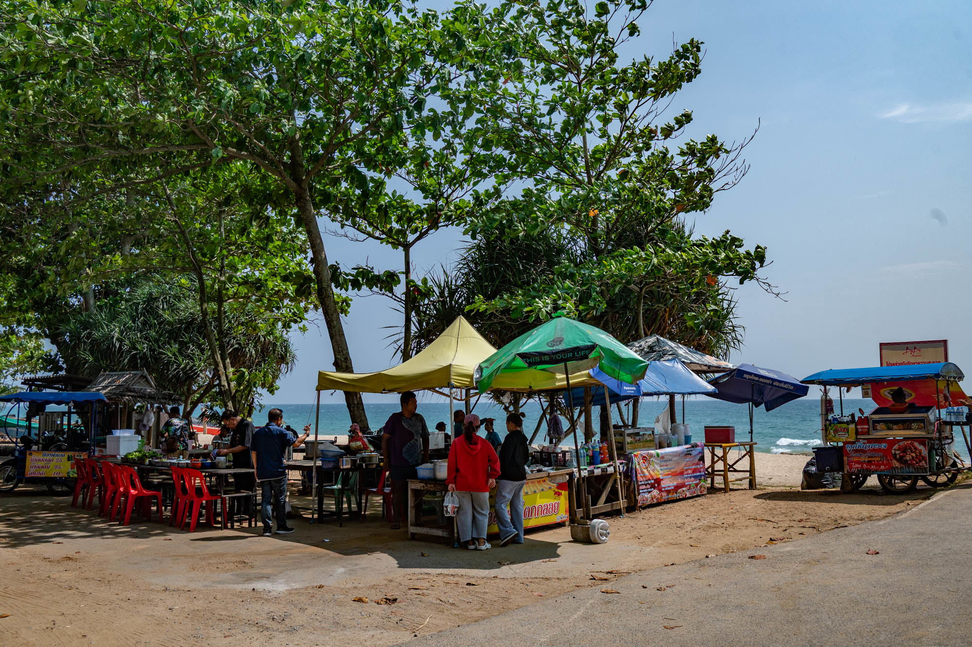 On Ko Kho Khao, my little island by accident, I woke up a few days ago and was amazed by the empty beaches. I’ve seen quite a few from Khura Buri to far south of Kao Lak, but here you can still very easily imagine yourself as Robinson Crusoe. If there were people at all, they were locals. In a hammock or gathered around a few food stalls. Of course, there are plenty of resorts, of which you mostly see the backs, but there is still plenty of paradise left. And when you enter such a resort, you aren't overrun either. Although you sometimes have to dodge a yoga class on the beach. For a temporarily lonely old man like me, those luxury hotel complexes aren't an option either. I prefer drinking my coffee at a small stall on the beach. No, Thailand and its beaches are not lost yet. Incidentally, I did drive through the area where the Christmas 2004 tsunami struck hard. Many monuments and large cemeteries still serve as reminders of this. And the ubiquitous signs indicating the escape routes. I already knew many of those places well back then, and the disaster made a deep impression on me. Then and now, here in these divine places, you feel insignificant as a human being and realize that nature, with its beauty and power, is far above you.