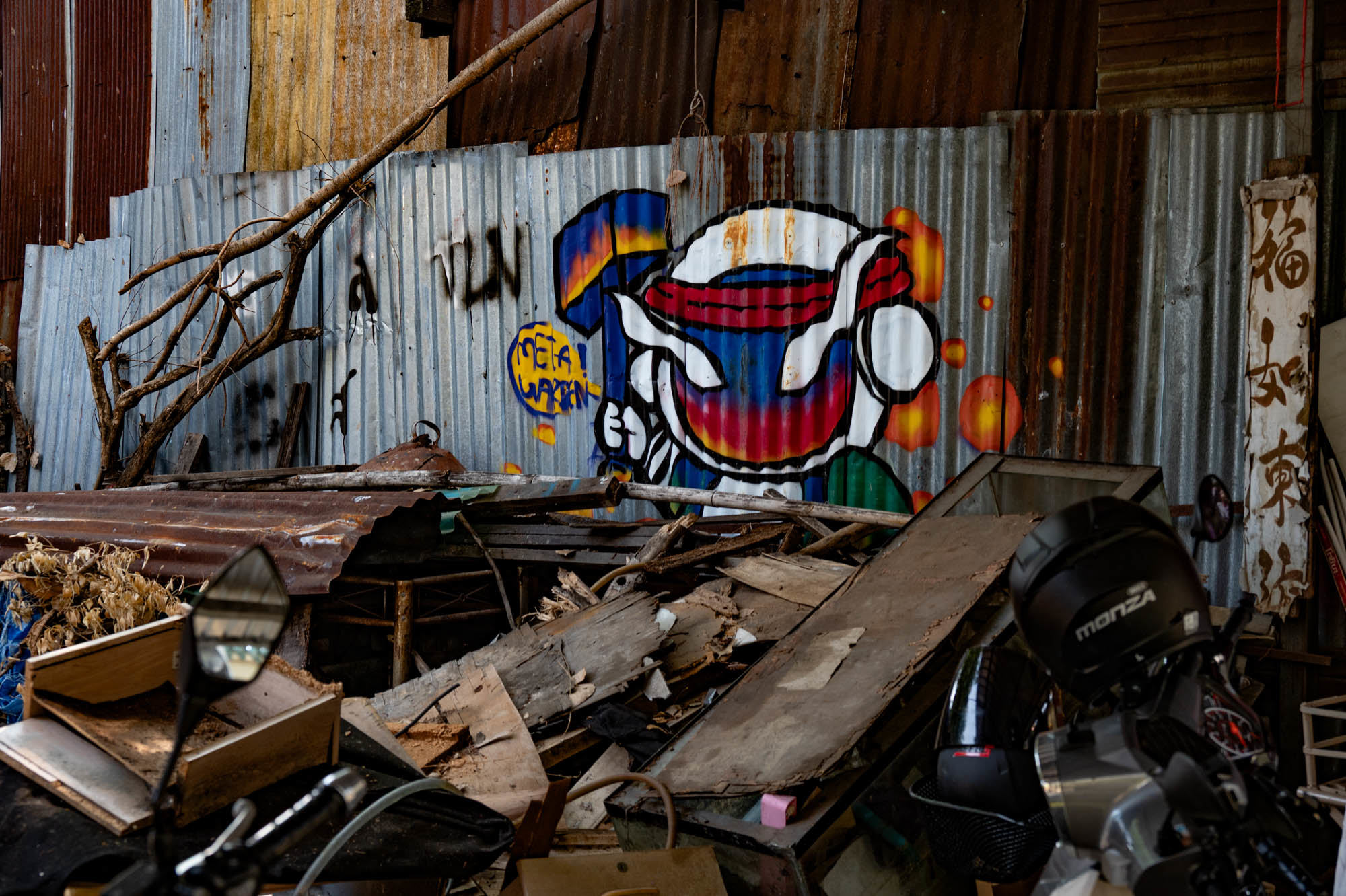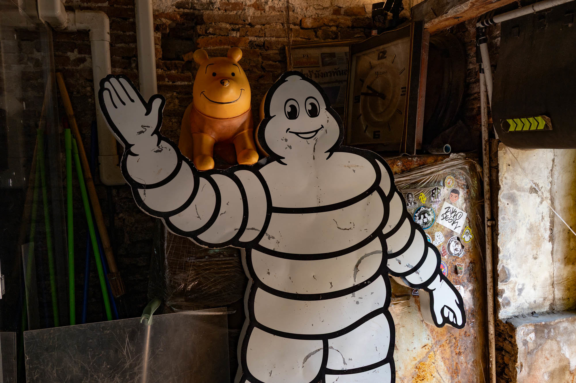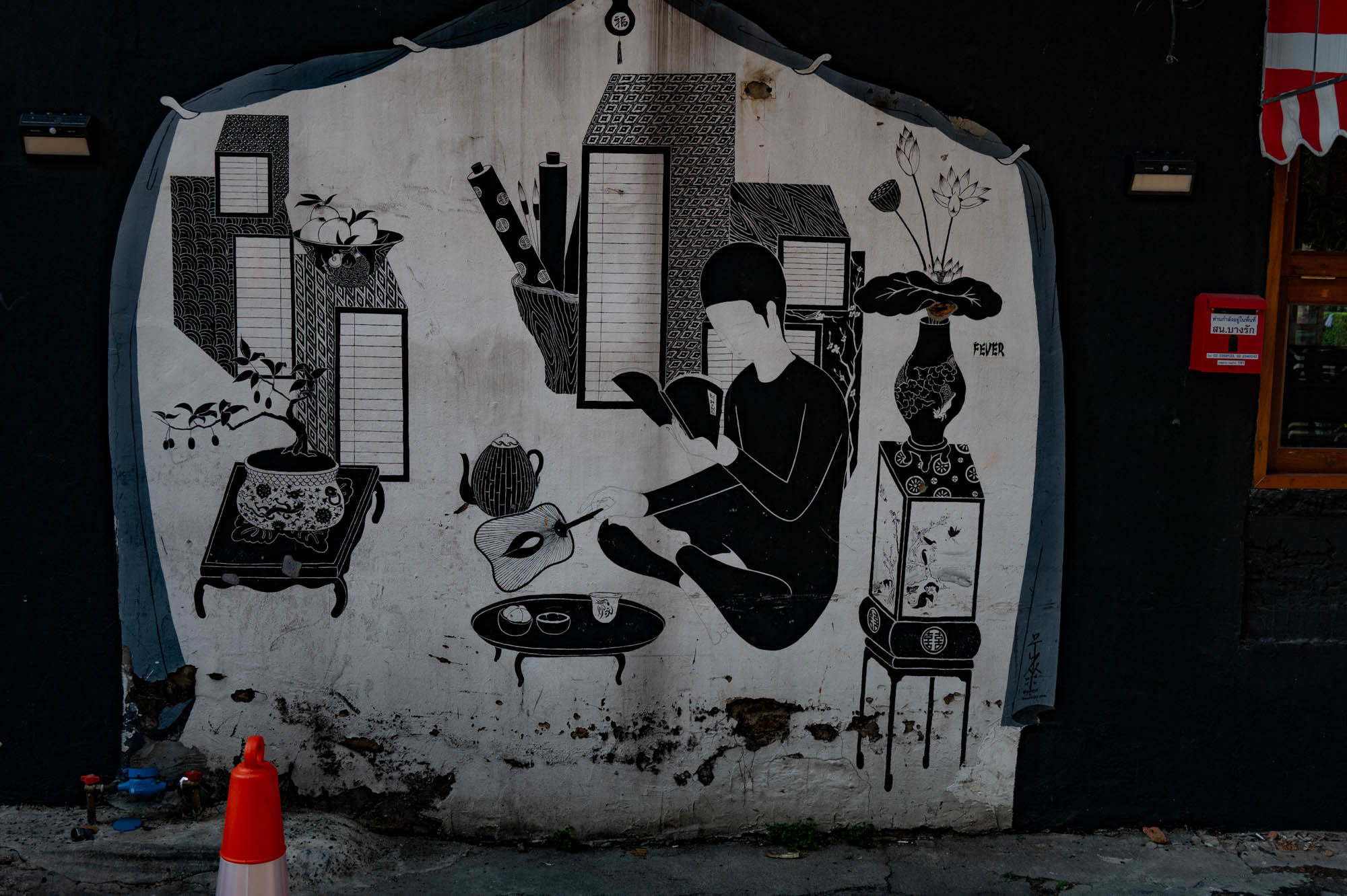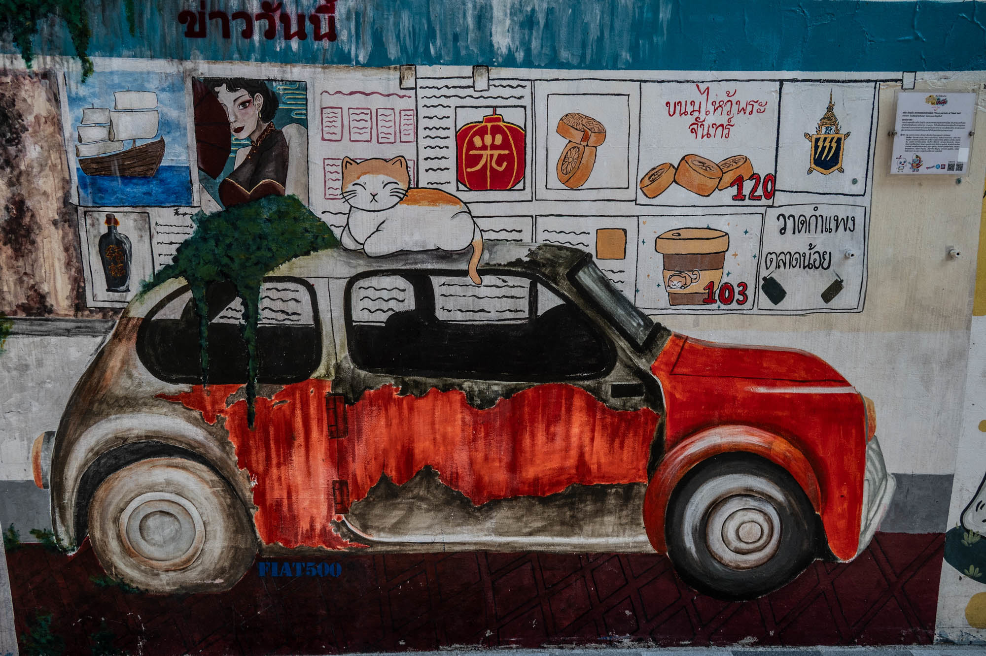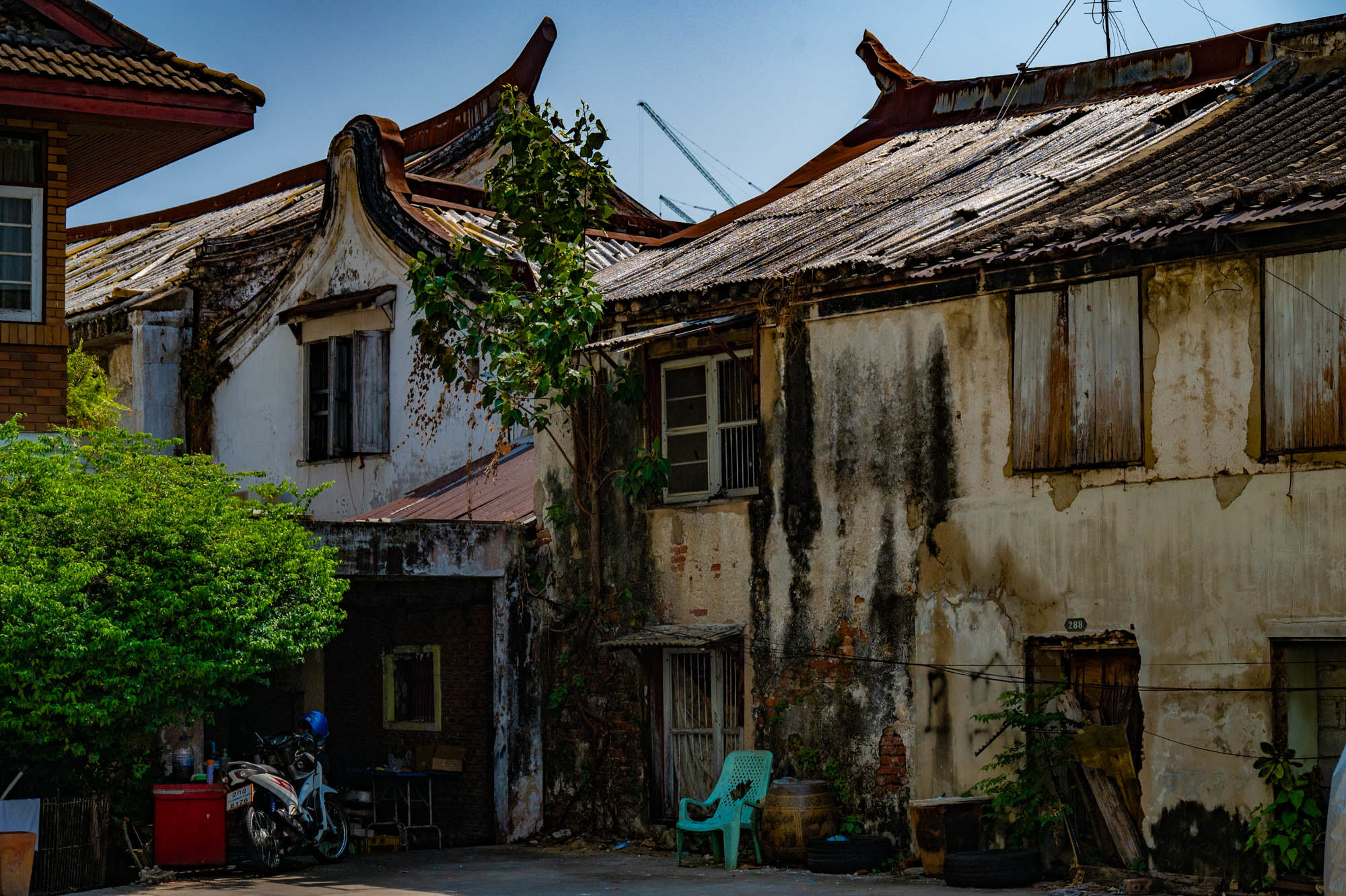 Weer een dag met alledaagse dingen. Bangkok zit er vol mee. Oude dingen, moderne dingen, vreemde dingen en soms dingen die gewoon heel, heel cool zijn. En tandartsen hebben ze ook. Snel, zonder afspraak, en voor dertig euro maken ze je gebit weer toonbaar. Ik zat bij Dr. Dentreat. Prima tandarts. Of het een man of vrouw was, is me nog steeds niet helemaal duidelijk, door al het gesproei was het zicht beperkt. Hun sprak geen Engels dus vragen had geen zin. De assistente sprak het wel, maar was voor mij grotendeels onverstaanbaar. Ongetwijfeld heb ik een reeks uitstekende adviezen gemist en negeer ik nu onbewust iets essentieels. We gaan het merken. Voor die tijd maakte ik een wandeling door Talat Noi. Een wijk waar het oude Chinatown nog deels overeind staat. Dat is niet zozeer te danken aan de geschiedenis, maar aan de jeugd, die ziet in verval juist kansen en begint er barretjes, koffietentjes en creatieve hangplekken. Geweldige plekken om te eten, te drinken, te chillen en vooral om op je telefoon te zitten. Fotograferen met zo’n ding mocht overigens bijna nergens. Maar gelukkig heb ik nog zo’n ouderwetse camera van twee kilo. Dat begrijpen ze hier niet altijd, dus een beetje ruimte om toch mijn gang te gaan. Overal duiken ze op: graffiti en murals. Soms grappig, soms rauw, vaak gewoon echt goed. Ik maakte hier een paar jaar geleden al eens een serie, en het niveau is alleen maar hoger geworden. Topkunst, verstopt tussen roest, rommel en renovatie. Opvallend: nog steeds overal beelden van de oude koning. De nieuwe weet het volk duidelijk minder te raken. Hij slaat, om het voorzichtig te zeggen, nog geen deuk in een pakje boter.