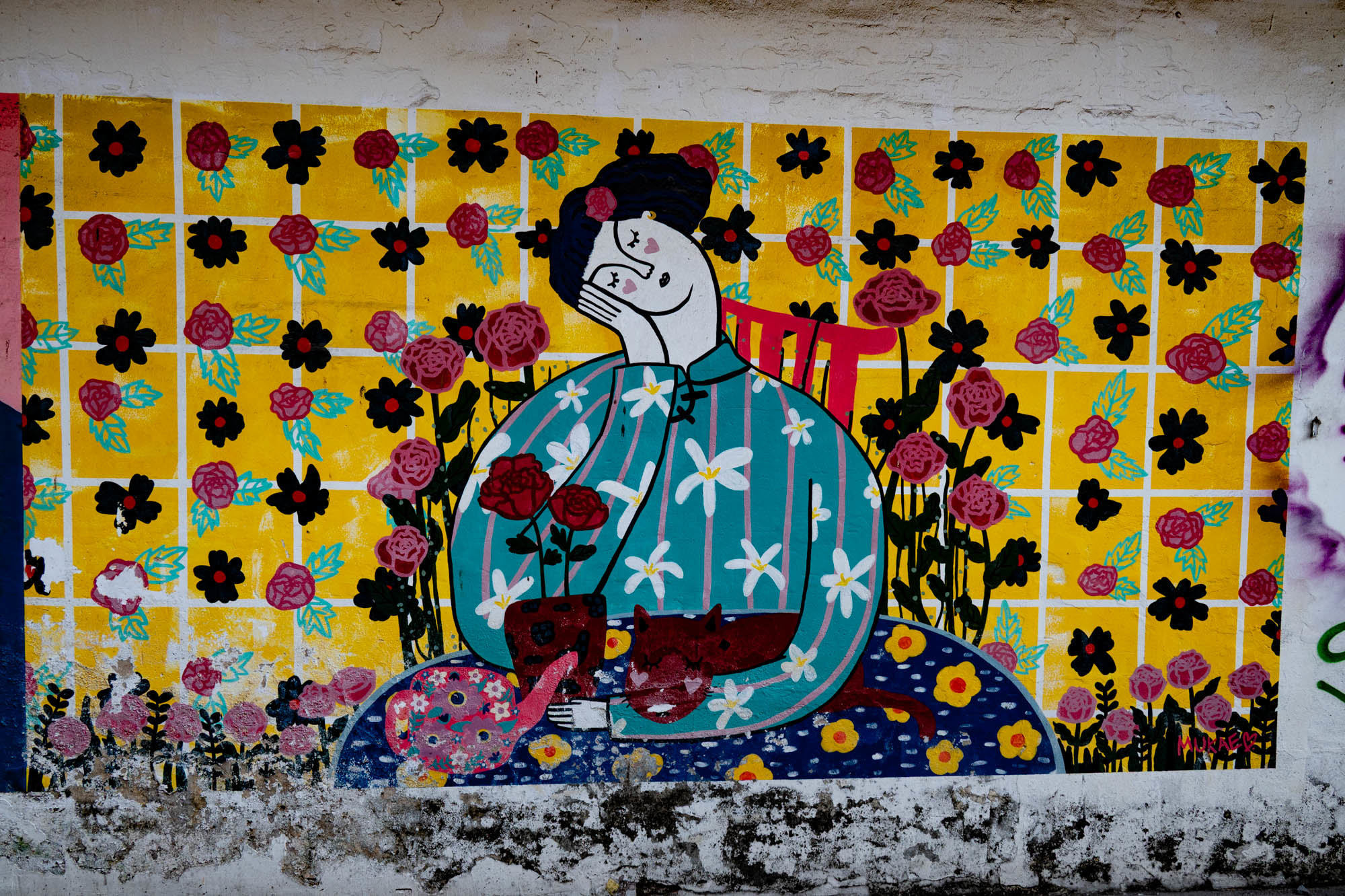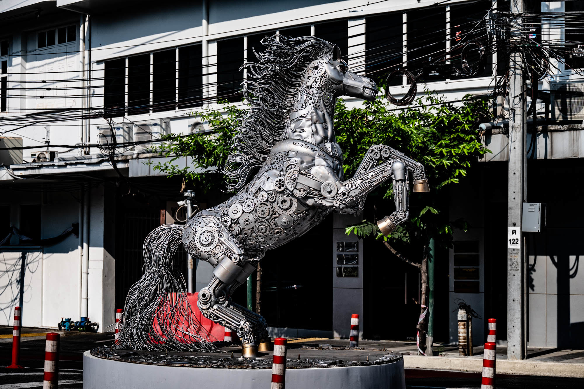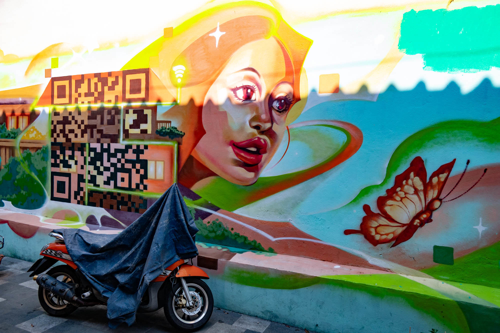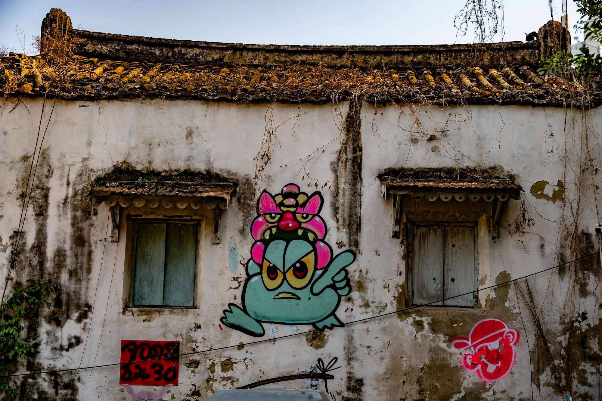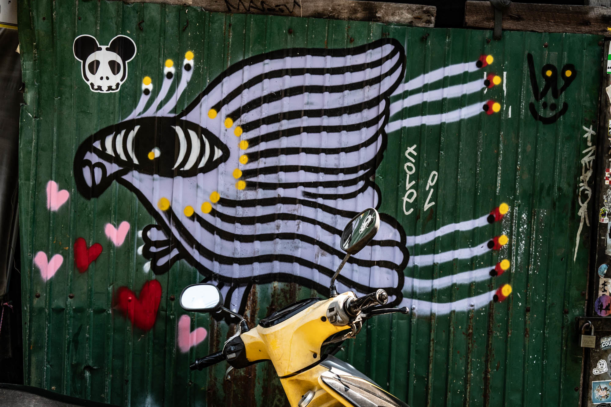 Weer een dag met alledaagse dingen. Bangkok zit er vol mee. Oude dingen, moderne dingen, vreemde dingen en soms dingen die gewoon heel, heel cool zijn. En tandartsen hebben ze ook. Snel, zonder afspraak, en voor dertig euro maken ze je gebit weer toonbaar. Ik zat bij Dr. Dentreat. Prima tandarts. Of het een man of vrouw was, is me nog steeds niet helemaal duidelijk, door al het gesproei was het zicht beperkt. Hun sprak geen Engels dus vragen had geen zin. De assistente sprak het wel, maar was voor mij grotendeels onverstaanbaar. Ongetwijfeld heb ik een reeks uitstekende adviezen gemist en negeer ik nu onbewust iets essentieels. We gaan het merken. Voor die tijd maakte ik een wandeling door Talat Noi. Een wijk waar het oude Chinatown nog deels overeind staat. Dat is niet zozeer te danken aan de geschiedenis, maar aan de jeugd, die ziet in verval juist kansen en begint er barretjes, koffietentjes en creatieve hangplekken. Geweldige plekken om te eten, te drinken, te chillen en vooral om op je telefoon te zitten. Fotograferen met zo’n ding mocht overigens bijna nergens. Maar gelukkig heb ik nog zo’n ouderwetse camera van twee kilo. Dat begrijpen ze hier niet altijd, dus een beetje ruimte om toch mijn gang te gaan. Overal duiken ze op: graffiti en murals. Soms grappig, soms rauw, vaak gewoon echt goed. Ik maakte hier een paar jaar geleden al eens een serie, en het niveau is alleen maar hoger geworden. Topkunst, verstopt tussen roest, rommel en renovatie. Opvallend: nog steeds overal beelden van de oude koning. De nieuwe weet het volk duidelijk minder te raken. Hij slaat, om het voorzichtig te zeggen, nog geen deuk in een pakje boter.