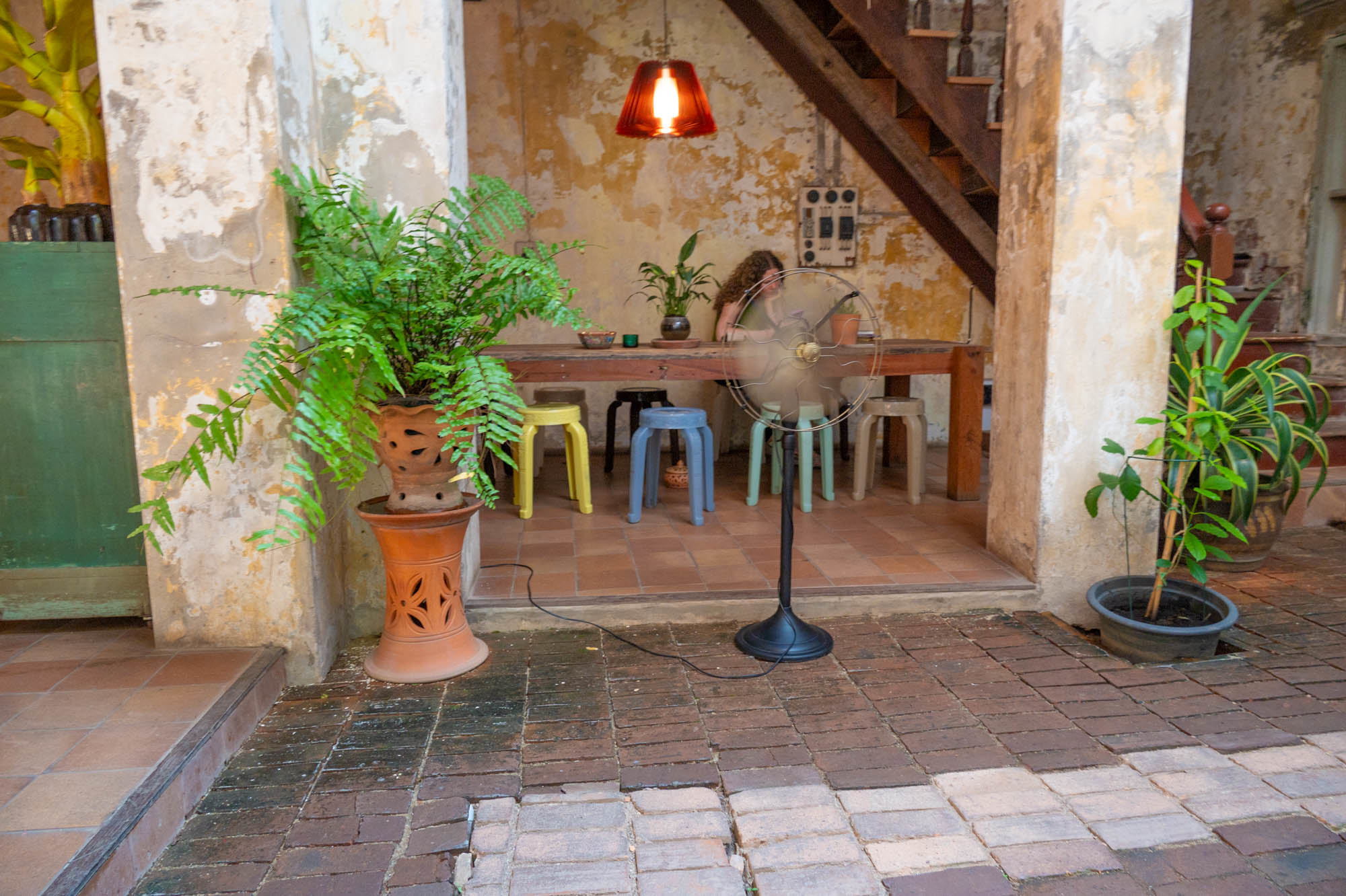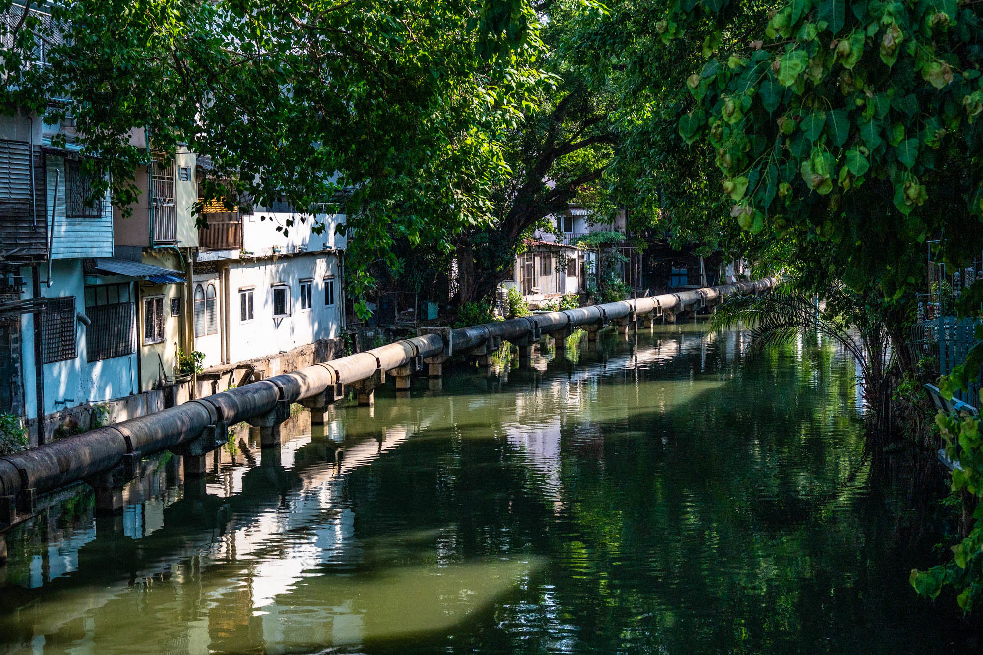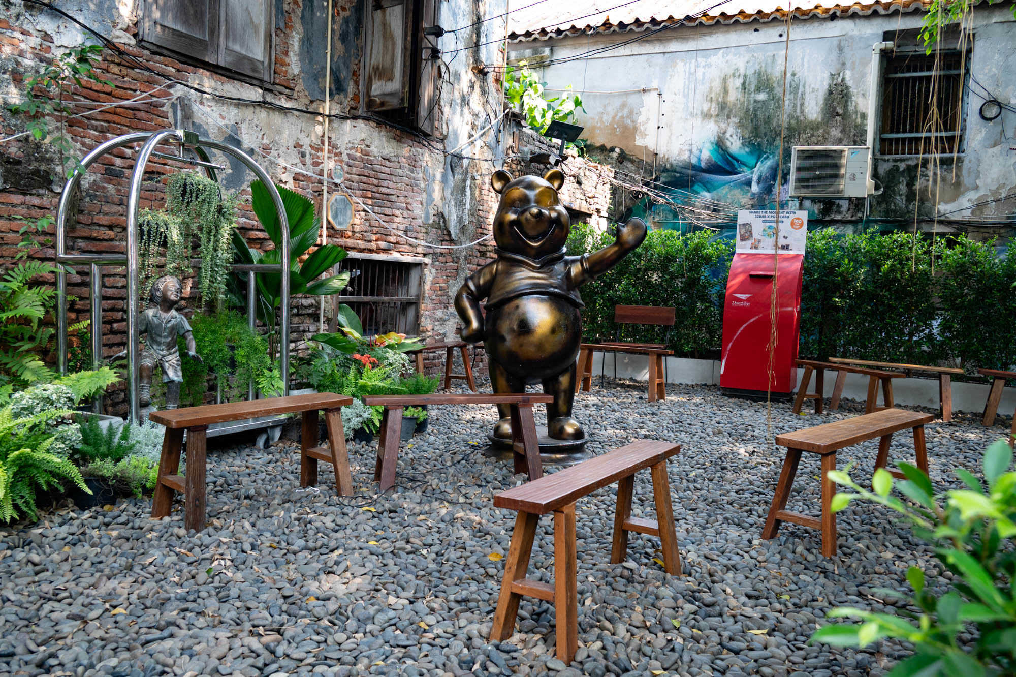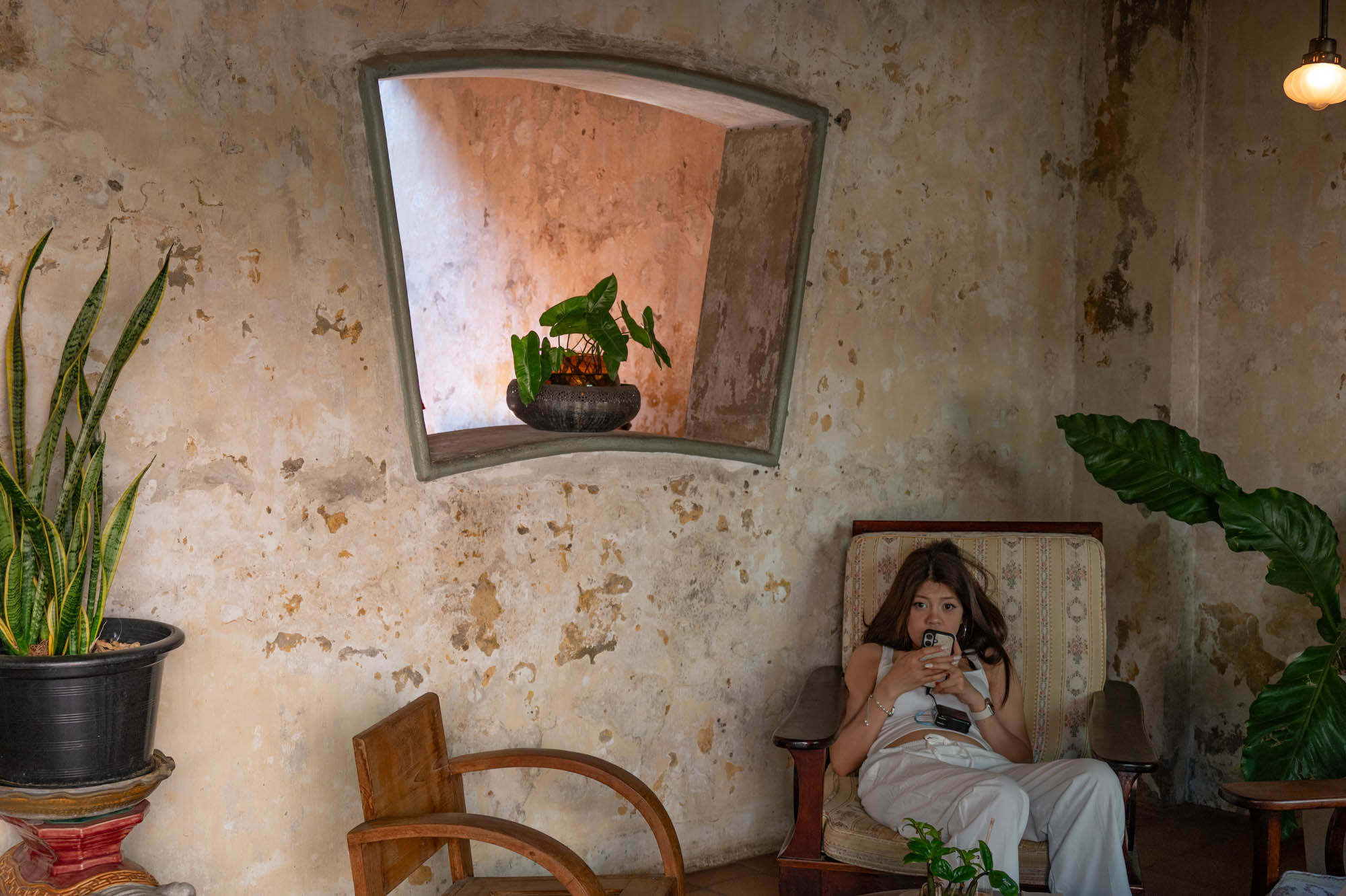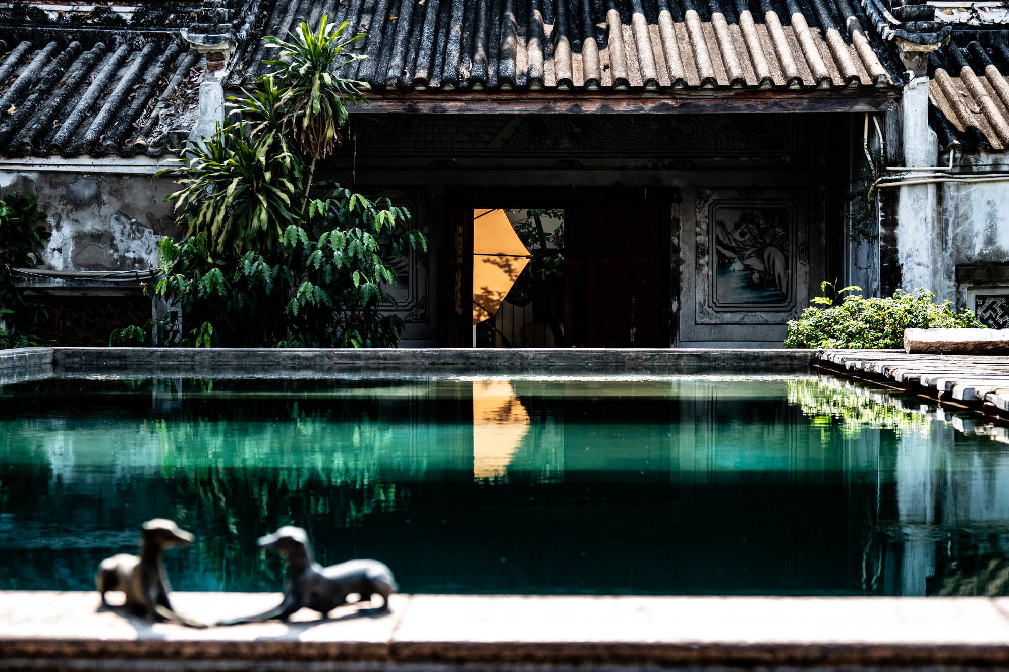 It turns into one giant open-air food hall. Neon lights on, pans firing, plastic stools out and food. Lots of food. It almost feels mandatory to capture that sea of neon. The tiny noodle restaurant or rather, stall with a Michelin star is still there. As absurd as it is brilliant. And where you used to see only a few clueless tourists wandering around in elephant pants, you now see Thai people wearing them too. Not just pants full outfits. The old Chinese men in their “daytime pajamas” suddenly have company again. Meanwhile, I’m staying in a wonderfully atmospheric hotel: Shanghai Mansion. A beautifully designed suite, about the size of my apartment for eighty euros. Per night, unfortunately.