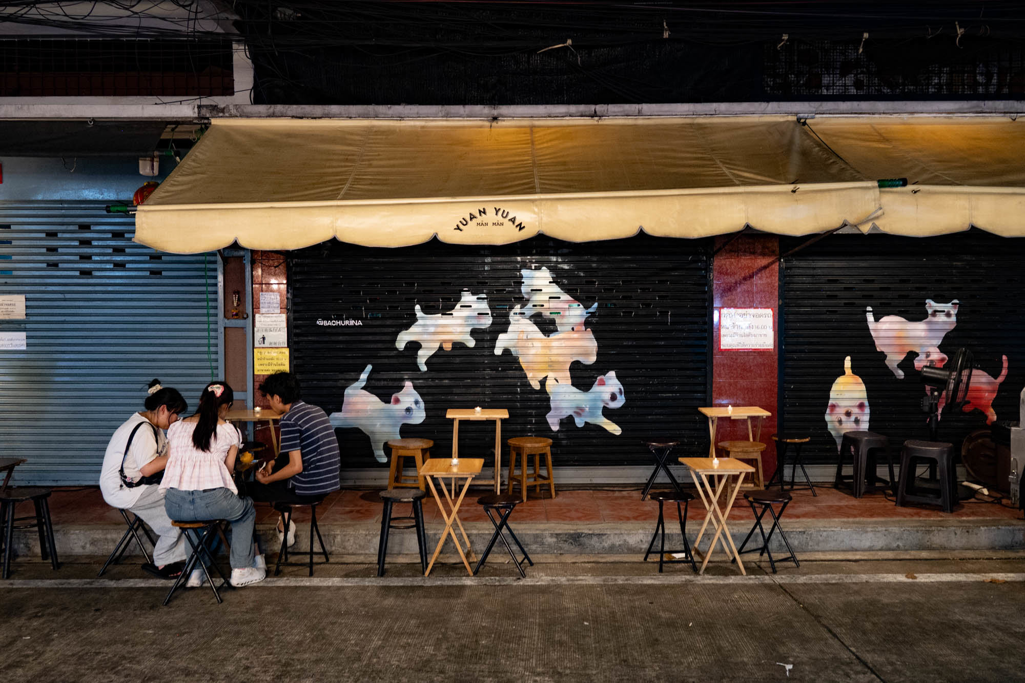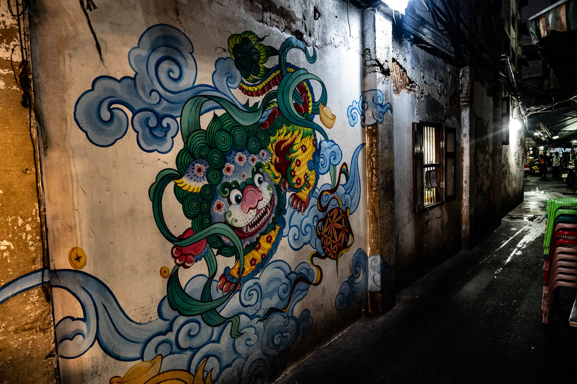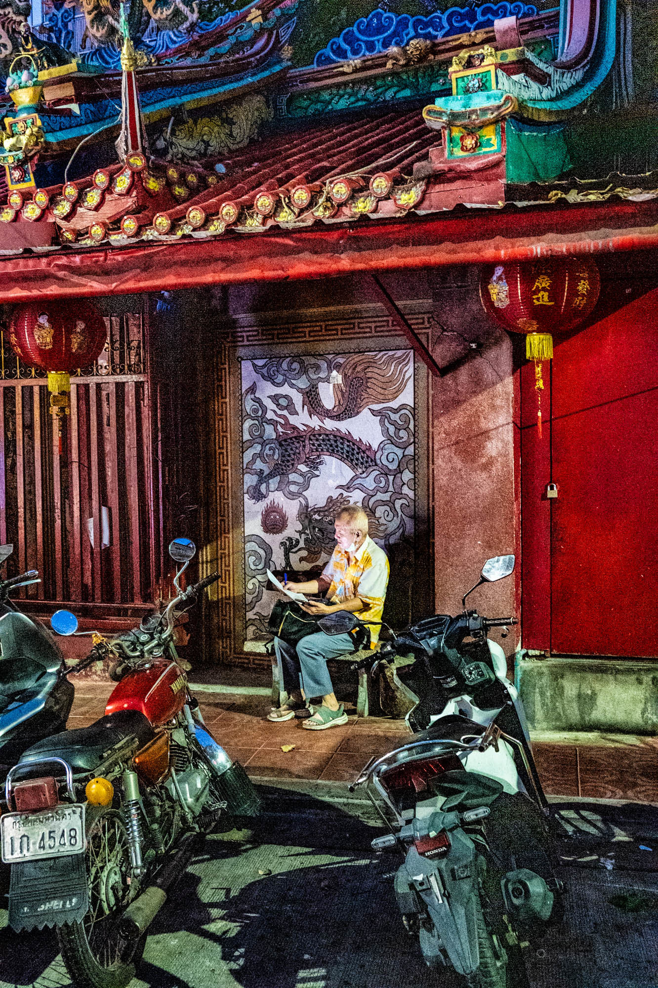 Another day of ordinary things. Bangkok is full of them. Old things, modern things, strange things and sometimes things that are just very, very cool.And yes, they have dentists too. Fast, no appointment needed, and for thirty euros they’ll make your teeth presentable again. I ended up at Dr. Dentreat. A perfectly good dentist. Whether it was a man or a woman, I’m still not entirely sure, the constant spraying made visibility somewhat limited. ‘They’ didn’t speak any English, so asking questions was pointless. The assistant did, but I could barely understand her. I probably missed a whole series of excellent recommendations and am now unknowingly ignoring something essential. Time will tell. Before that, I took a walk through Talat Noi, a neighborhood where parts of the old Chinatown are still standing. Not so much thanks to preservation, but to the younger generation, who see opportunity in decay and start bars, coffee spots, and creative hangouts. The result: great places to eat, drink, chill and mostly to sit on your phone. Taking photos with a camera like mine was hardly allowed anywhere. Luckily, I still carry one of those old-fashioned two-kilo cameras. People don’t always quite understand what it is, which gives just enough leeway to get away with it. Everywhere you look: graffiti and murals. Sometimes funny, sometimes raw, often genuinely good. I shot a series here a few years ago, and the level has only improved. Real art, tucked away between rust, clutter, and renovation. One thing stands out: images of the old king are still everywhere. The new one clearly doesn’t resonate in quite the same way. To put it mildly, he hasn’t exactly made much of an impression. And then, in the evening: Chinatown.