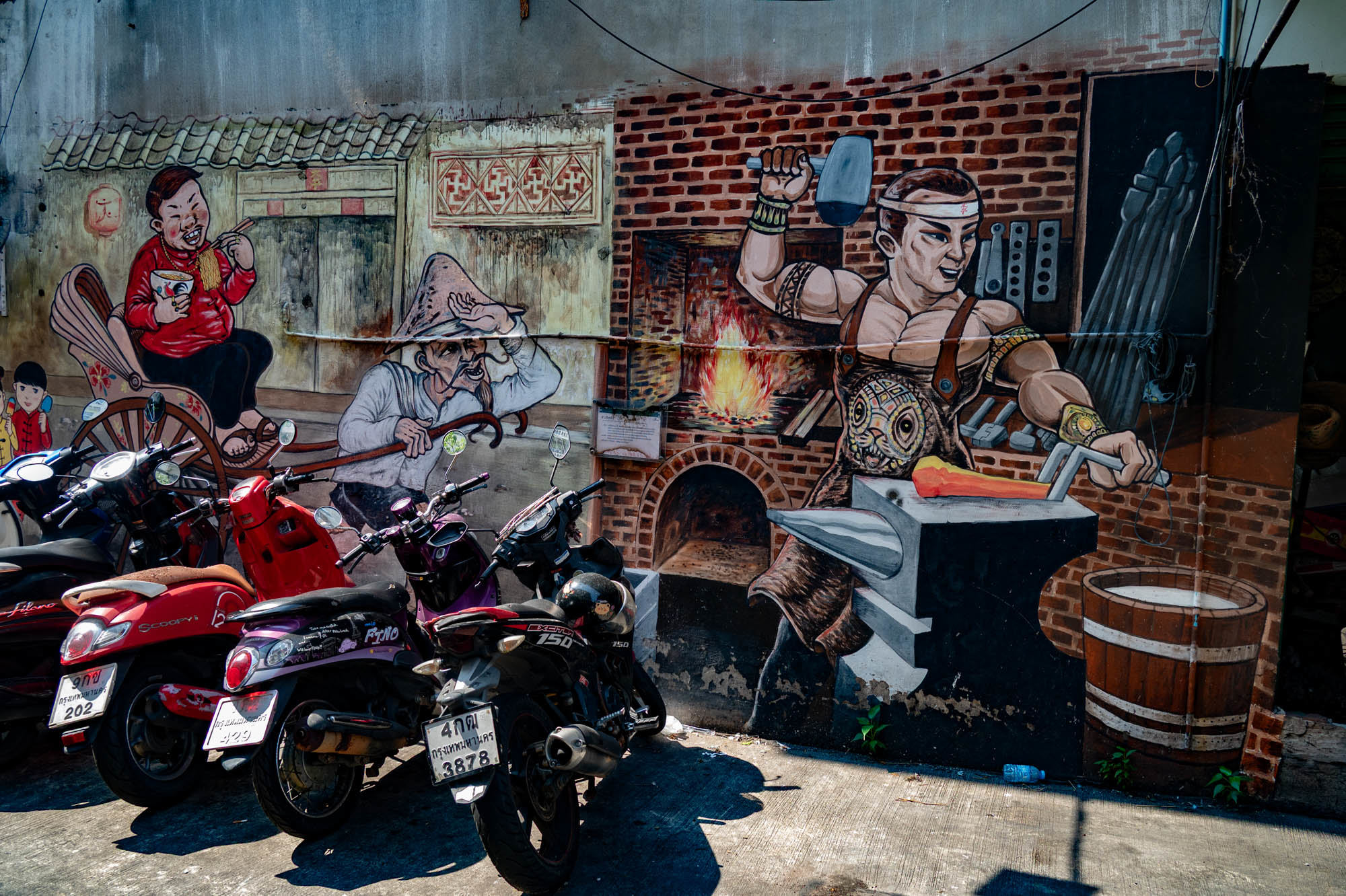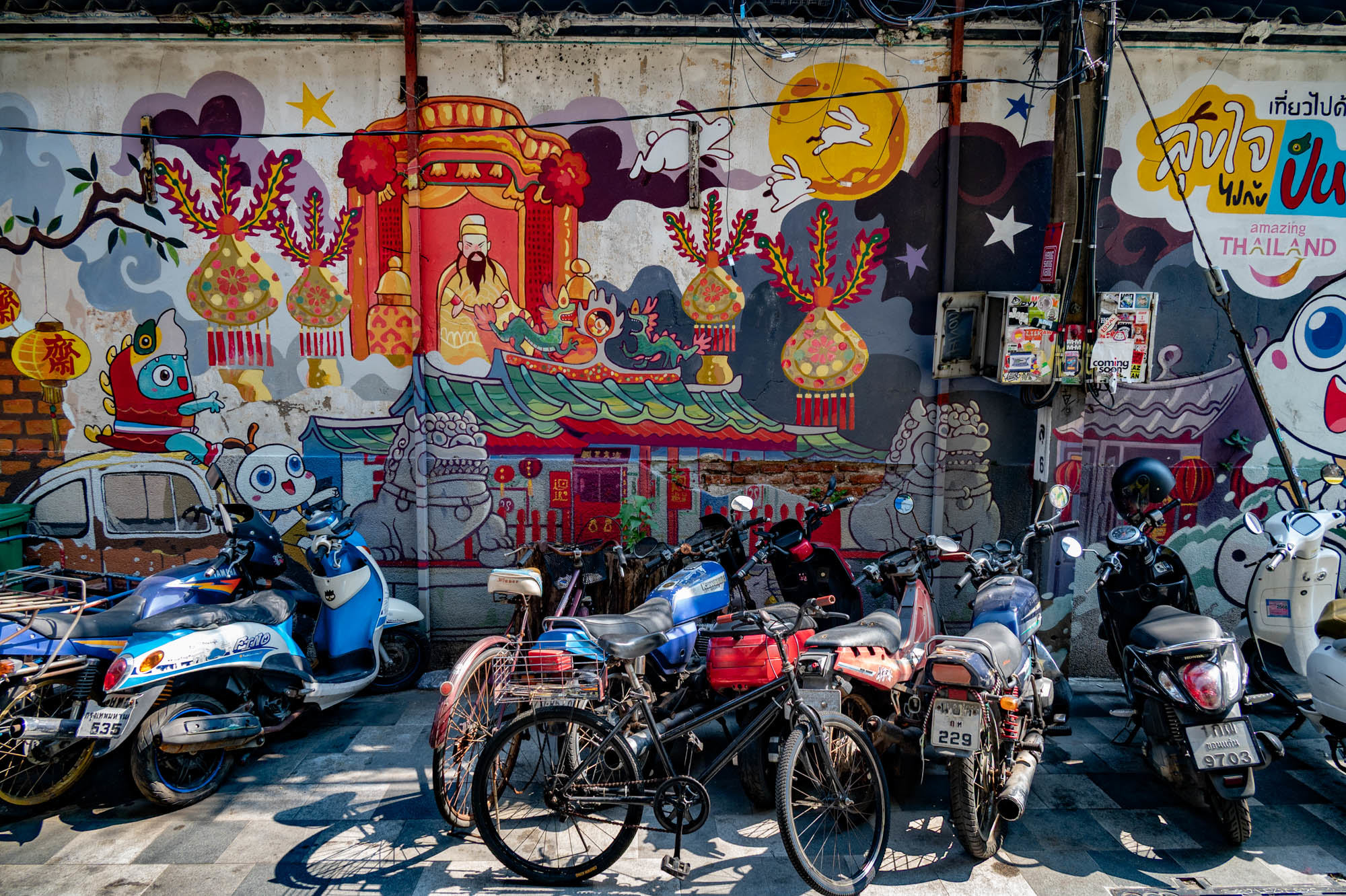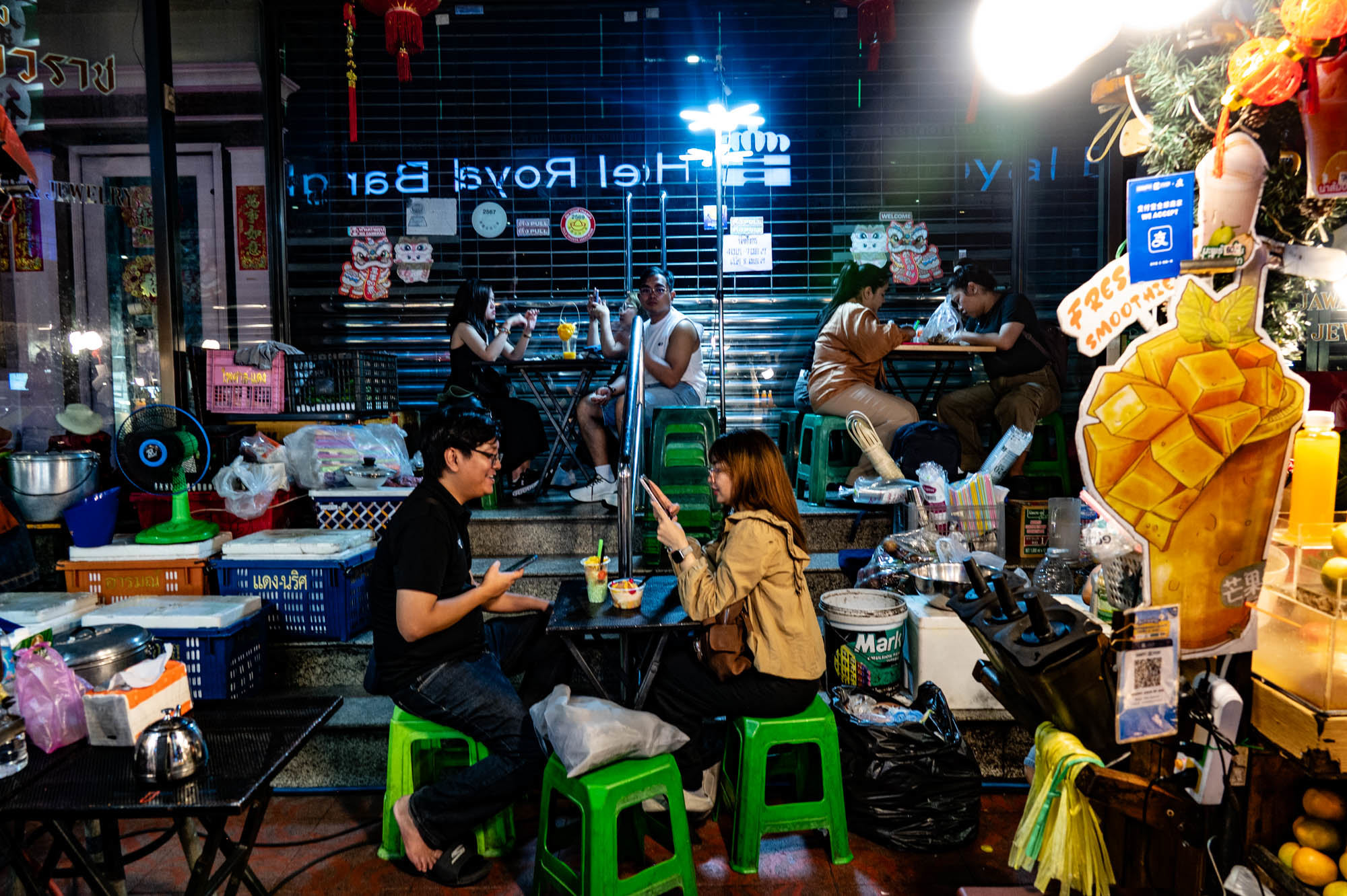 Another day of ordinary things. Bangkok is full of them. Old things, modern things, strange things and sometimes things that are just very, very cool.And yes, they have dentists too. Fast, no appointment needed, and for thirty euros they’ll make your teeth presentable again. I ended up at Dr. Dentreat. A perfectly good dentist. Whether it was a man or a woman, I’m still not entirely sure, the constant spraying made visibility somewhat limited. ‘They’ didn’t speak any English, so asking questions was pointless. The assistant did, but I could barely understand her. I probably missed a whole series of excellent recommendations and am now unknowingly ignoring something essential. Time will tell. Before that, I took a walk through Talat Noi, a neighborhood where parts of the old Chinatown are still standing. Not so much thanks to preservation, but to the younger generation, who see opportunity in decay and start bars, coffee spots, and creative hangouts. The result: great places to eat, drink, chill and mostly to sit on your phone. Taking photos with a camera like mine was hardly allowed anywhere. Luckily, I still carry one of those old-fashioned two-kilo cameras. People don’t always quite understand what it is, which gives just enough leeway to get away with it. Everywhere you look: graffiti and murals. Sometimes funny, sometimes raw, often genuinely good. I shot a series here a few years ago, and the level has only improved. Real art, tucked away between rust, clutter, and renovation. One thing stands out: images of the old king are still everywhere. The new one clearly doesn’t resonate in quite the same way. To put it mildly, he hasn’t exactly made much of an impression. And then, in the evening: Chinatown.