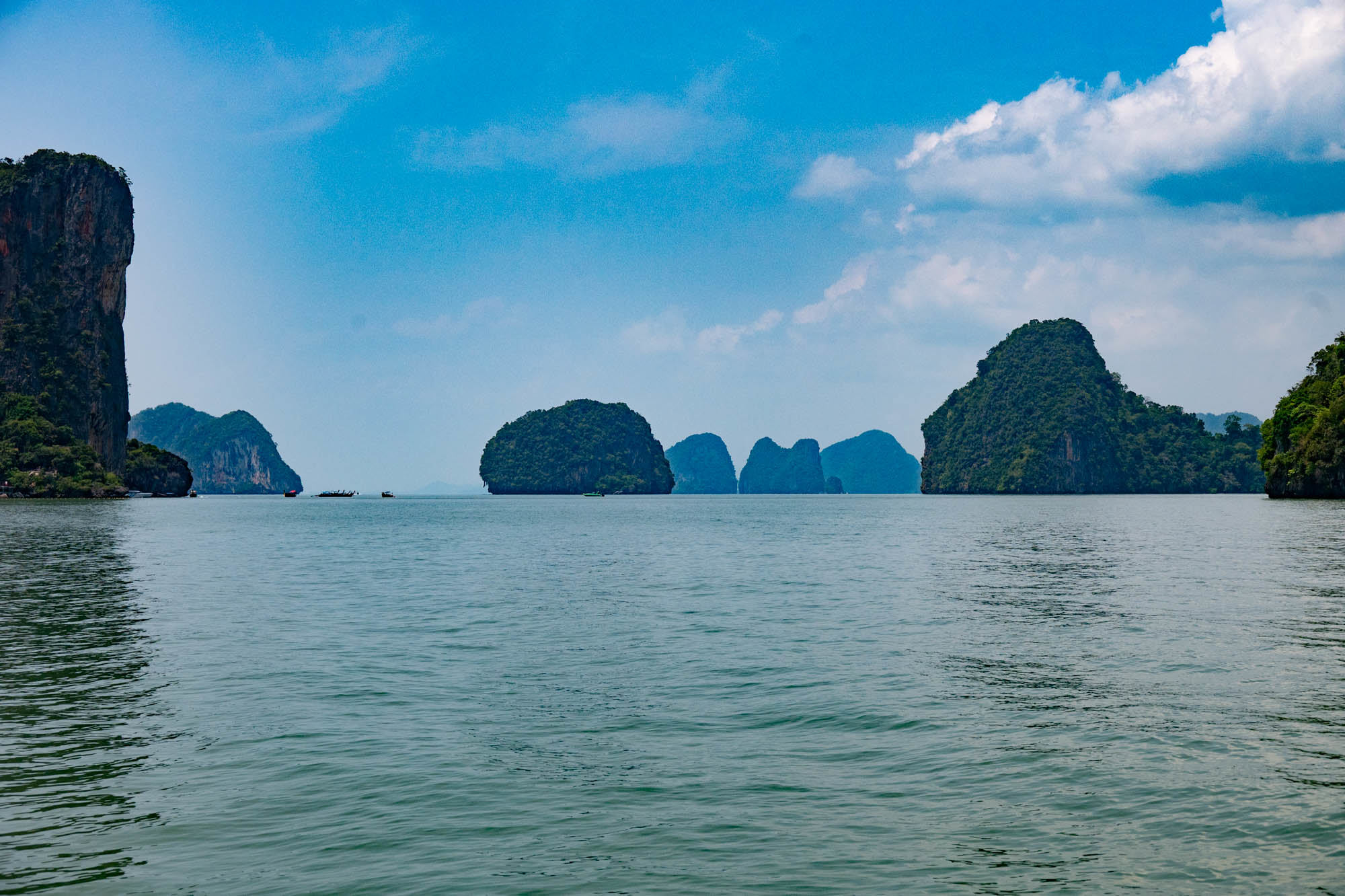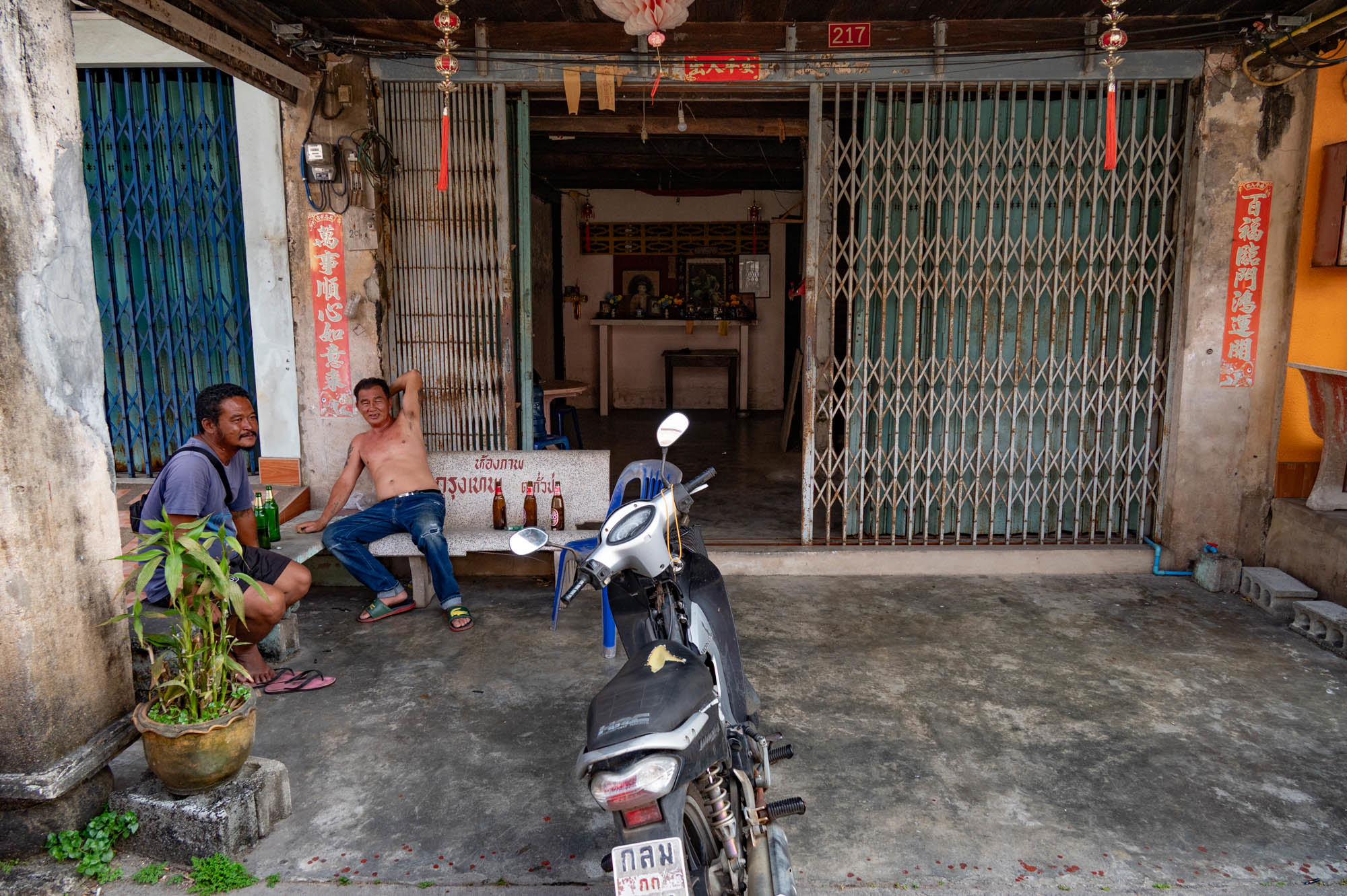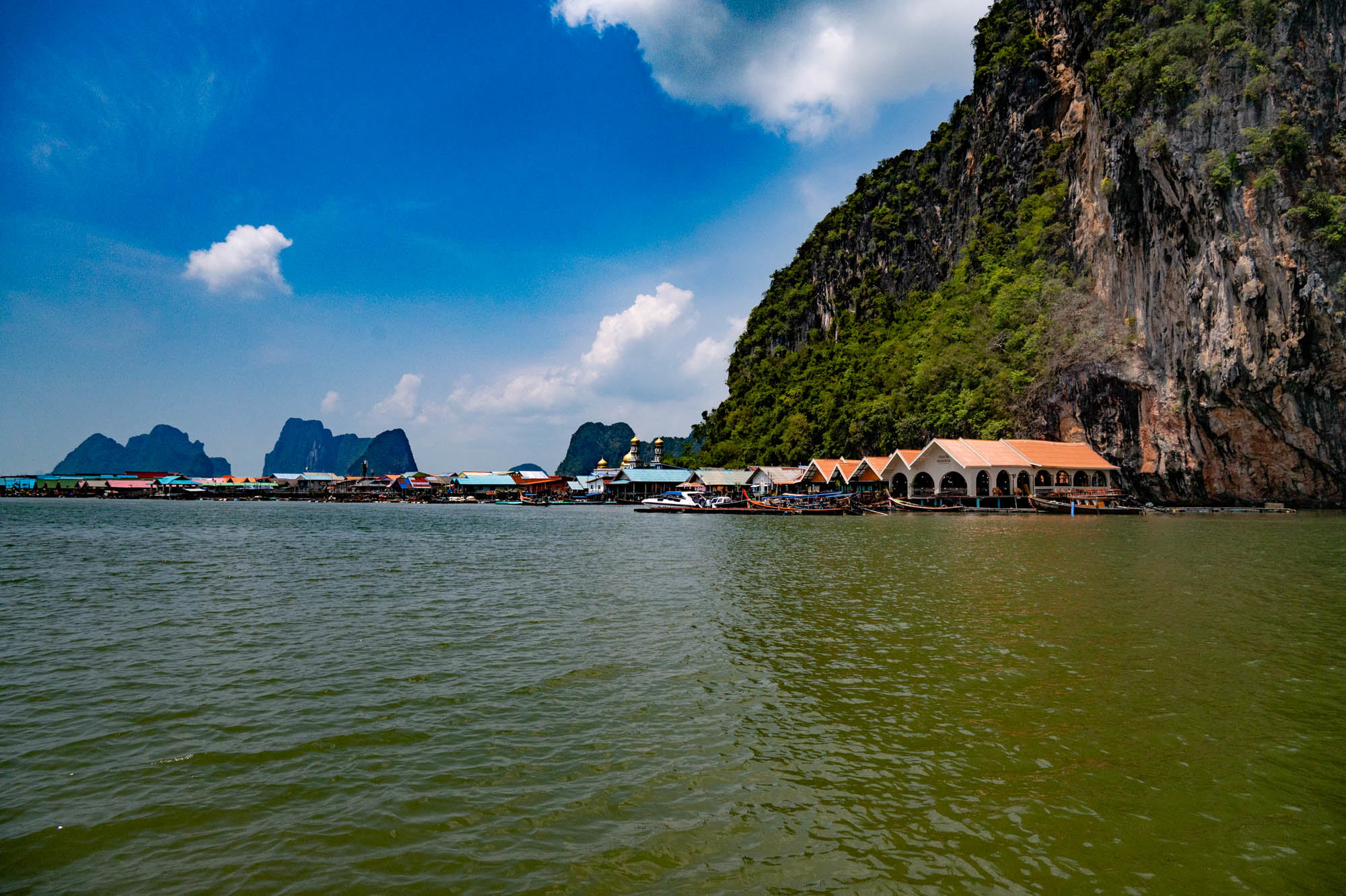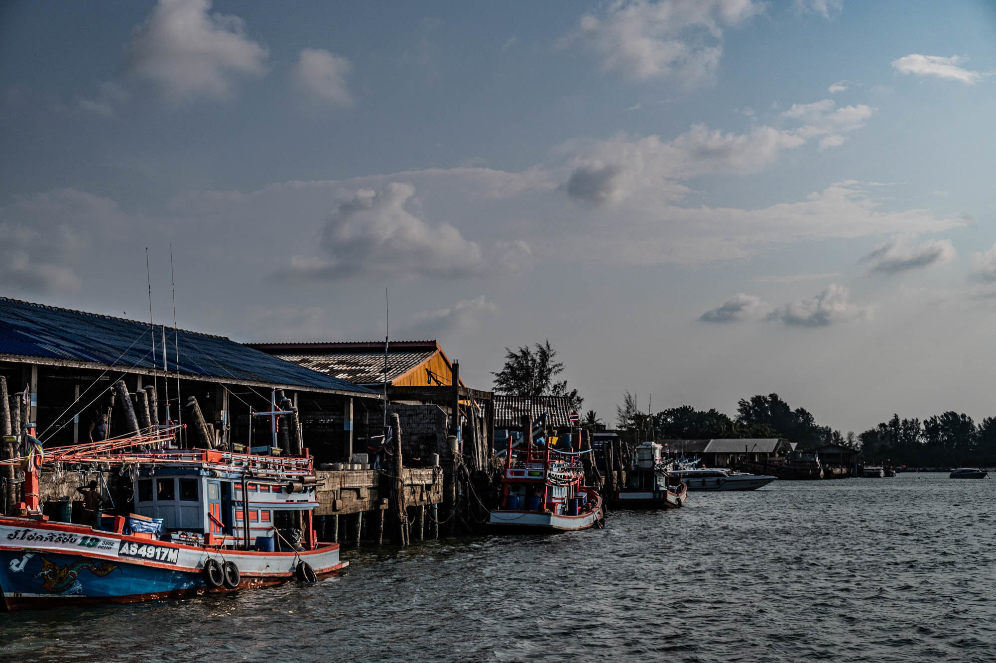 Gisteren afscheid genomen van de boys. En, iets te voortvarend, ook van de foto’s van die dag, een fractie te snel van de camera verwijderd. Weg herinneringen, of in ieder geval: zonder bewijs. Maar nu dan terug op Phuket want daar ten noorden valt nog wat te ontdekken, al is er ook al genoeg ontgonnen. Eerste stop: Phang Nga Bay. Maar zonder boot zie je er weinig meer dan een soort Zuiderplas. Dus: een boot geregeld. Dat kost wat, vraagt om stevig onderhandelen, en levert uiteindelijk een licht ongemakkelijke zitplek op vanwaar je naar rotsen en water staart. Indrukwekkende rotsen, dat wel. Uiteraard hebben ze allemaal de vorm van dieren, als je maar lang genoeg kijkt. De bekende plekken komen voorbij, tot en met het inmiddels volledig uitgemolken James Bond Island. Nieuw voor mij waren de kano’s, maar voor de rest voelde het als een déjà vu. Ik was hier tenslotte al twee keer eerder, lang geleden. Het moslimdorp op palen stond er nog steeds. Alleen met ietsje wat meer winkeltjes. Jezus. Opmerkelijk hoe in veertig jaar de tanige, gebruinde vissers ineens hun BMI in de gaten lijken te moeten houden. De tocht was eigenlijk overbodig maar de nostalgie wil ook wat. Na een paar uurtje cruisen door bergen en bossen met zo nu en dan een dorpje reed ik Takua Pa binnen. Een wonderlijk mooi geconserveerd stadje. Ik was nu echt terug in de tijd. Een cadeautje. De tocht had mij weer vlakbij de kust gebracht dus de keuze viel op een strandje om te slapen. De reservering vermelde niet dat de bungalows op een eilandje lagen en de rit van een half uurtje werd vanwege de veerboot een uurtje langer. Wachten bij een haventje is geen straf en ik was nog net voor zonsondergang op het strandje.