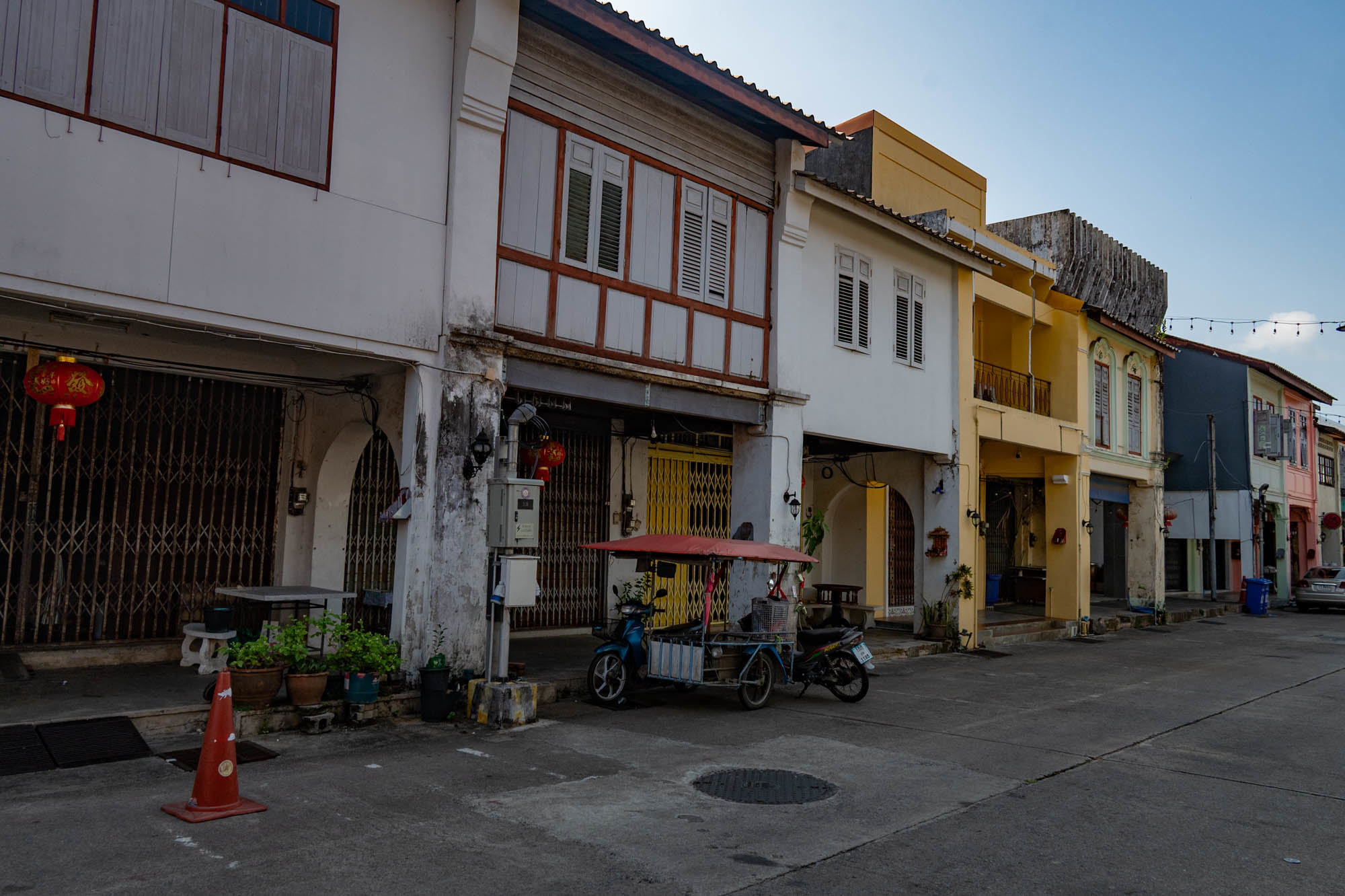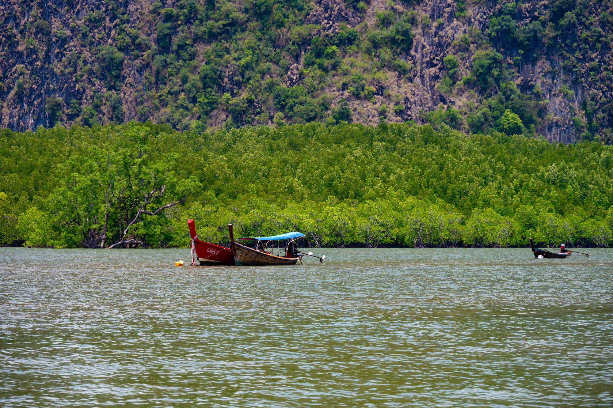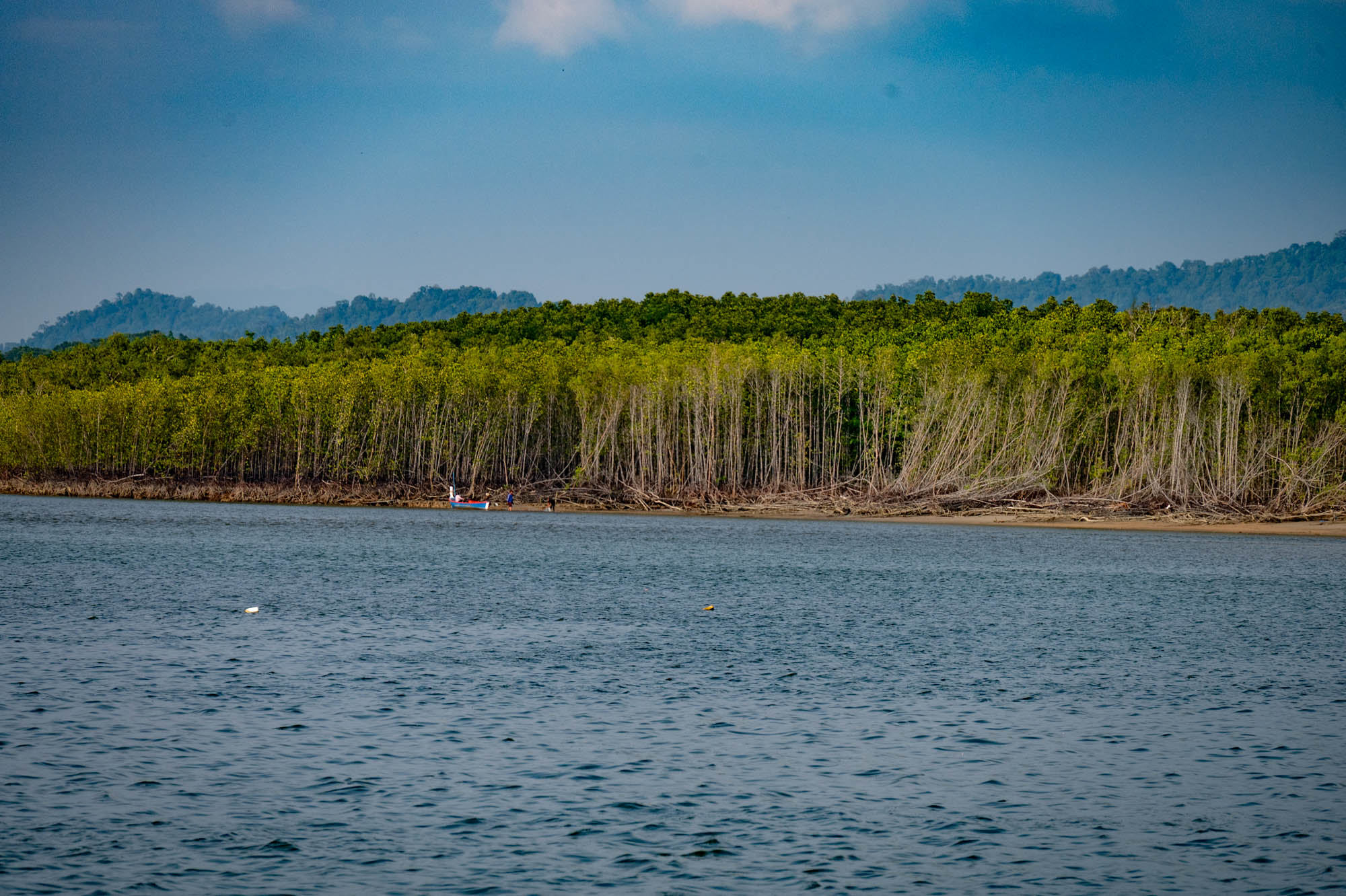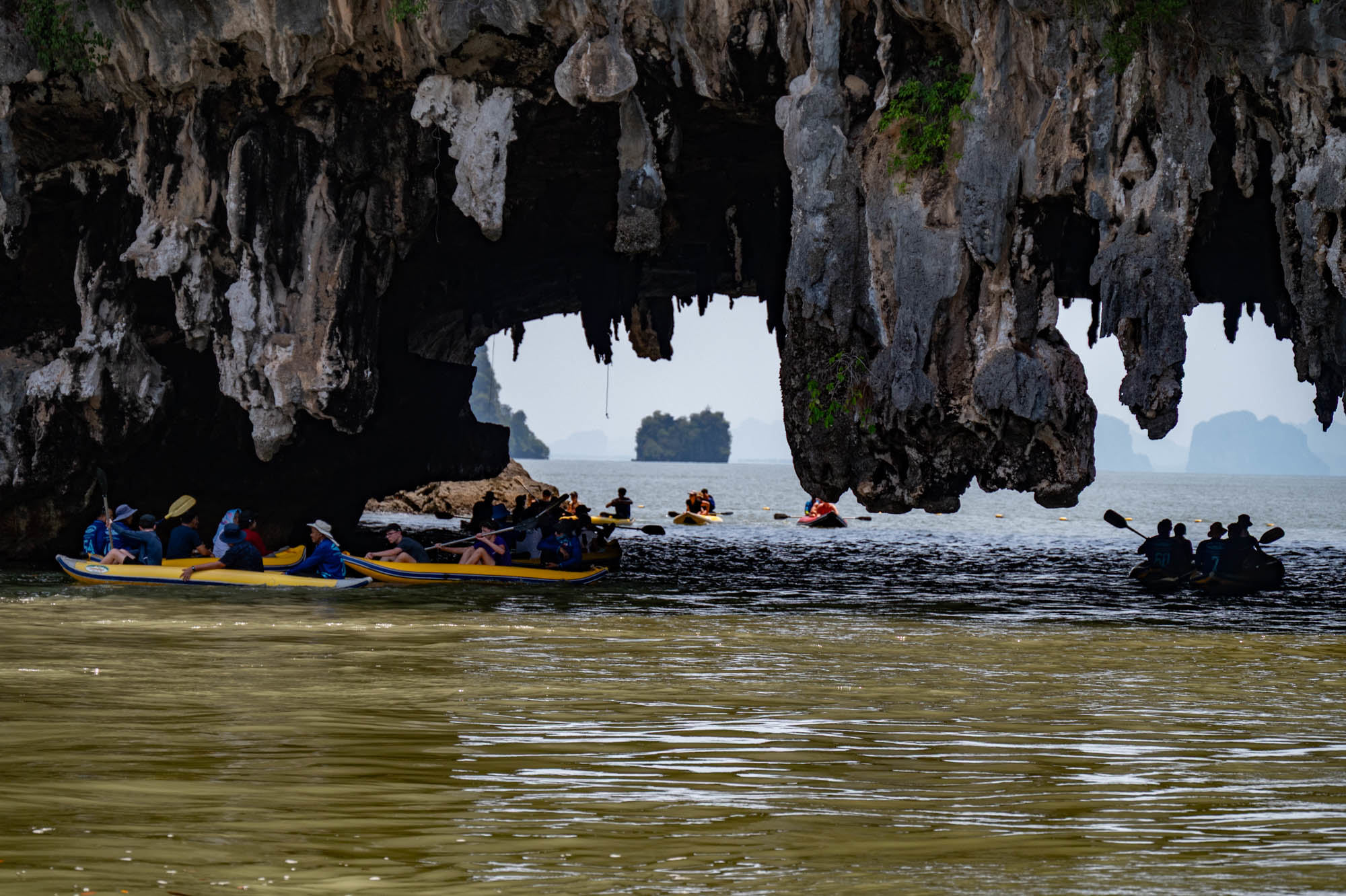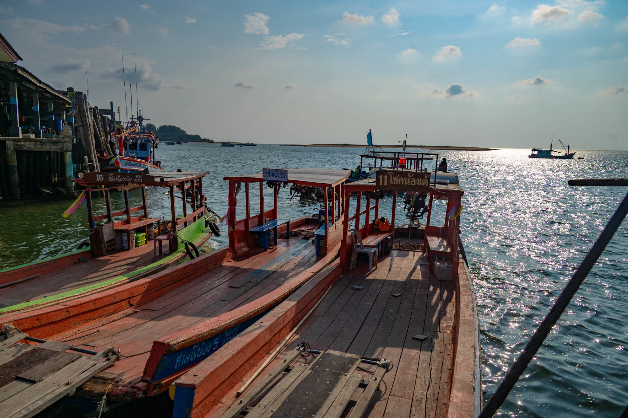 Gisteren afscheid genomen van de boys. En, iets te voortvarend, ook van de foto’s van die dag, een fractie te snel van de camera verwijderd. Weg herinneringen, of in ieder geval: zonder bewijs. Maar nu dan terug op Phuket want daar ten noorden valt nog wat te ontdekken, al is er ook al genoeg ontgonnen. Eerste stop: Phang Nga Bay. Maar zonder boot zie je er weinig meer dan een soort Zuiderplas. Dus: een boot geregeld. Dat kost wat, vraagt om stevig onderhandelen, en levert uiteindelijk een licht ongemakkelijke zitplek op vanwaar je naar rotsen en water staart. Indrukwekkende rotsen, dat wel. Uiteraard hebben ze allemaal de vorm van dieren, als je maar lang genoeg kijkt. De bekende plekken komen voorbij, tot en met het inmiddels volledig uitgemolken James Bond Island. Nieuw voor mij waren de kano’s, maar voor de rest voelde het als een déjà vu. Ik was hier tenslotte al twee keer eerder, lang geleden. Het moslimdorp op palen stond er nog steeds. Alleen met ietsje wat meer winkeltjes. Jezus. Opmerkelijk hoe in veertig jaar de tanige, gebruinde vissers ineens hun BMI in de gaten lijken te moeten houden. De tocht was eigenlijk overbodig maar de nostalgie wil ook wat. Na een paar uurtje cruisen door bergen en bossen met zo nu en dan een dorpje reed ik Takua Pa binnen. Een wonderlijk mooi geconserveerd stadje. Ik was nu echt terug in de tijd. Een cadeautje. De tocht had mij weer vlakbij de kust gebracht dus de keuze viel op een strandje om te slapen. De reservering vermelde niet dat de bungalows op een eilandje lagen en de rit van een half uurtje werd vanwege de veerboot een uurtje langer. Wachten bij een haventje is geen straf en ik was nog net voor zonsondergang op het strandje.