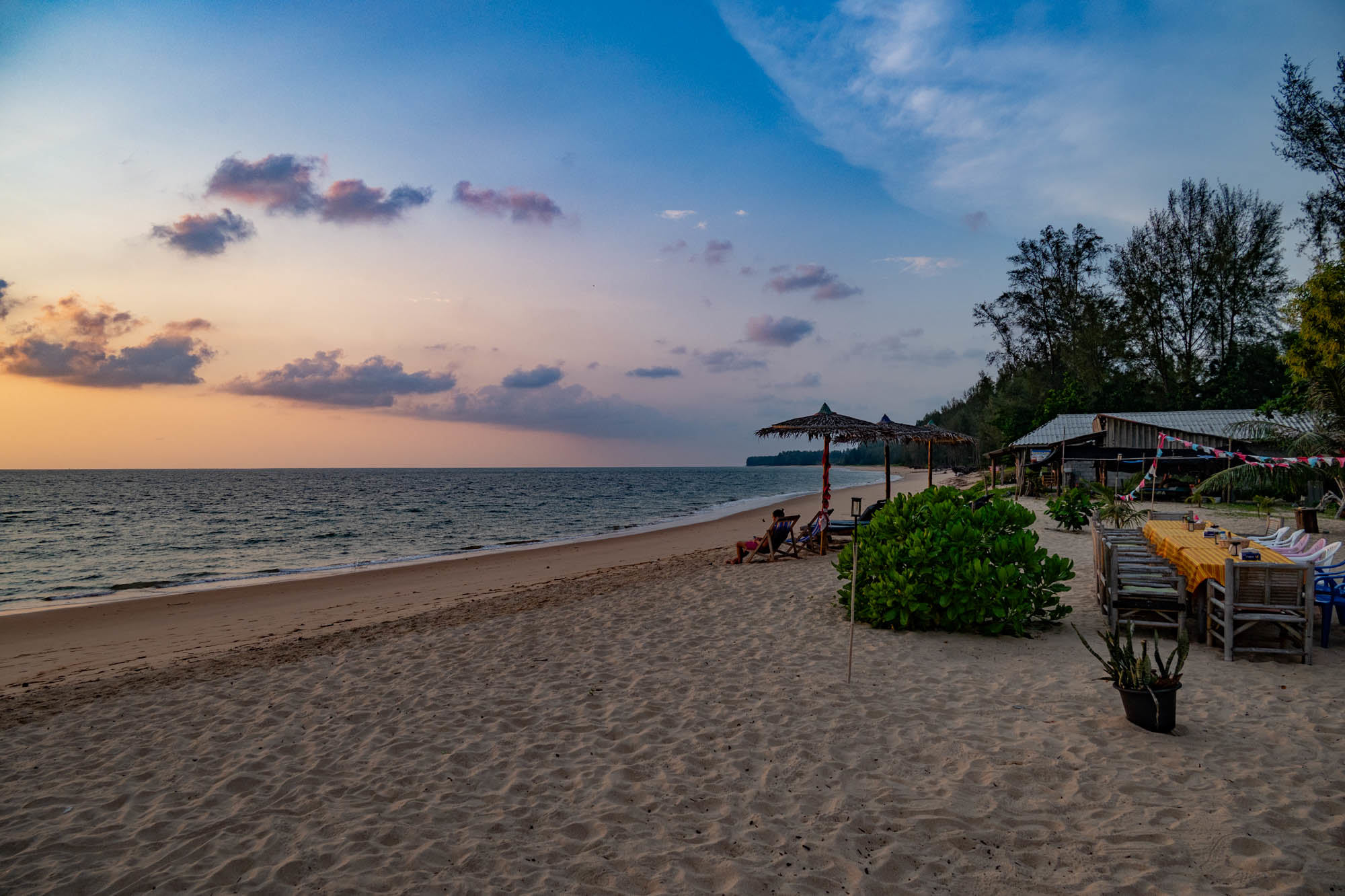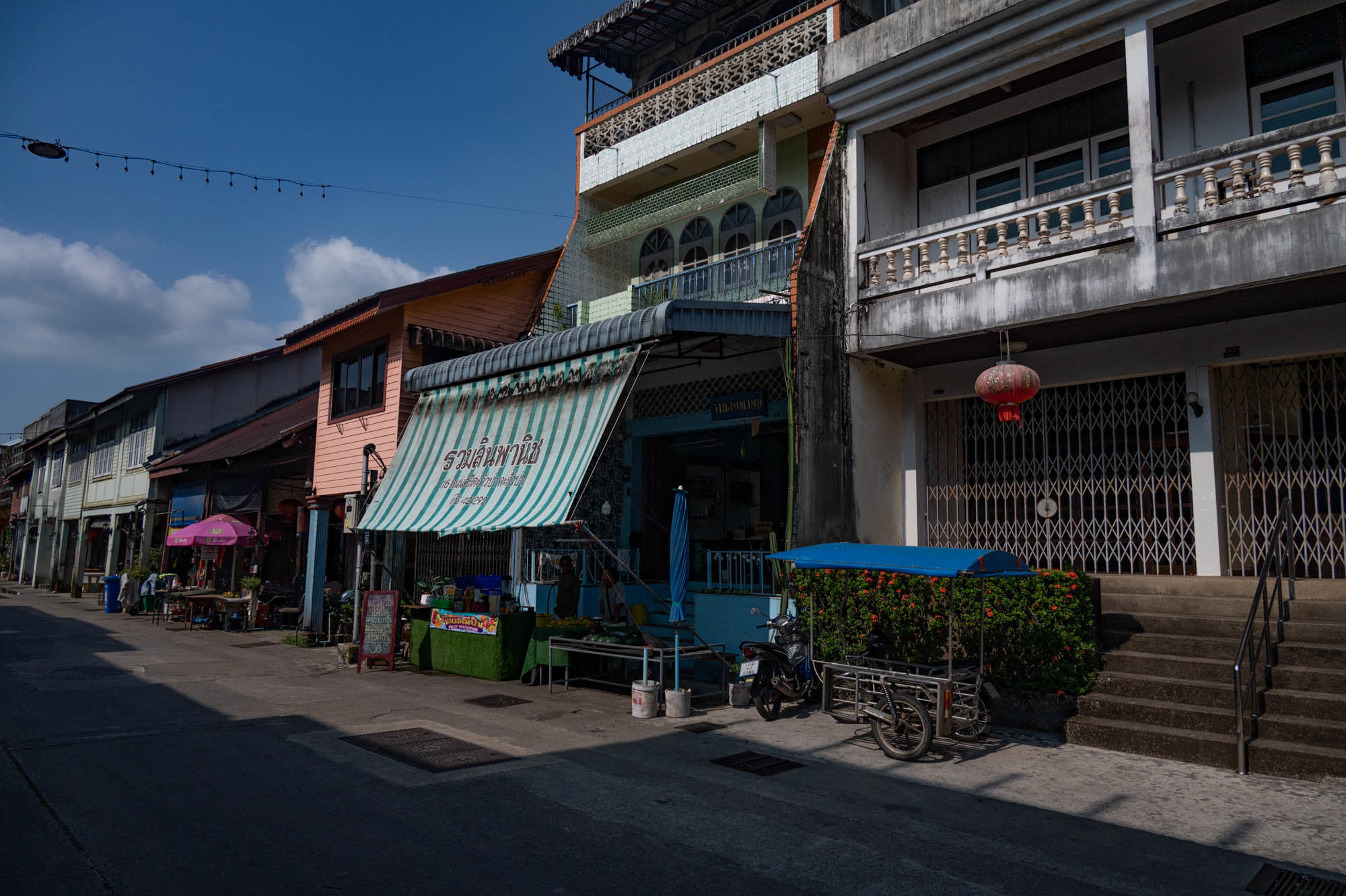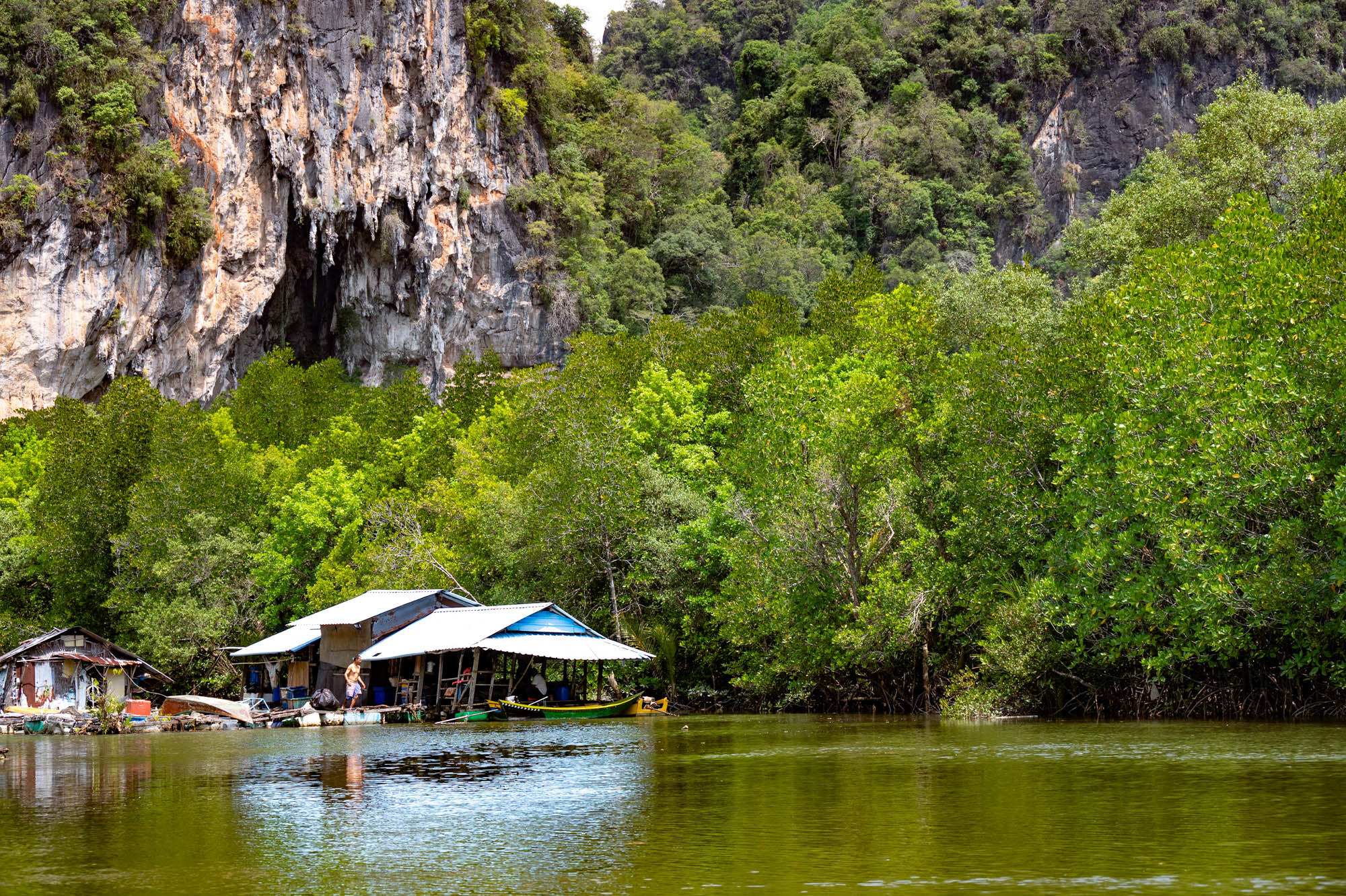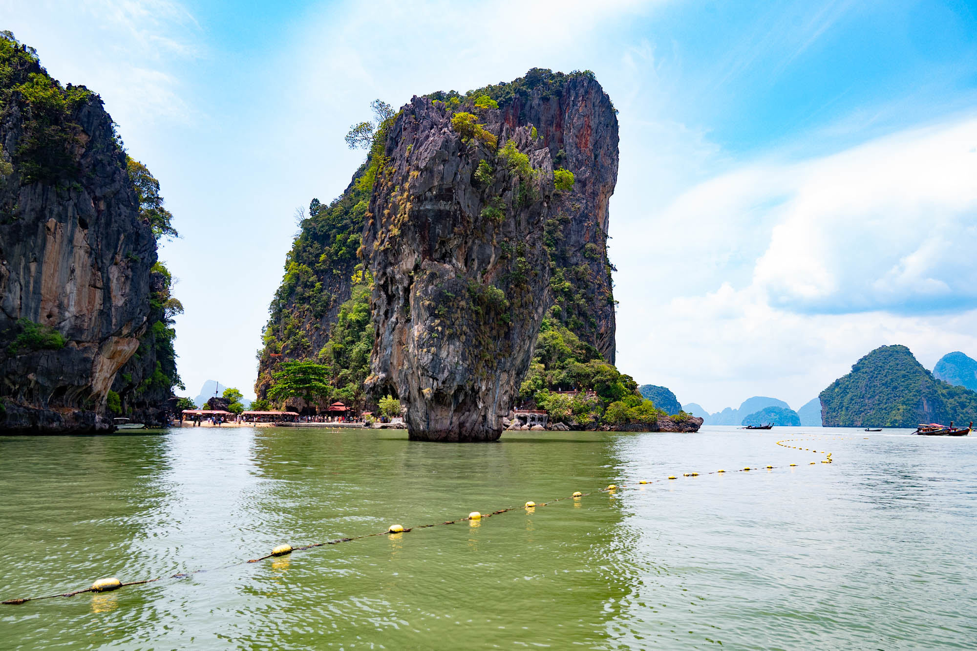 Gisteren afscheid genomen van de boys. En, iets te voortvarend, ook van de foto’s van die dag, een fractie te snel van de camera verwijderd. Weg herinneringen, of in ieder geval: zonder bewijs. Maar nu dan terug op Phuket want daar ten noorden valt nog wat te ontdekken, al is er ook al genoeg ontgonnen. Eerste stop: Phang Nga Bay. Maar zonder boot zie je er weinig meer dan een soort Zuiderplas. Dus: een boot geregeld. Dat kost wat, vraagt om stevig onderhandelen, en levert uiteindelijk een licht ongemakkelijke zitplek op vanwaar je naar rotsen en water staart. Indrukwekkende rotsen, dat wel. Uiteraard hebben ze allemaal de vorm van dieren, als je maar lang genoeg kijkt. De bekende plekken komen voorbij, tot en met het inmiddels volledig uitgemolken James Bond Island. Nieuw voor mij waren de kano’s, maar voor de rest voelde het als een déjà vu. Ik was hier tenslotte al twee keer eerder, lang geleden. Het moslimdorp op palen stond er nog steeds. Alleen met ietsje wat meer winkeltjes. Jezus. Opmerkelijk hoe in veertig jaar de tanige, gebruinde vissers ineens hun BMI in de gaten lijken te moeten houden. De tocht was eigenlijk overbodig maar de nostalgie wil ook wat. Na een paar uurtje cruisen door bergen en bossen met zo nu en dan een dorpje reed ik Takua Pa binnen. Een wonderlijk mooi geconserveerd stadje. Ik was nu echt terug in de tijd. Een cadeautje. De tocht had mij weer vlakbij de kust gebracht dus de keuze viel op een strandje om te slapen. De reservering vermelde niet dat de bungalows op een eilandje lagen en de rit van een half uurtje werd vanwege de veerboot een uurtje langer. Wachten bij een haventje is geen straf en ik was nog net voor zonsondergang op het strandje.