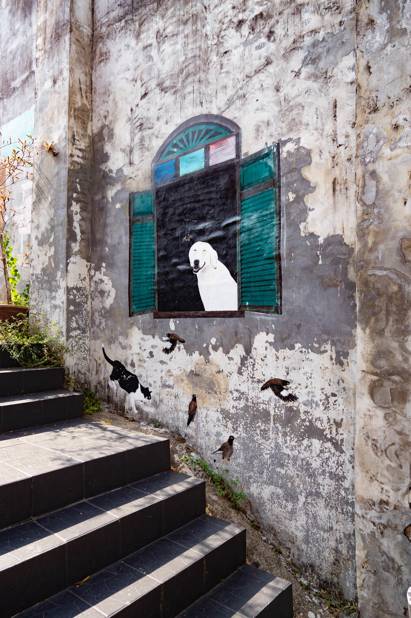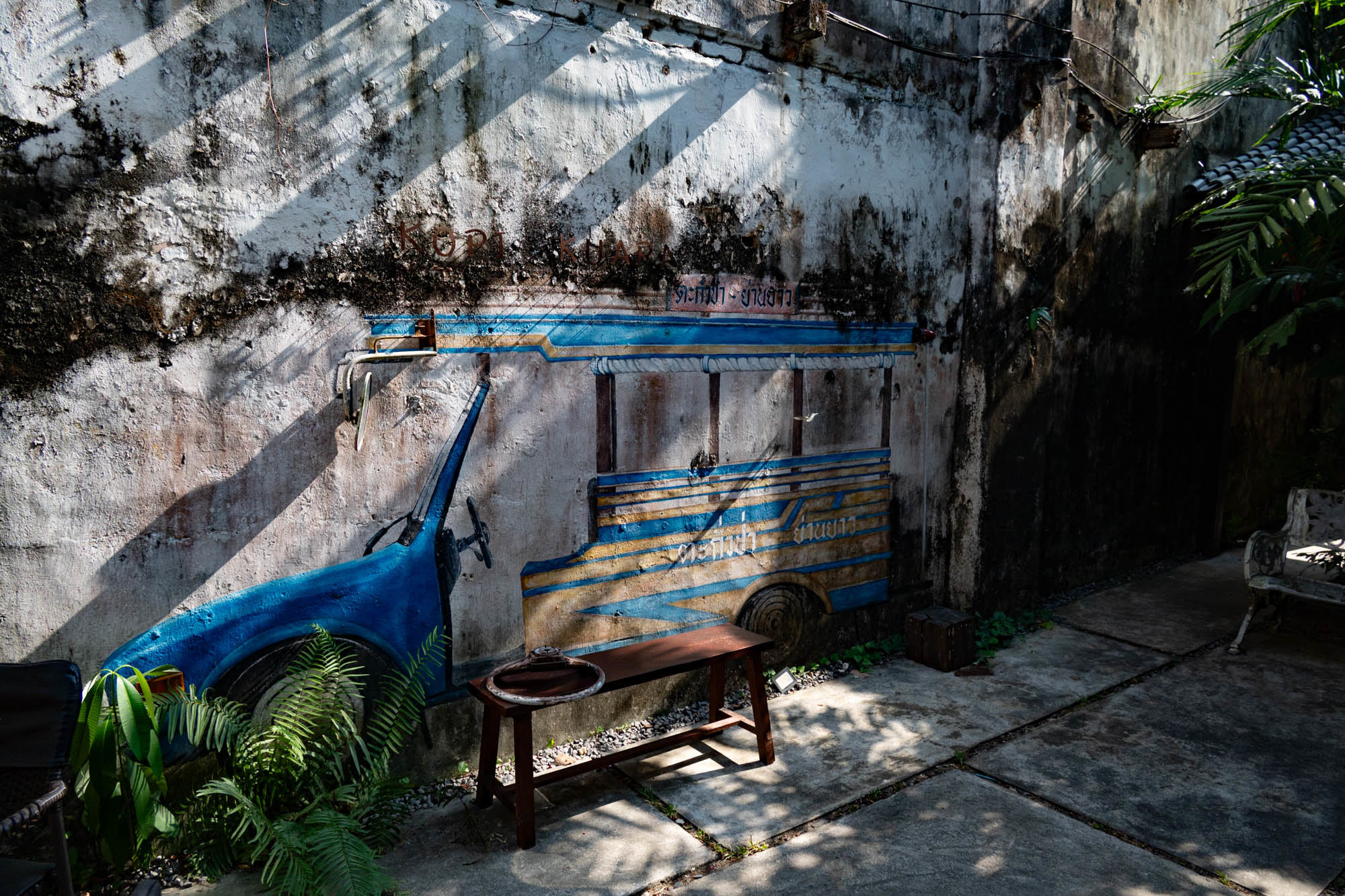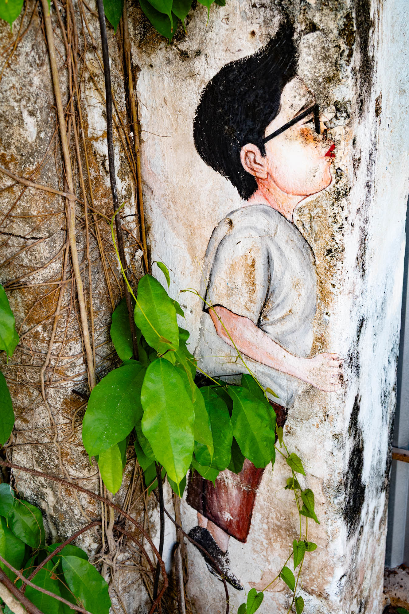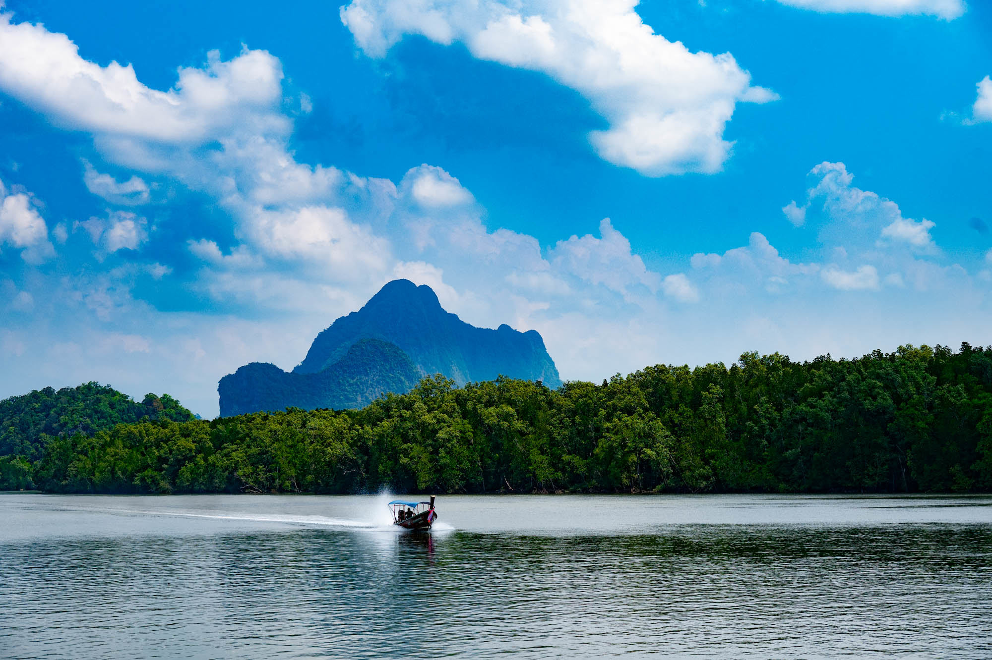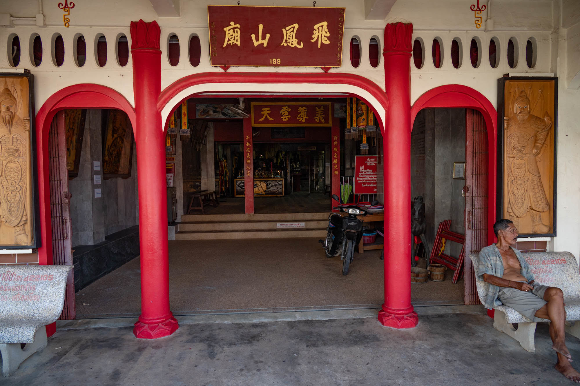 Gisteren afscheid genomen van de boys. En, iets te voortvarend, ook van de foto’s van die dag, een fractie te snel van de camera verwijderd. Weg herinneringen, of in ieder geval: zonder bewijs. Maar nu dan terug op Phuket want daar ten noorden valt nog wat te ontdekken, al is er ook al genoeg ontgonnen. Eerste stop: Phang Nga Bay. Maar zonder boot zie je er weinig meer dan een soort Zuiderplas. Dus: een boot geregeld. Dat kost wat, vraagt om stevig onderhandelen, en levert uiteindelijk een licht ongemakkelijke zitplek op vanwaar je naar rotsen en water staart. Indrukwekkende rotsen, dat wel. Uiteraard hebben ze allemaal de vorm van dieren, als je maar lang genoeg kijkt. De bekende plekken komen voorbij, tot en met het inmiddels volledig uitgemolken James Bond Island. Nieuw voor mij waren de kano’s, maar voor de rest voelde het als een déjà vu. Ik was hier tenslotte al twee keer eerder, lang geleden. Het moslimdorp op palen stond er nog steeds. Alleen met ietsje wat meer winkeltjes. Jezus. Opmerkelijk hoe in veertig jaar de tanige, gebruinde vissers ineens hun BMI in de gaten lijken te moeten houden. De tocht was eigenlijk overbodig maar de nostalgie wil ook wat. Na een paar uurtje cruisen door bergen en bossen met zo nu en dan een dorpje reed ik Takua Pa binnen. Een wonderlijk mooi geconserveerd stadje. Ik was nu echt terug in de tijd. Een cadeautje. De tocht had mij weer vlakbij de kust gebracht dus de keuze viel op een strandje om te slapen. De reservering vermelde niet dat de bungalows op een eilandje lagen en de rit van een half uurtje werd vanwege de veerboot een uurtje langer. Wachten bij een haventje is geen straf en ik was nog net voor zonsondergang op het strandje.