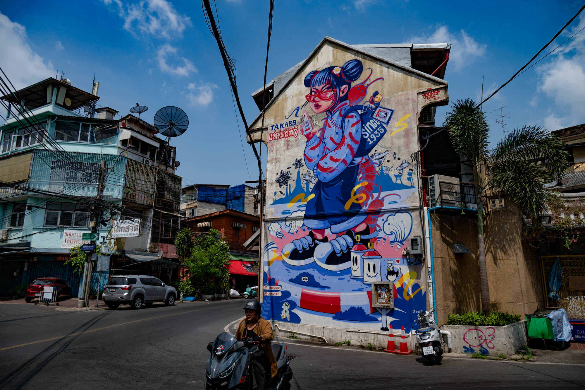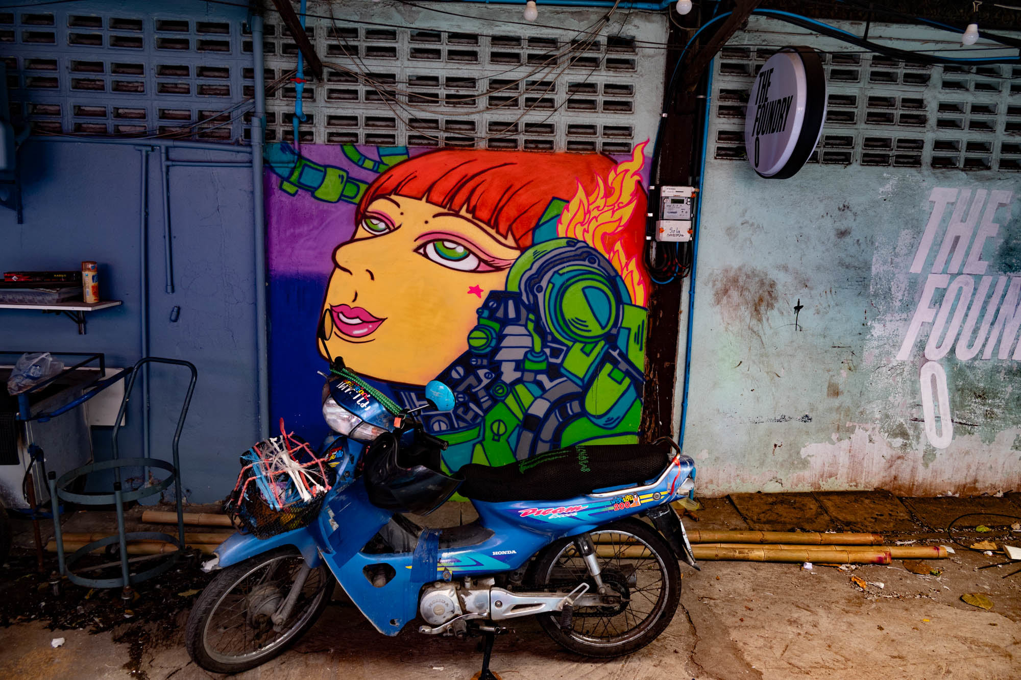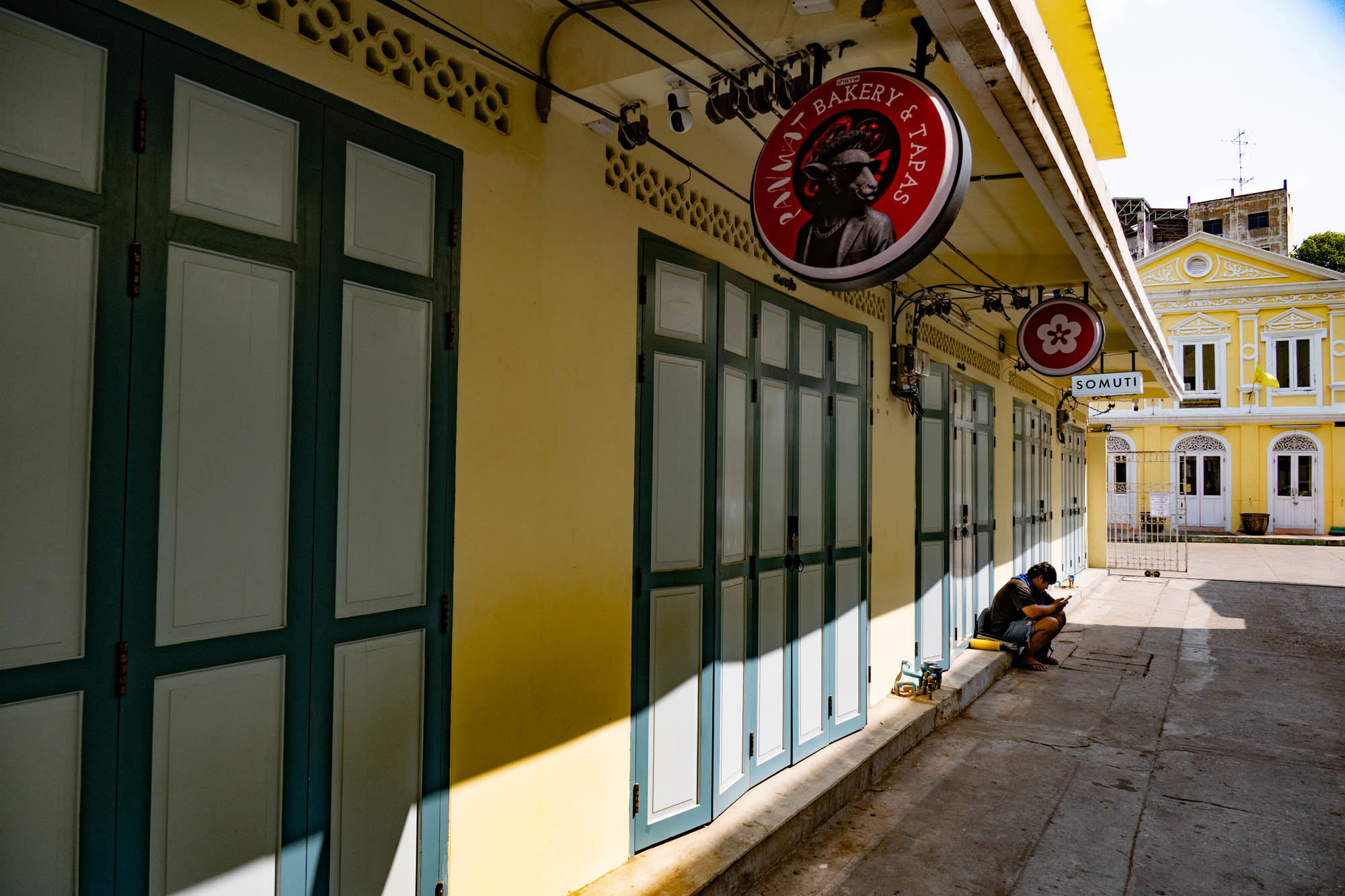 Song Wat; weer zo’n wijk die opgestaan is uit de vergetelheid. Instagram wordt hier beleden. Leven op een mobieltje. Het leven speelt zich af op een scherm. Alledaags inmiddels, die mobiele telefoon. We, ik ook, kunnen niet meer zonder. Maar het blijft zonde dat het ding ons zo is gaan beheersen.