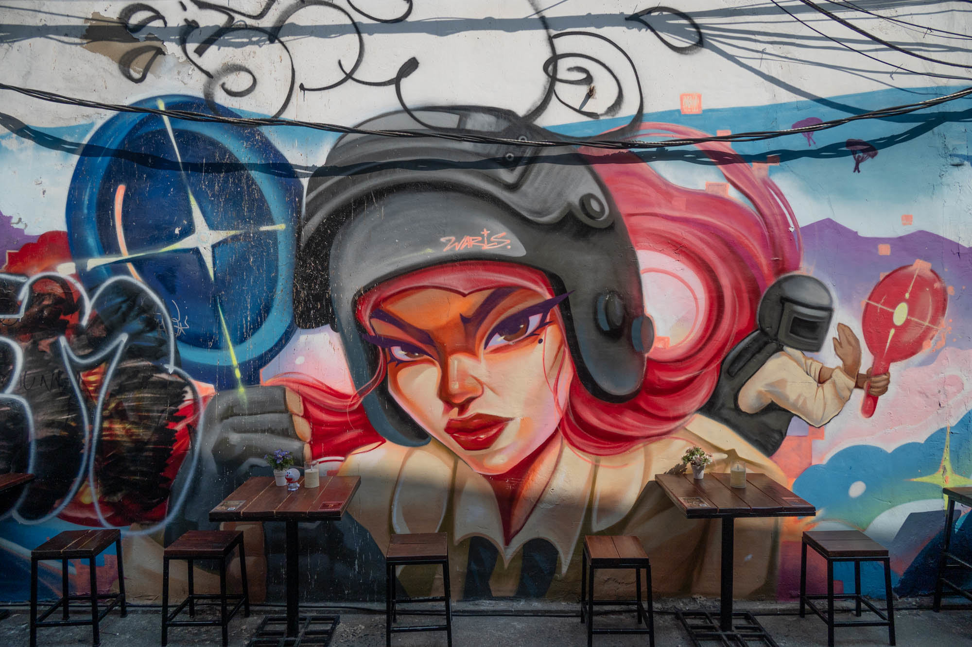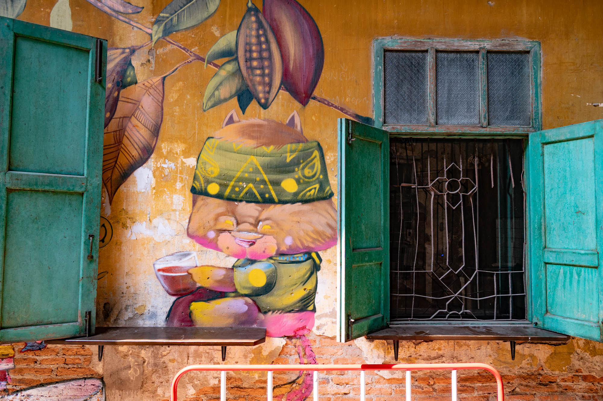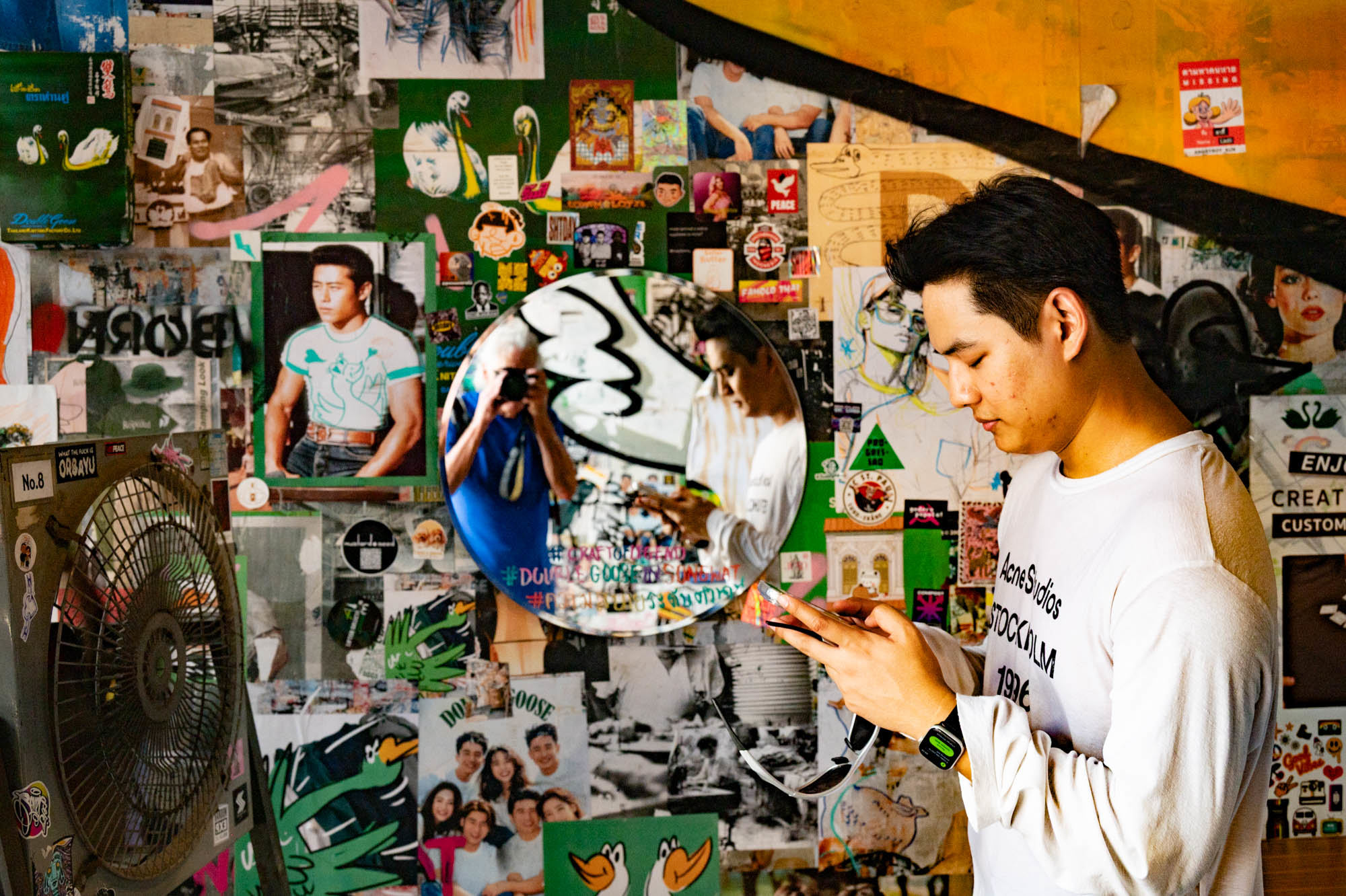 Song Wat; weer zo’n wijk die opgestaan is uit de vergetelheid. Instagram wordt hier beleden. Leven op een mobieltje. Het leven speelt zich af op een scherm. Alledaags inmiddels, die mobiele telefoon. We, ik ook, kunnen niet meer zonder. Maar het blijft zonde dat het ding ons zo is gaan beheersen.